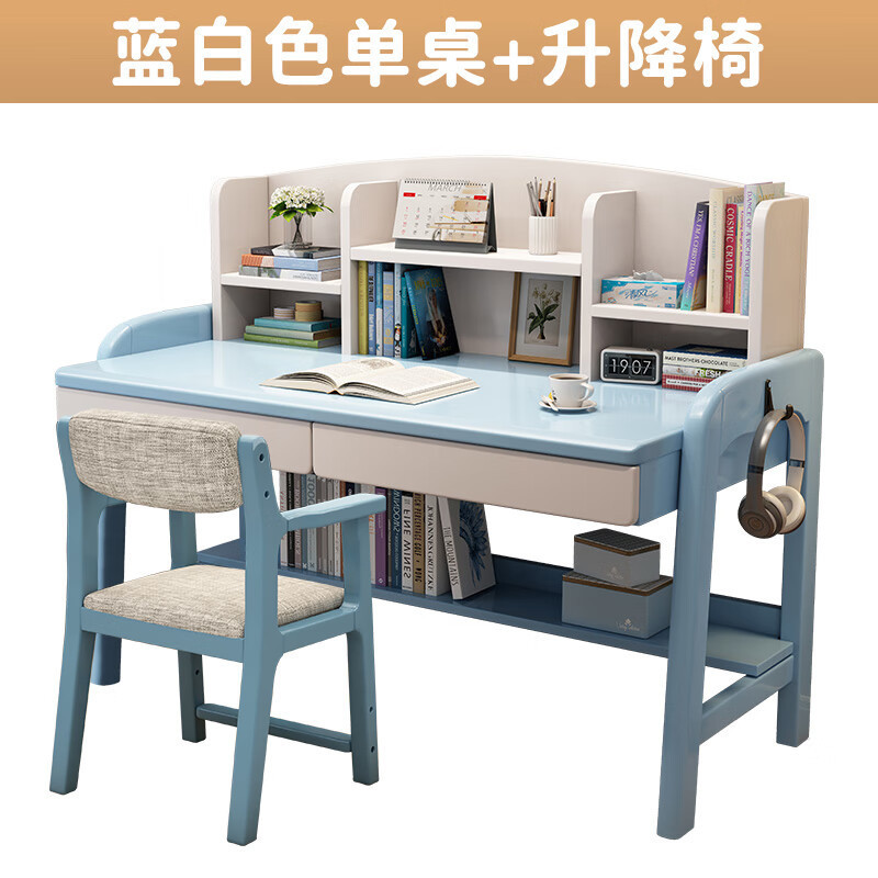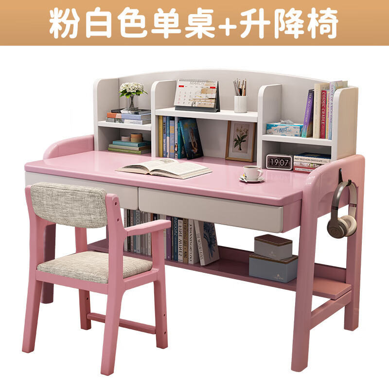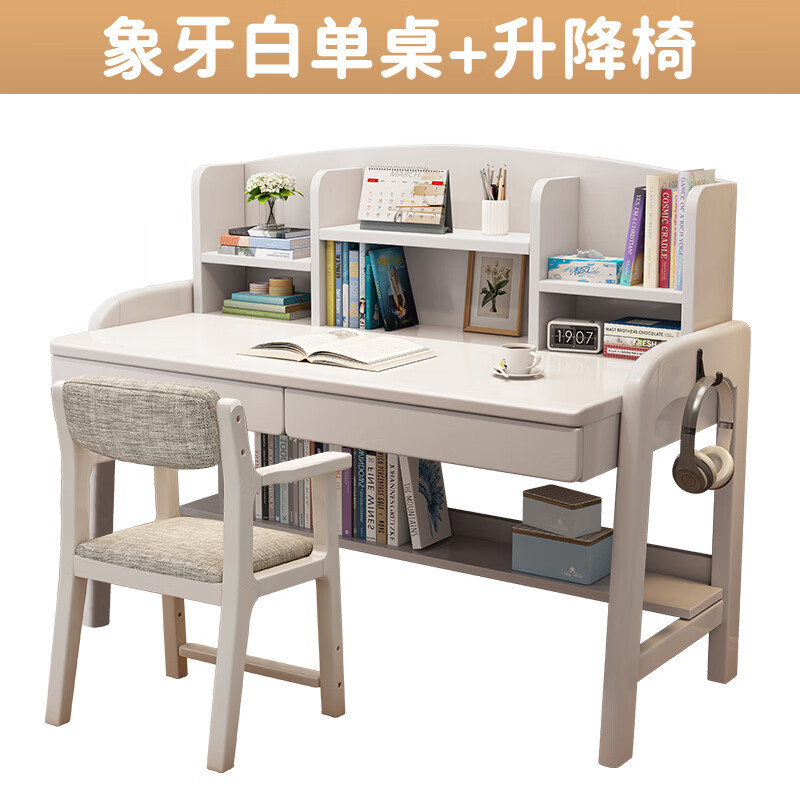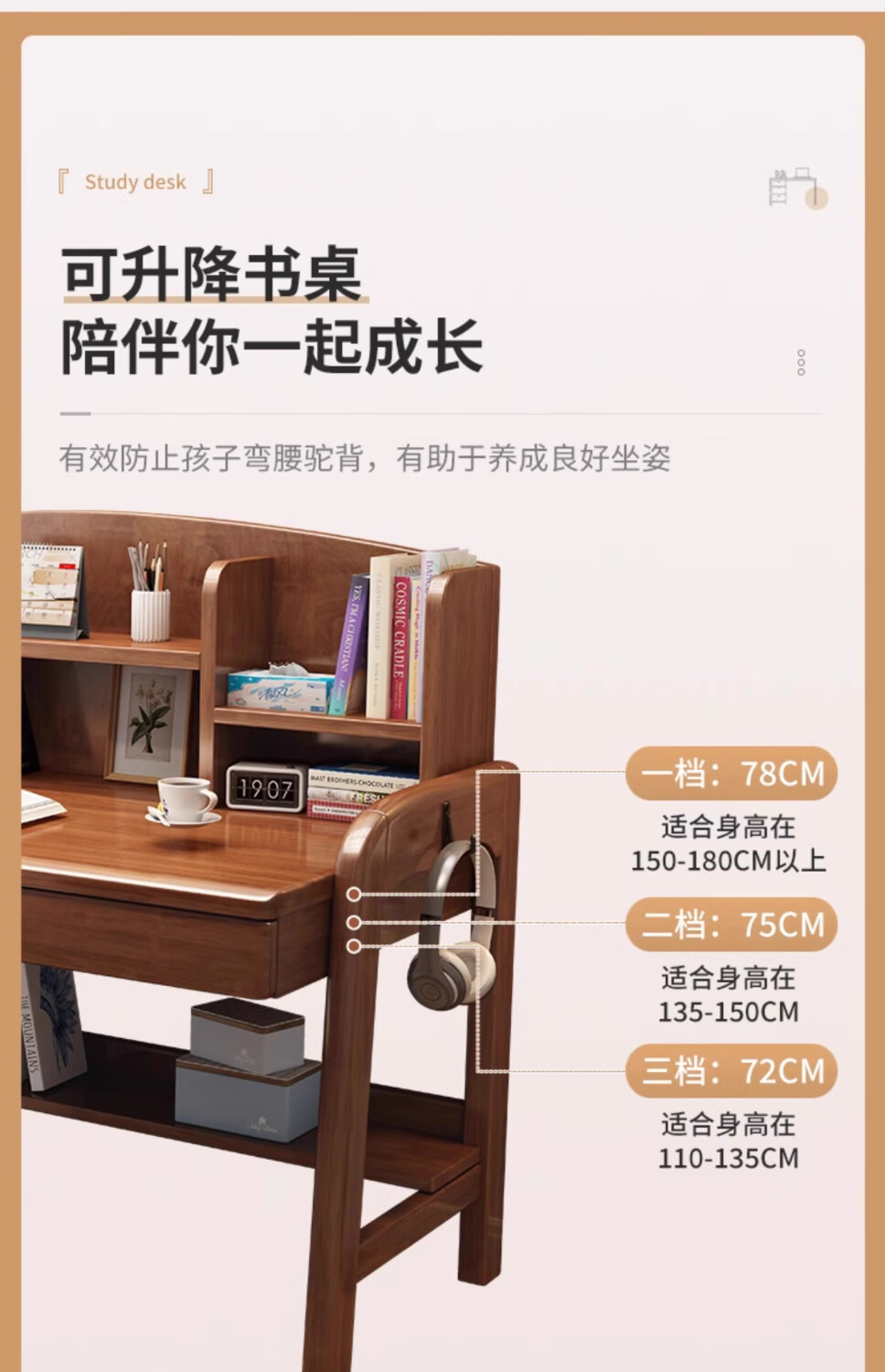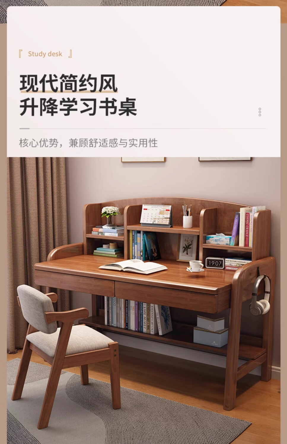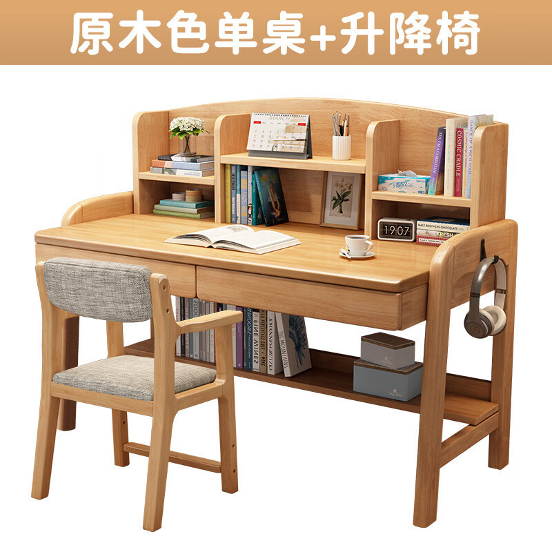 책상 컴퓨터 책상 책꽂이 통합 솔리드 우드 Liftable 스터디 데스크 침실 초등 및 중등 학교 학생을위한 간단한 가정용 책상