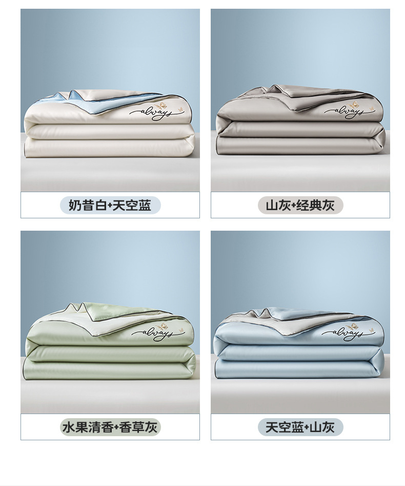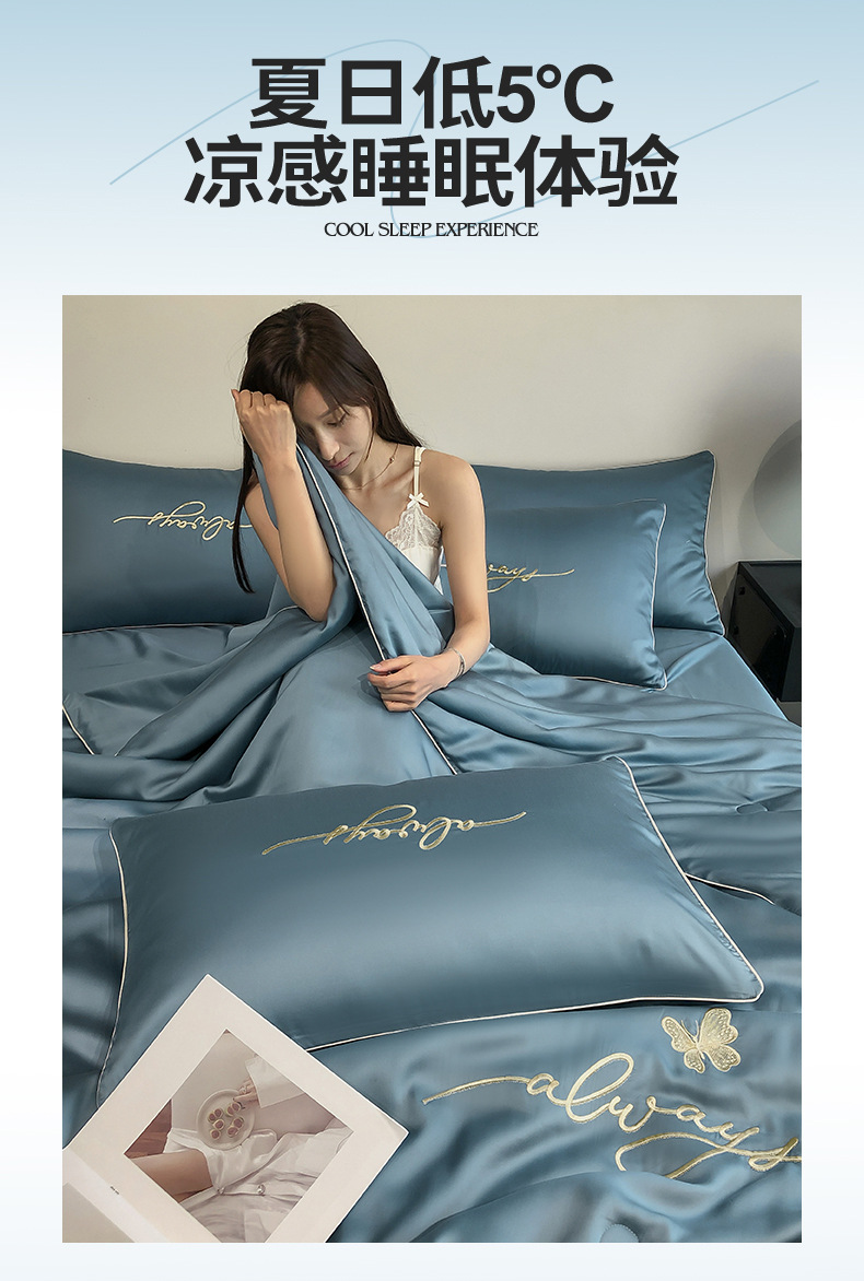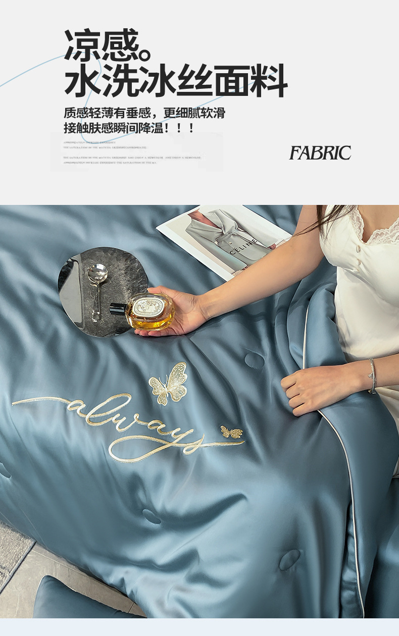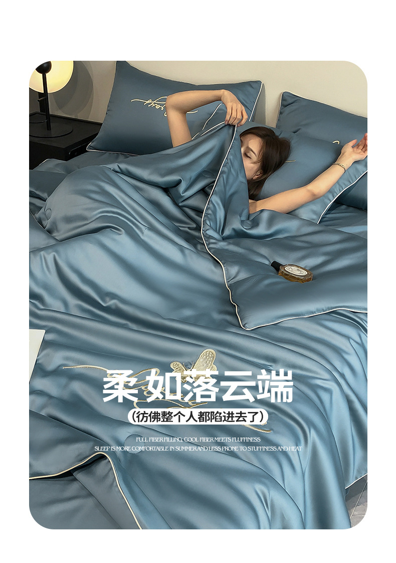 A급 워싱 실크 자수 텐셀 여름 이불 4종 세트 에어컨 이불, 알몸으로 잠들 수 있는 에어컨 이불, 싱글/더블 얇은 이불스토어 가기