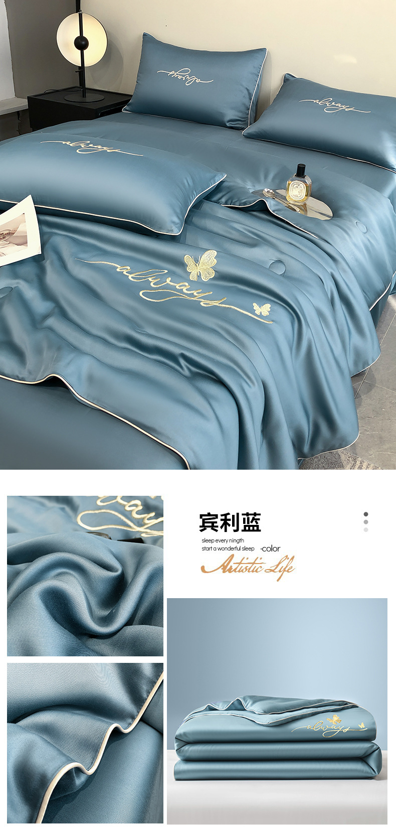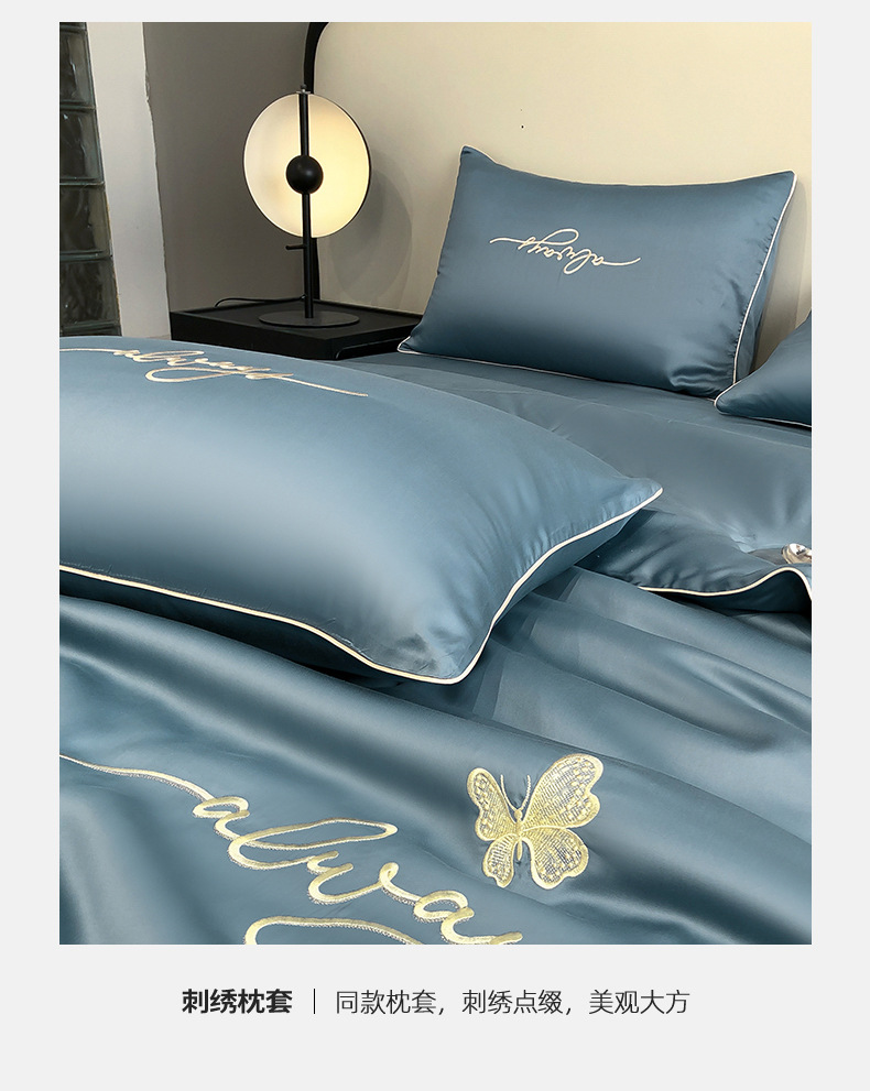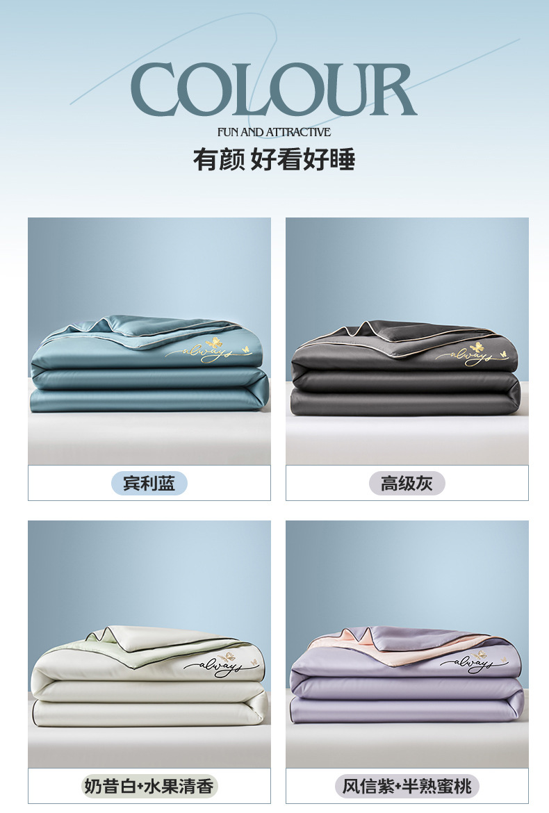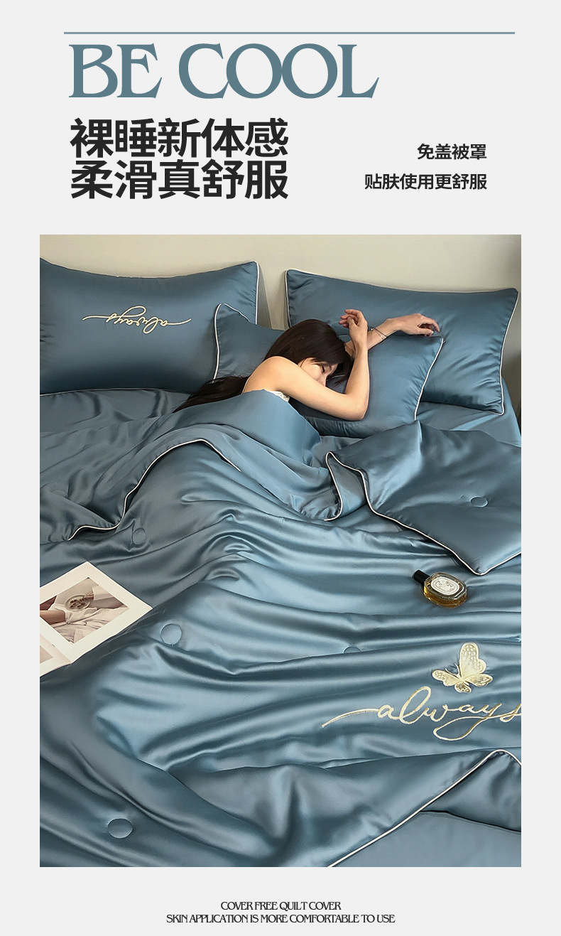 A급 워싱 실크 자수 텐셀 여름 이불 4종 세트 에어컨 이불, 알몸으로 잠들 수 있는 에어컨 이불, 싱글/더블 얇은 이불스토어 가기