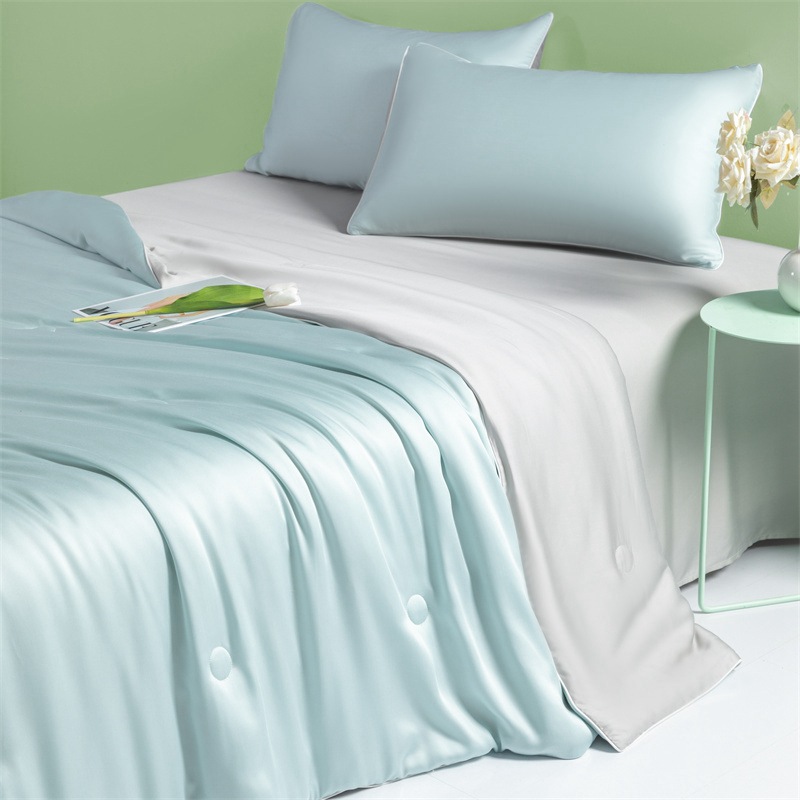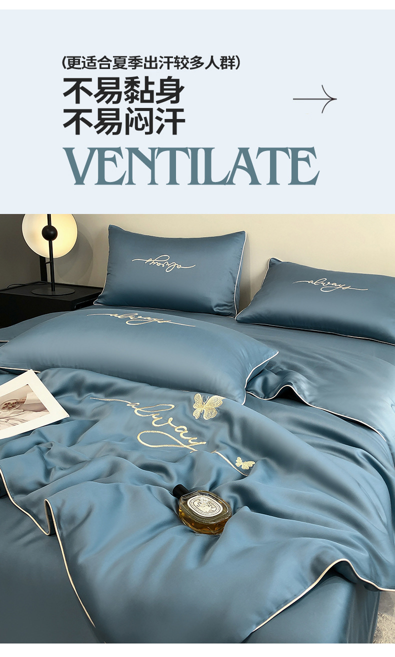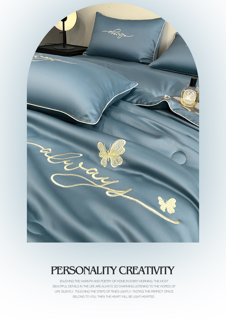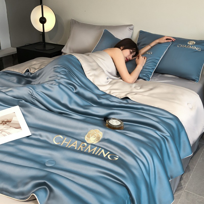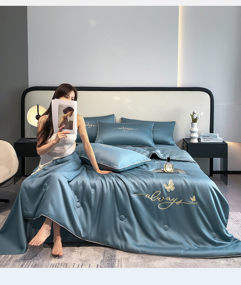 A급 워싱 실크 자수 텐셀 여름 이불 4종 세트 에어컨 이불, 알몸으로 잠들 수 있는 에어컨 이불, 싱글/더블 얇은 이불