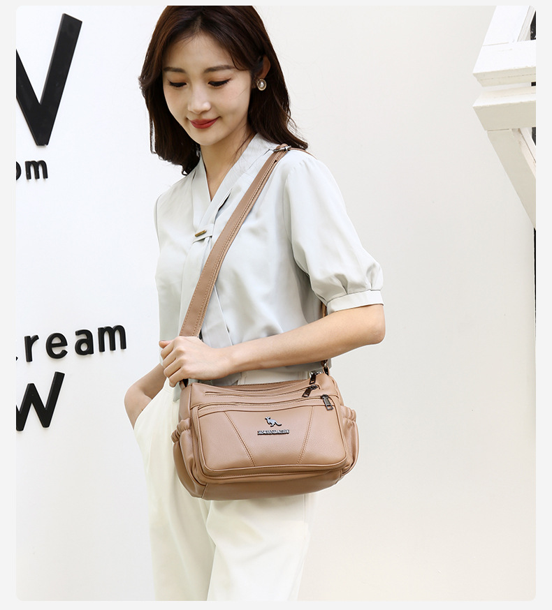 중년 여성 미라 가방 새로운 PU 작은 광장 가방 대용량 더블 구획 어깨 가방 유행 크로스 바디 여성용 가방스토어 가기