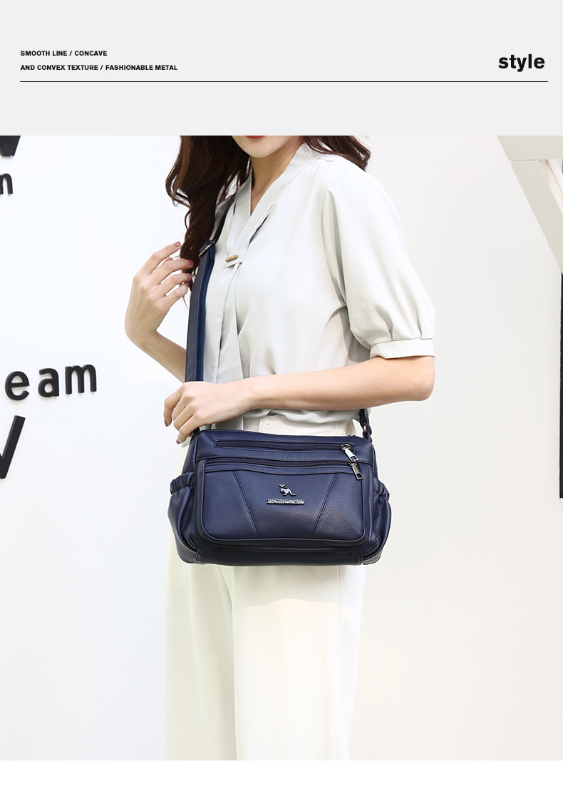중년 여성 미라 가방 새로운 PU 작은 광장 가방 대용량 더블 구획 어깨 가방 유행 크로스 바디 여성용 가방