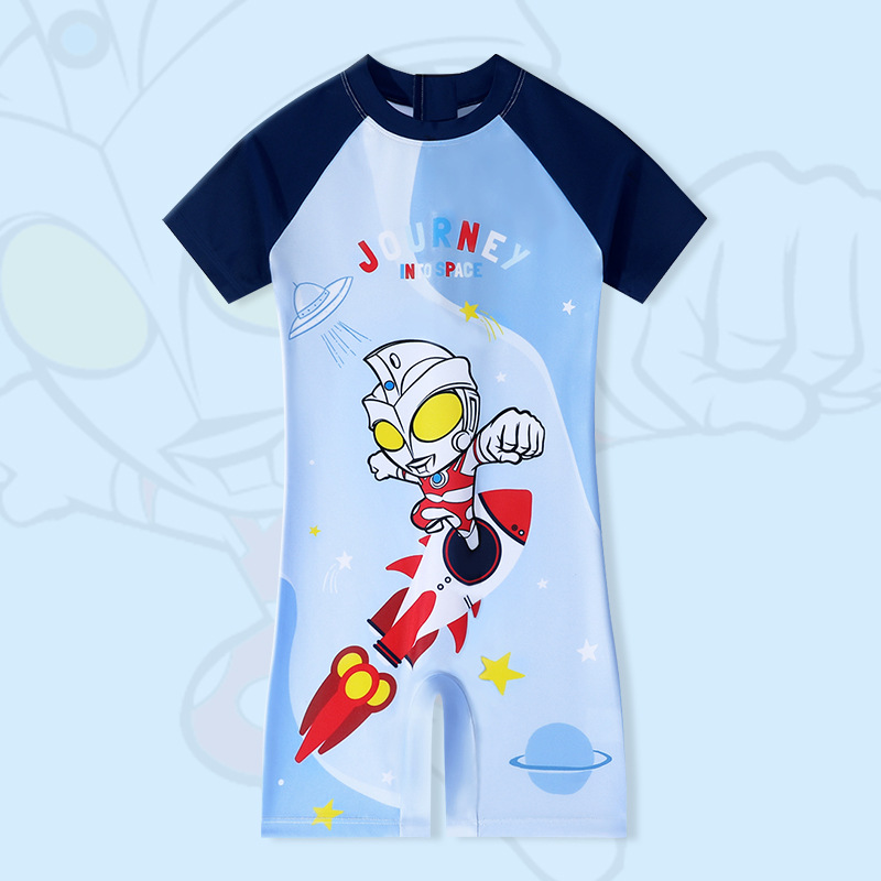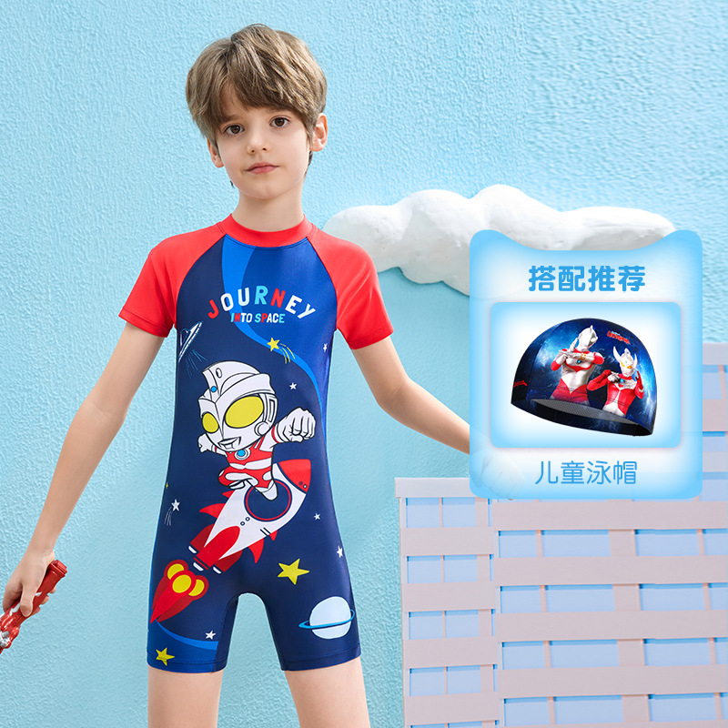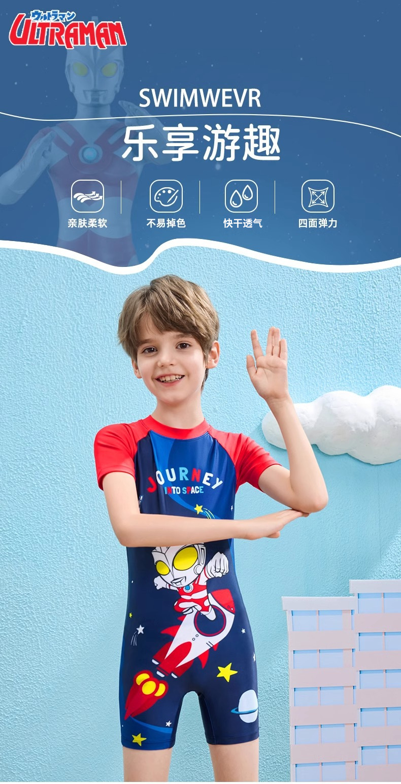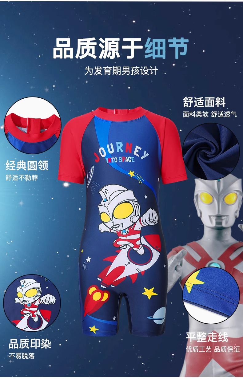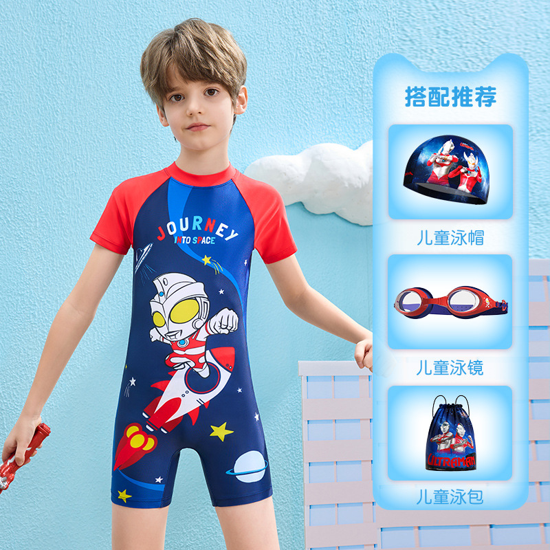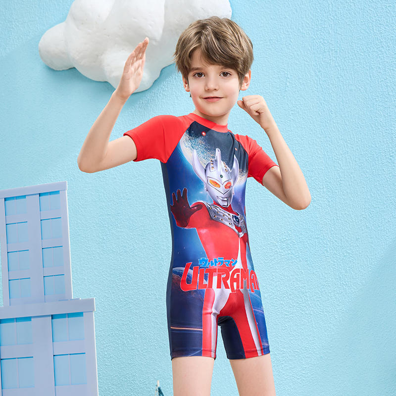 클래식 울트라맨 2024 여름 스타일 소형, 중형 및 대형 어린이 소년 수영복 소년 원피스 만화 프린트 수영복스토어 가기