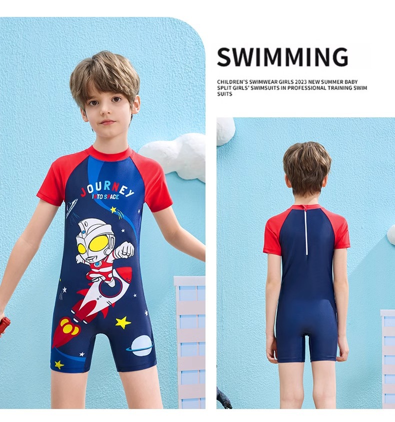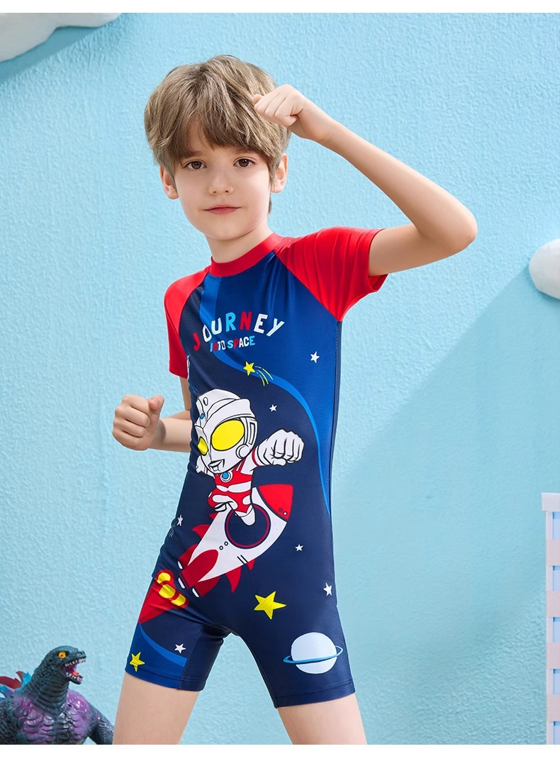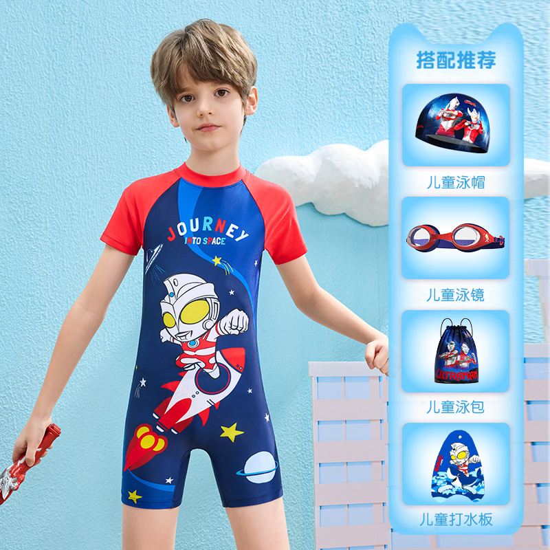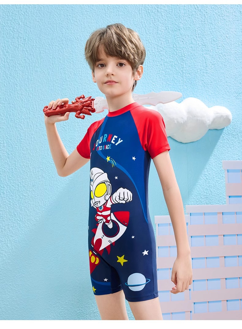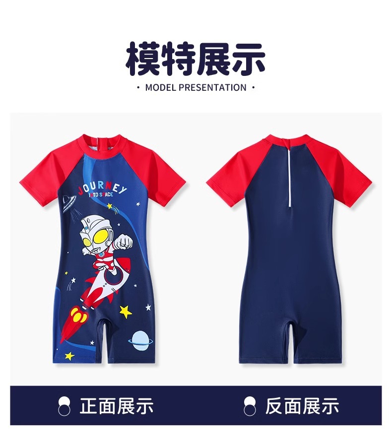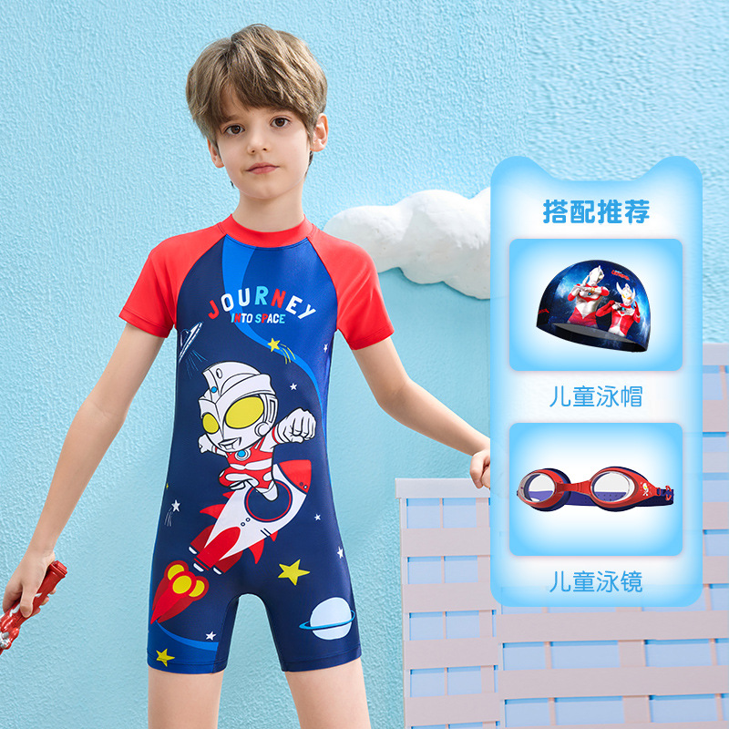 클래식 울트라맨 2024 여름 스타일 소형, 중형 및 대형 어린이 소년 수영복 소년 원피스 만화 프린트 수영복스토어 가기