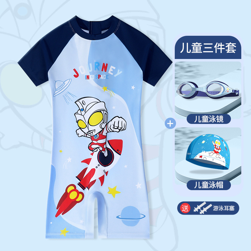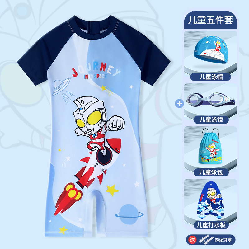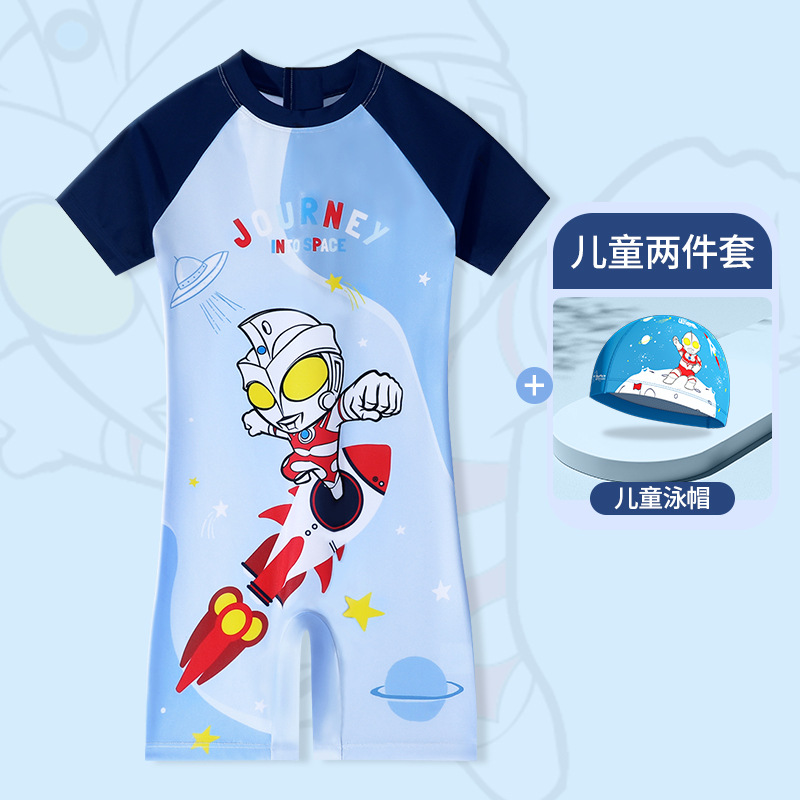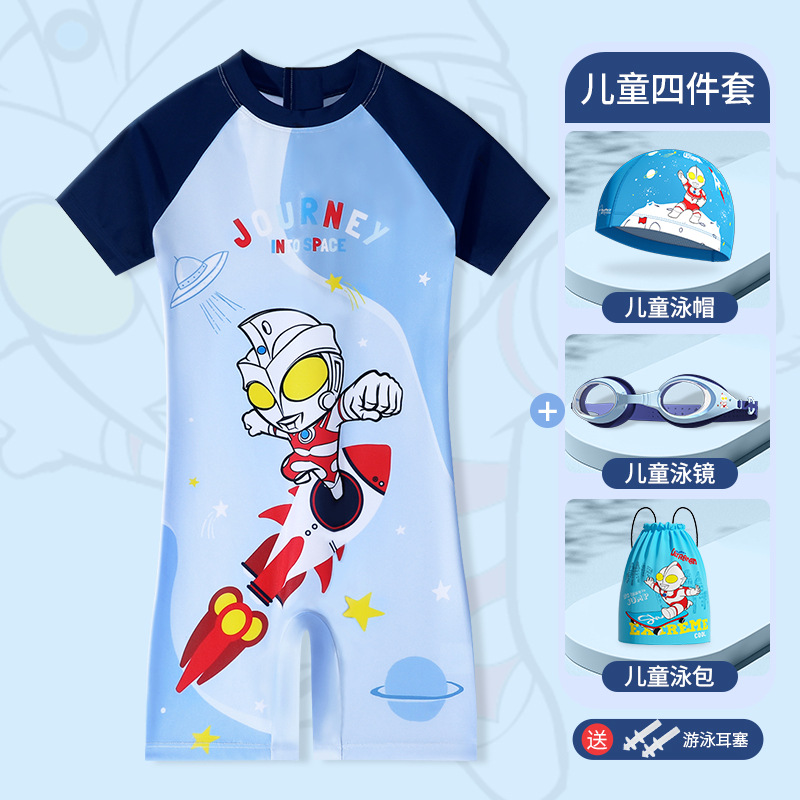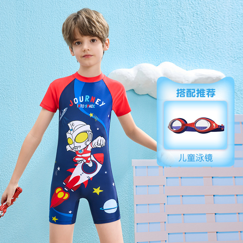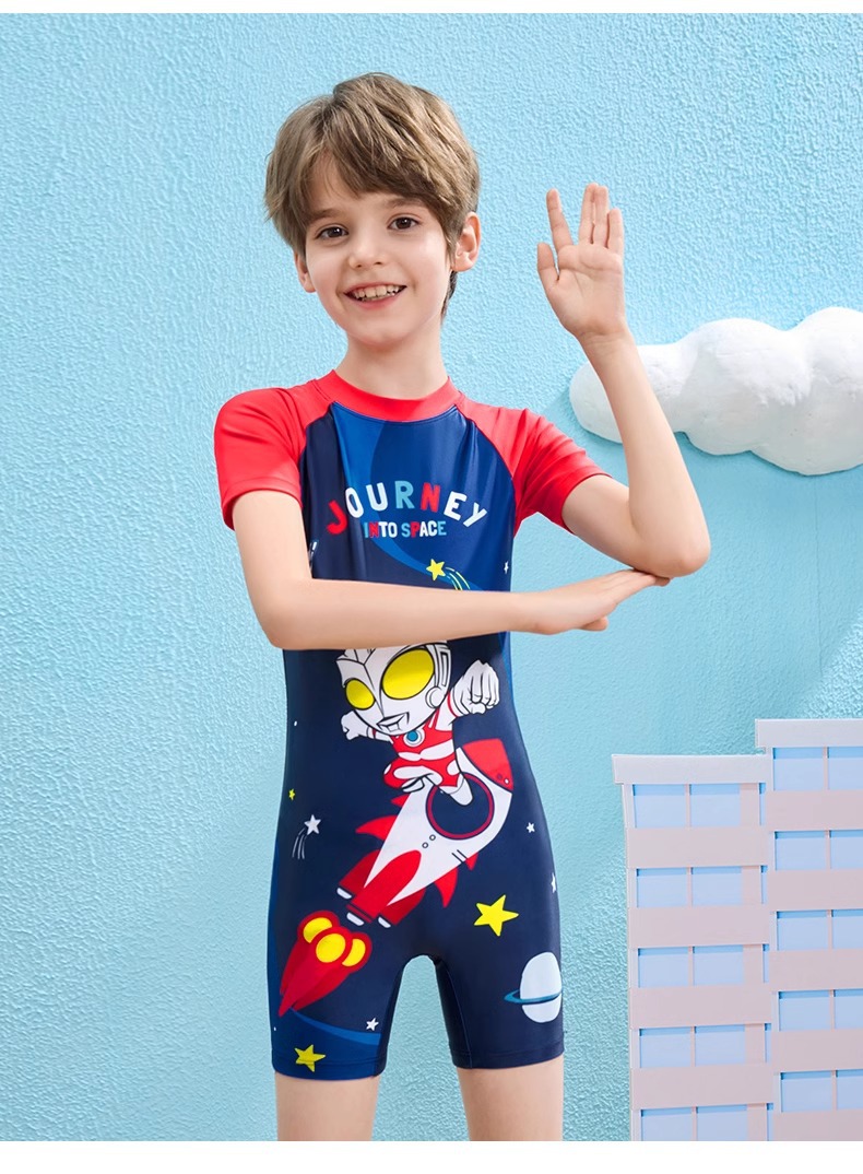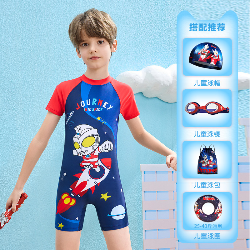 클래식 울트라맨 2024 여름 스타일 소형, 중형 및 대형 어린이 소년 수영복 소년 원피스 만화 프린트 수영복스토어 가기