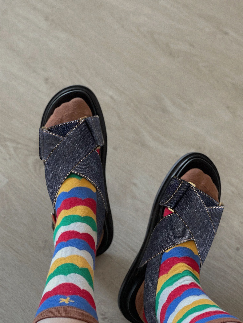 양가죽 버전 ~ 데님 크로스 플랫폼 로마 샌들 여성 여름 옷 복고풍 오픈 발가락 가죽 샌들스토어 가기