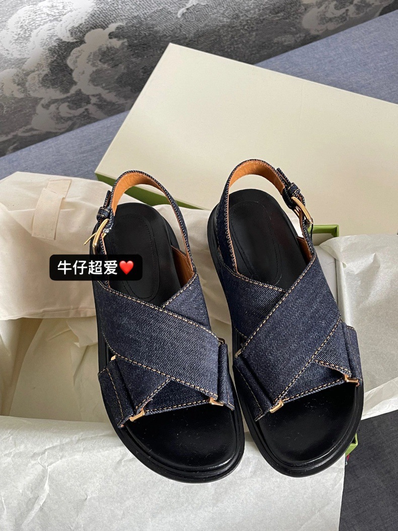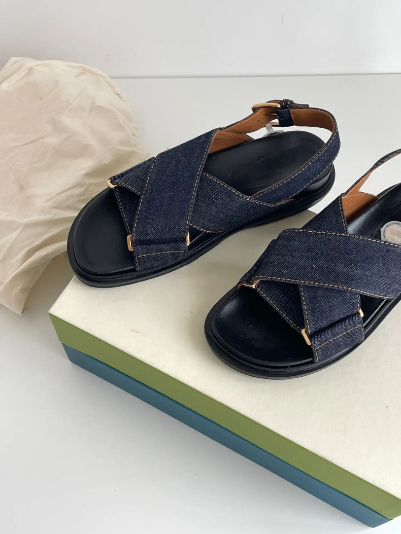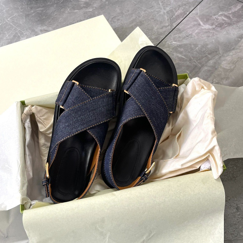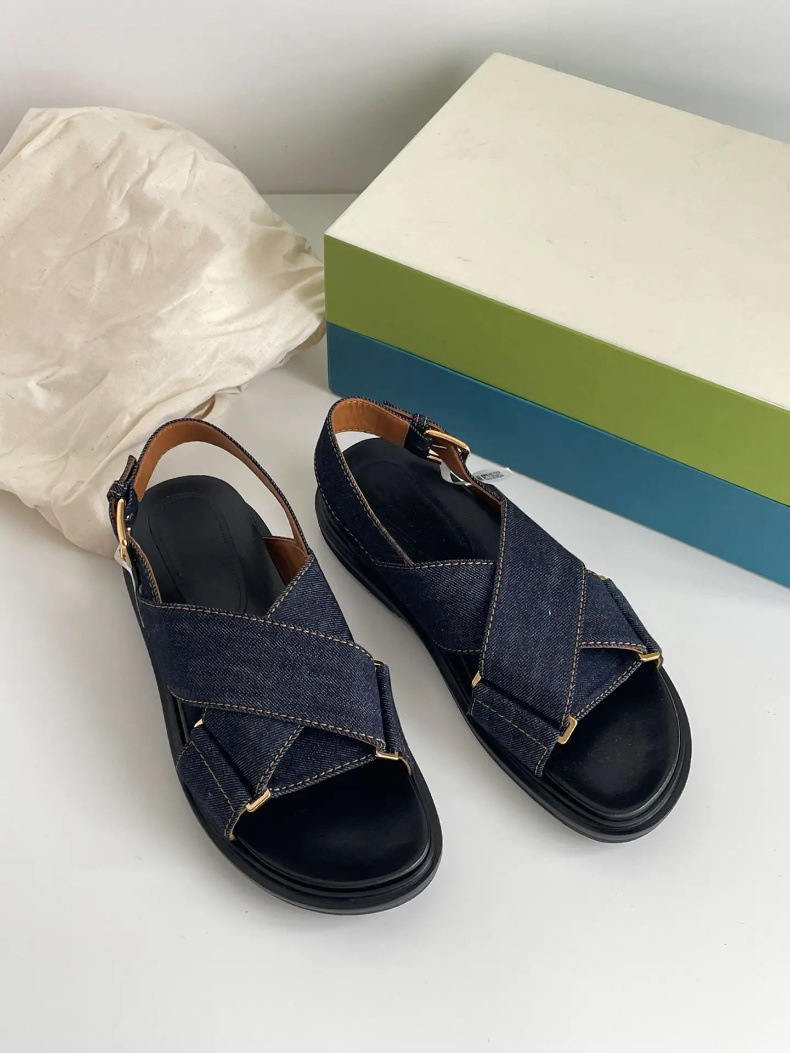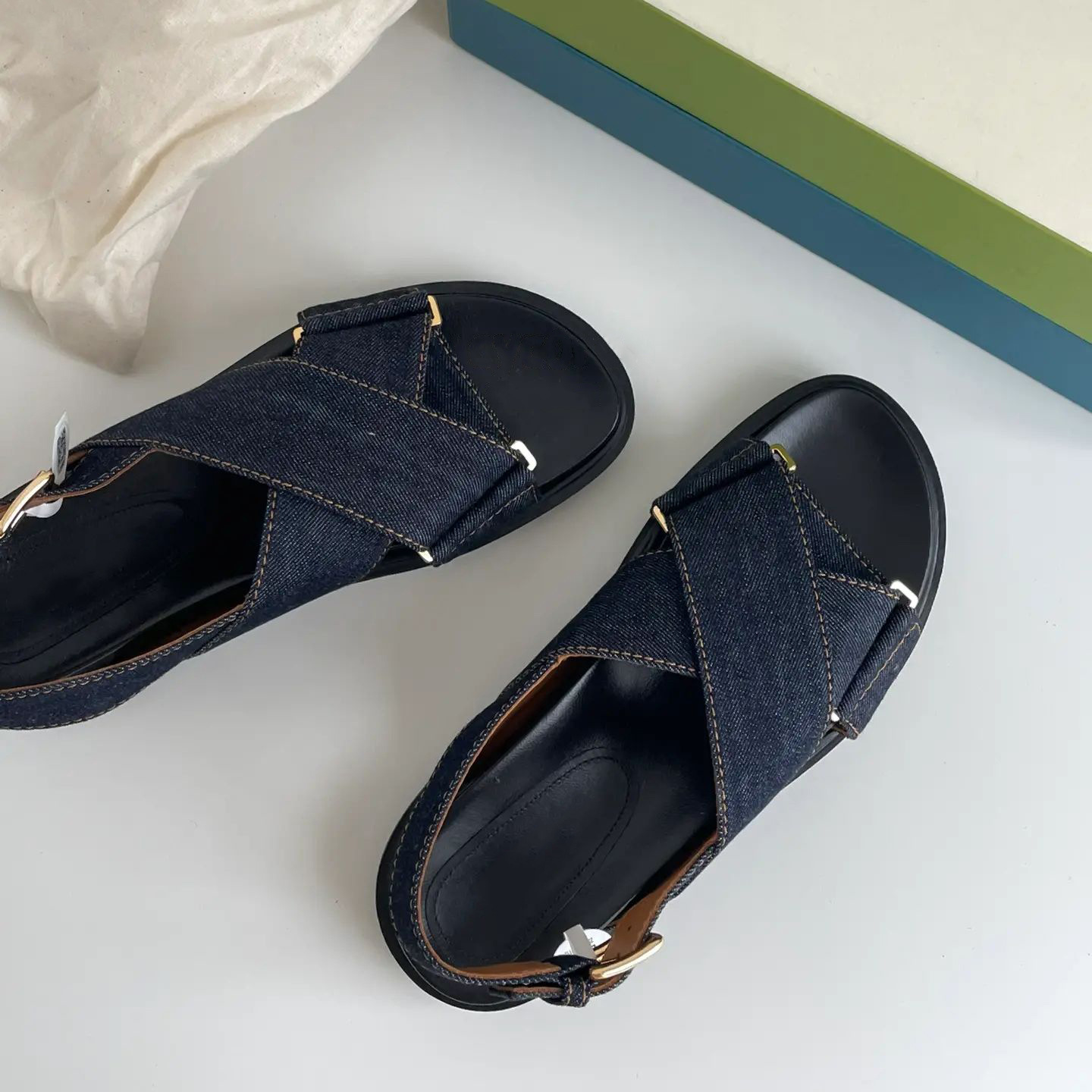 양가죽 버전 ~ 데님 크로스 플랫폼 로마 샌들 여성 여름 옷 복고풍 오픈 발가락 가죽 샌들