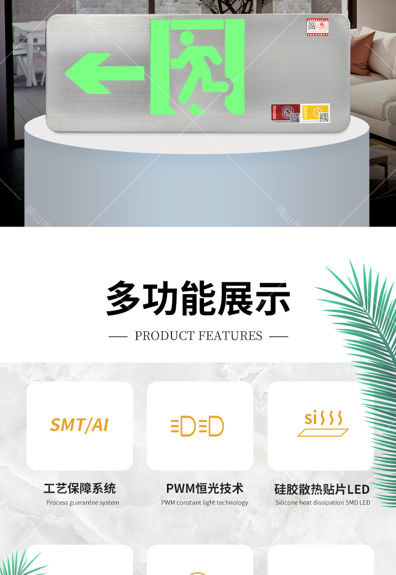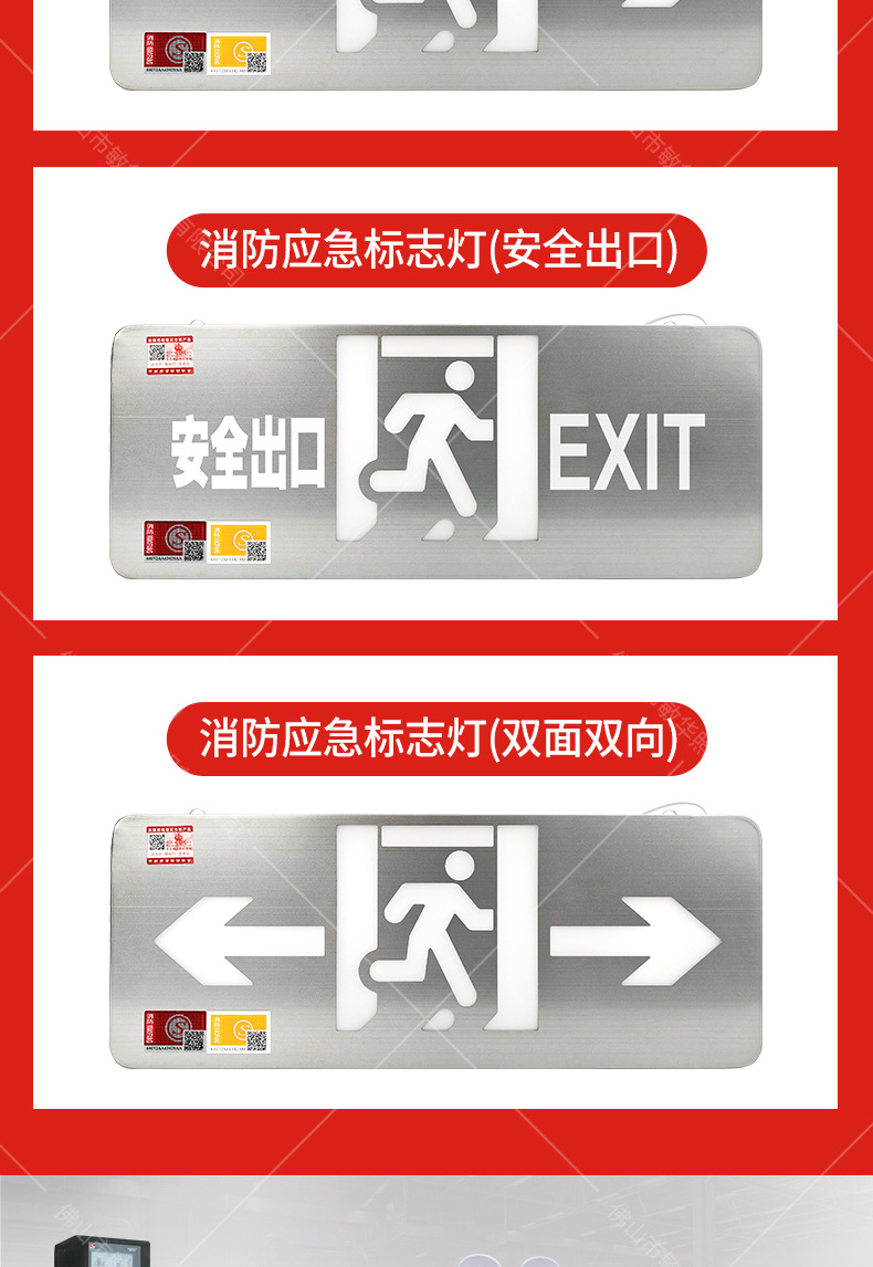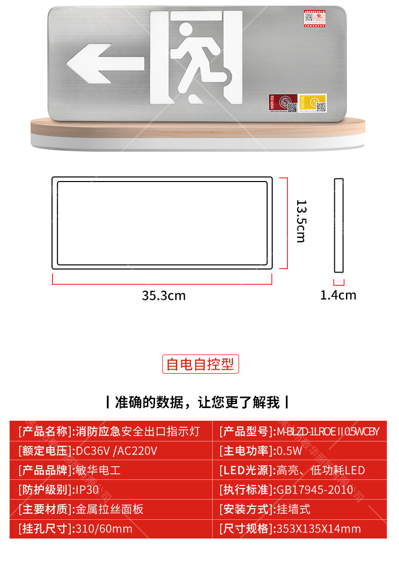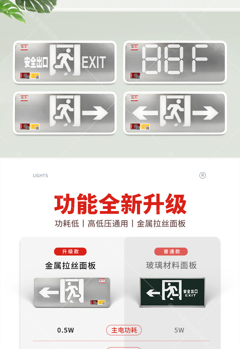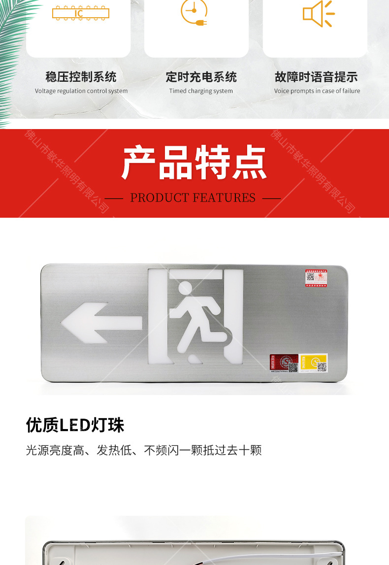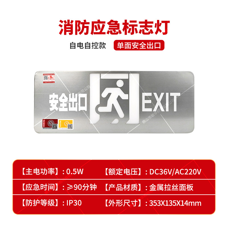 민화 금속 브러시드 비상 탈출 표시등 복도 비상 탈출등 안전 출구 비상 표지판