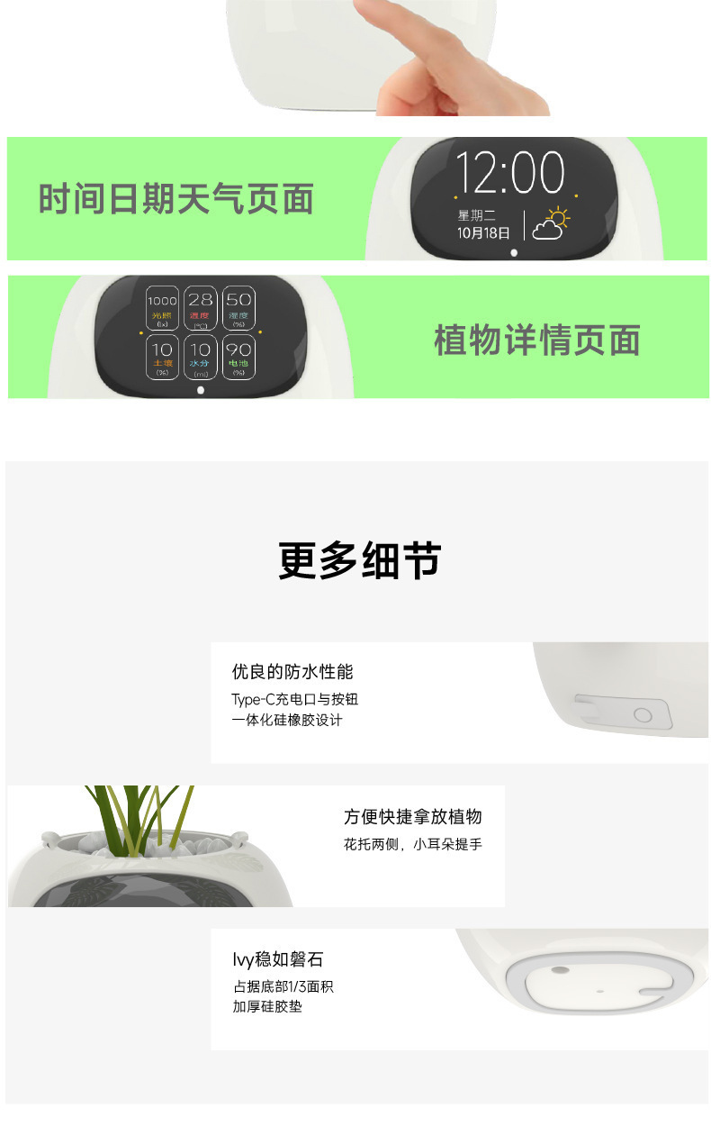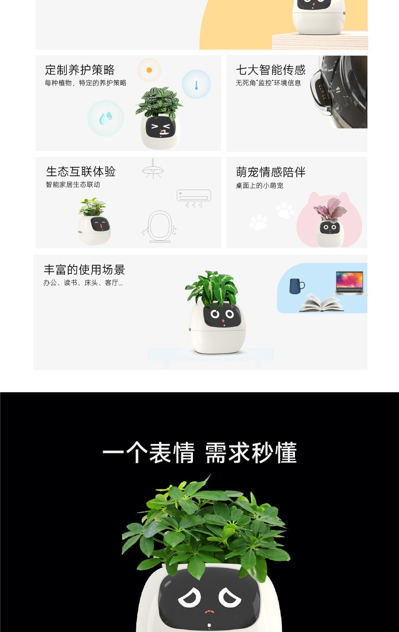 엄밀히 선택 인공 지능 AI 애완 동물 화분 심기 로봇 식물 관리 가이드 시간 온도 표시 화분스토어 가기