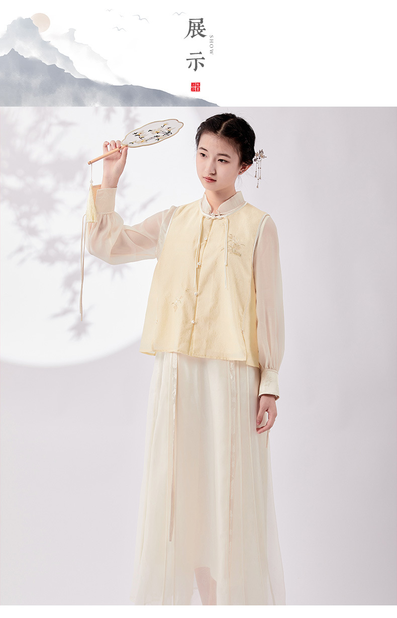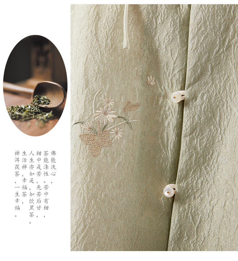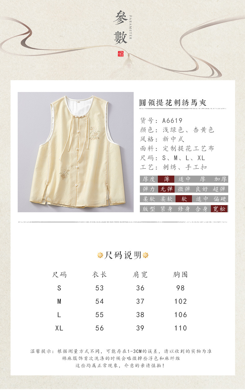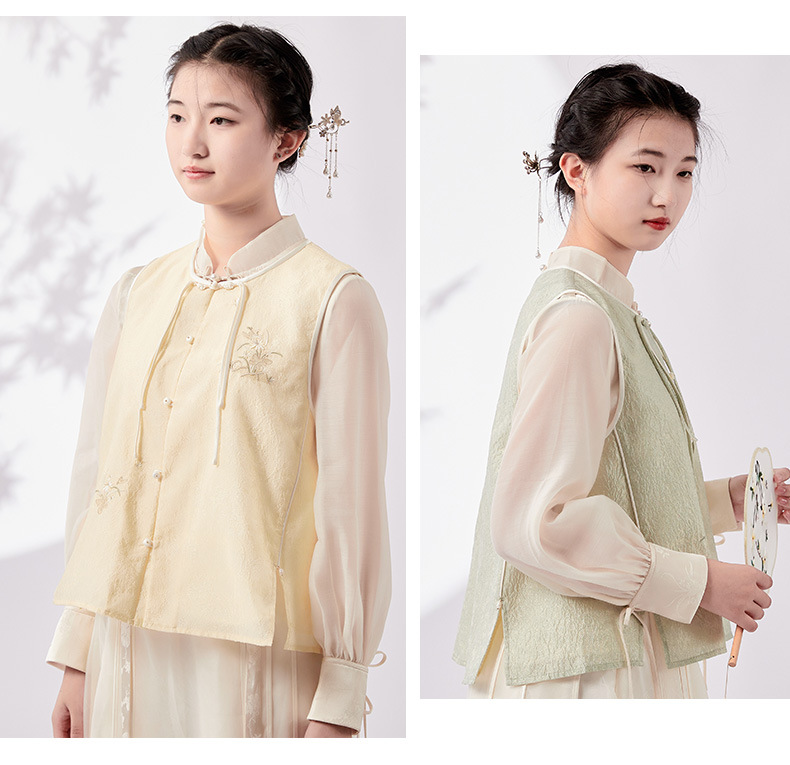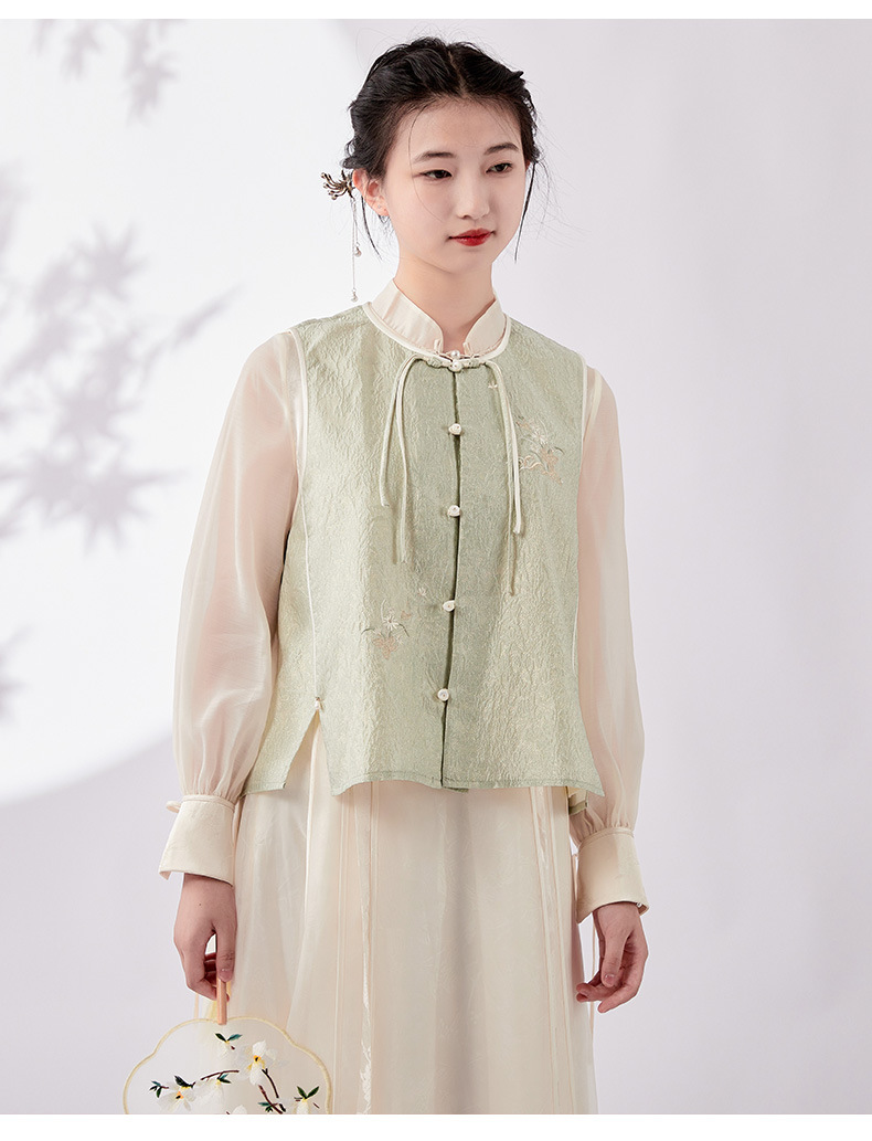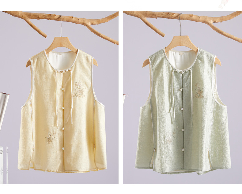 Chan Cha Fu 중국 스타일 여성용 크루 넥 조끼 빈티지 버클 자카드 자수 민소매 수정 한푸 조끼 탑스토어 가기