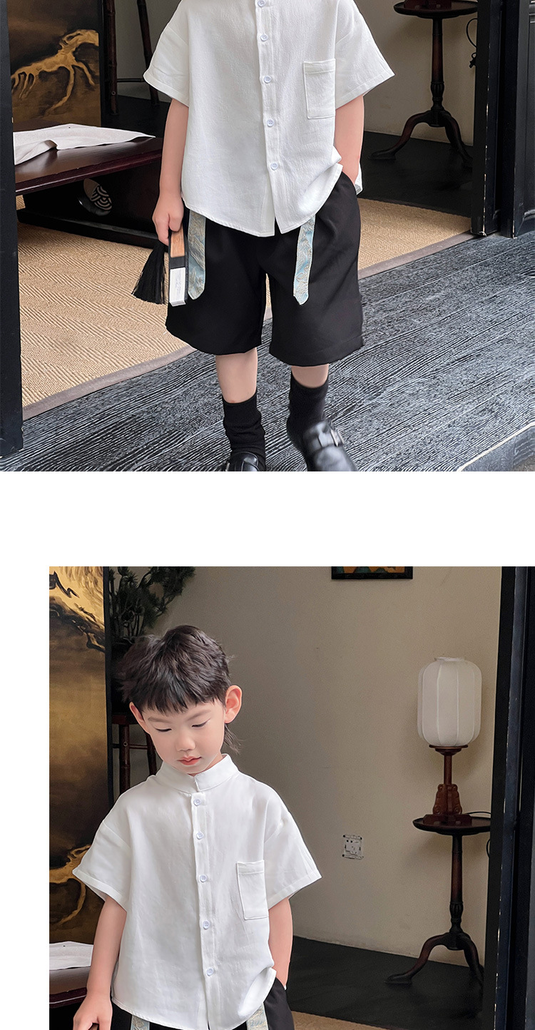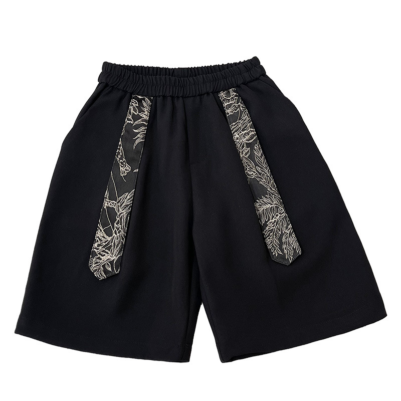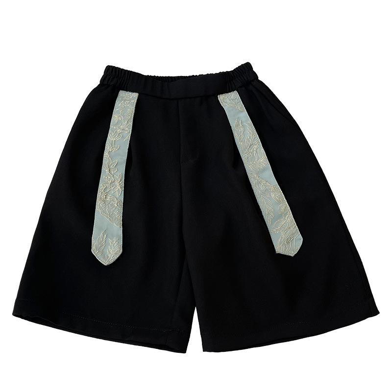 • 중산 흰색 짧은 줄 블루 리본 반바지