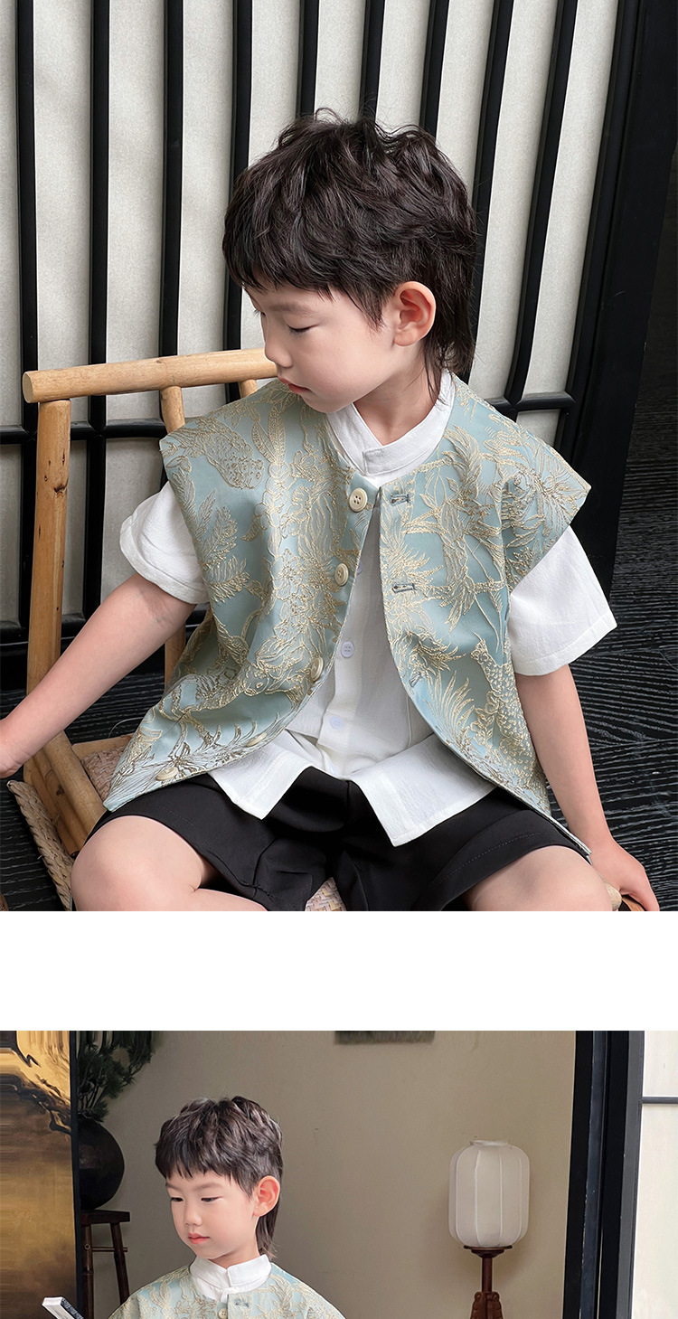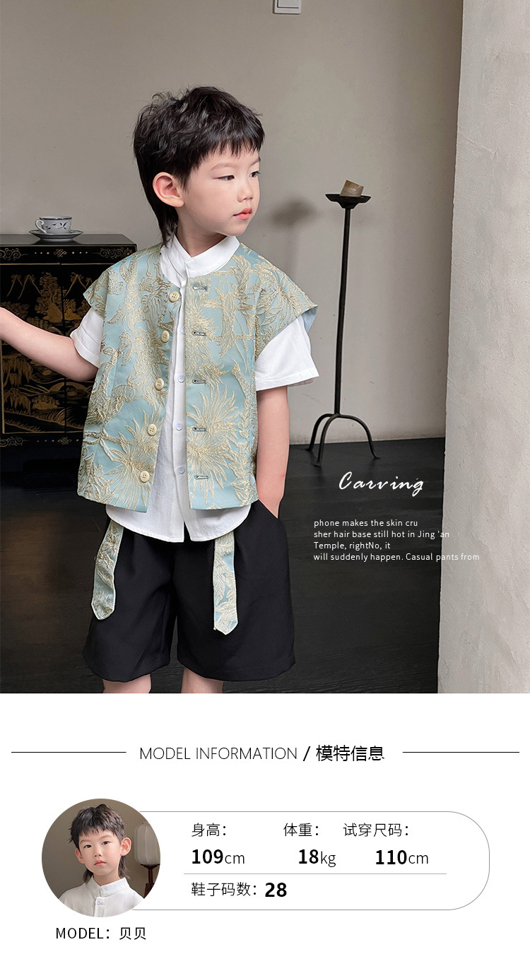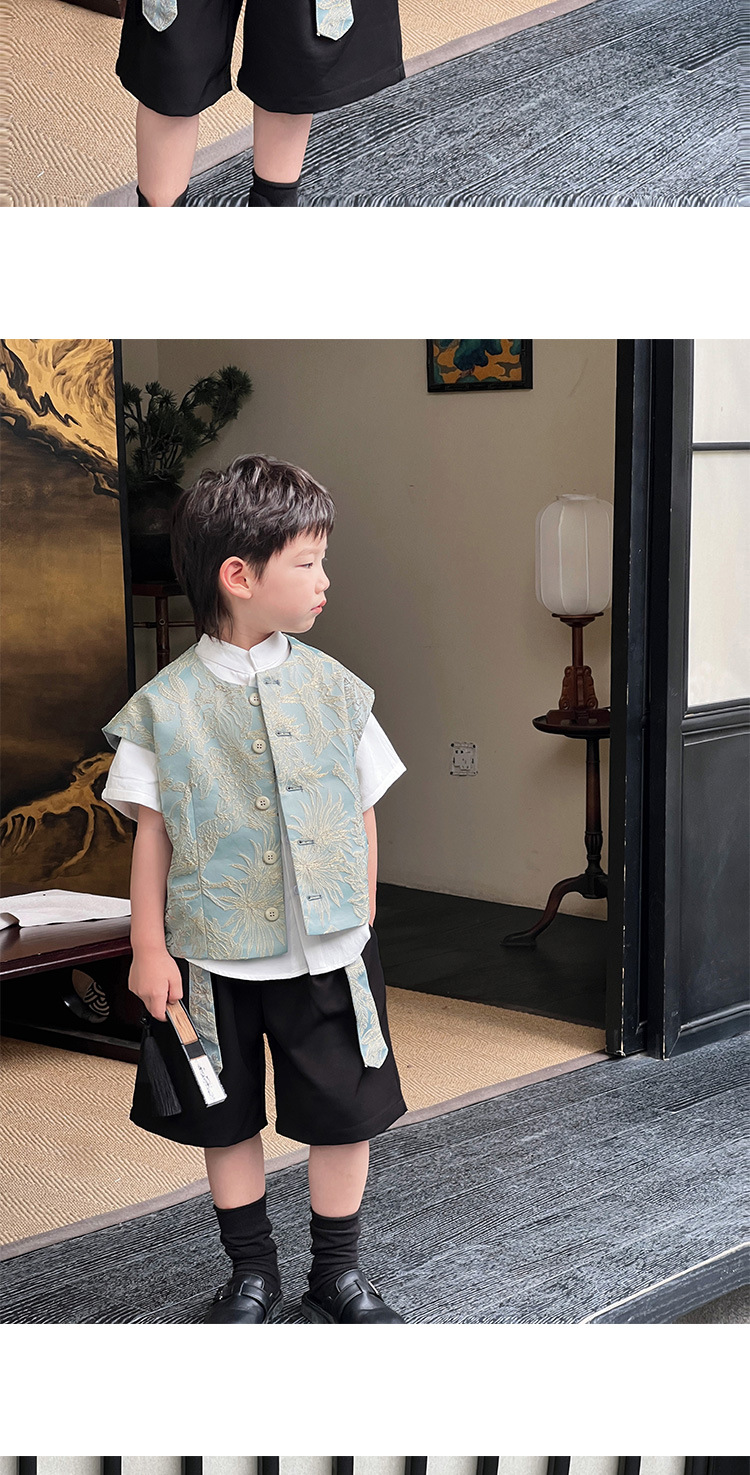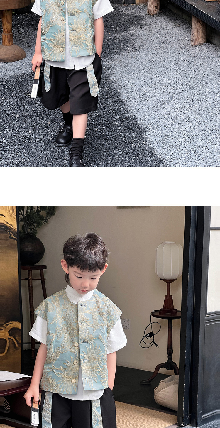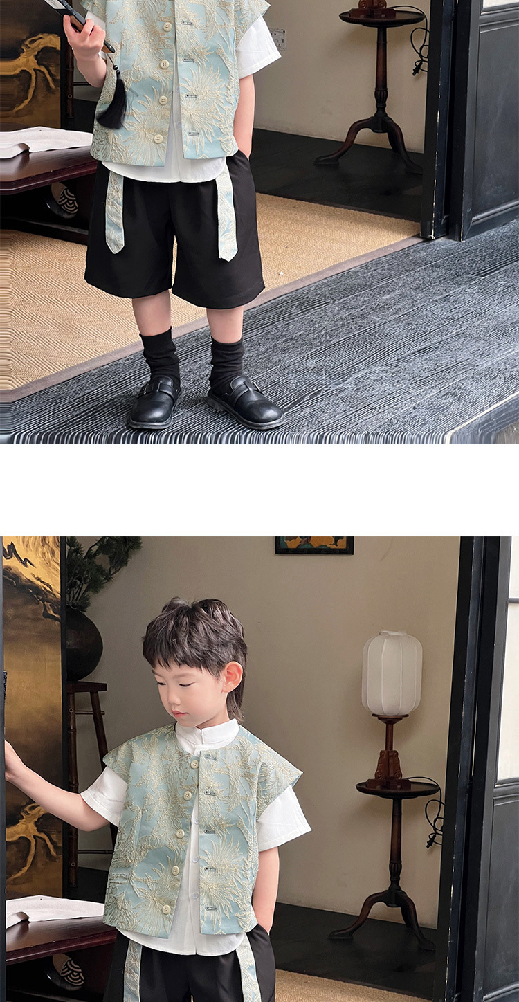 어린이 새로운 중국식 조각 조끼 2024 여름 새로운 소년과 소녀 국가 패션 자수 조끼 남성 보물 카디건 웨이스트 코트