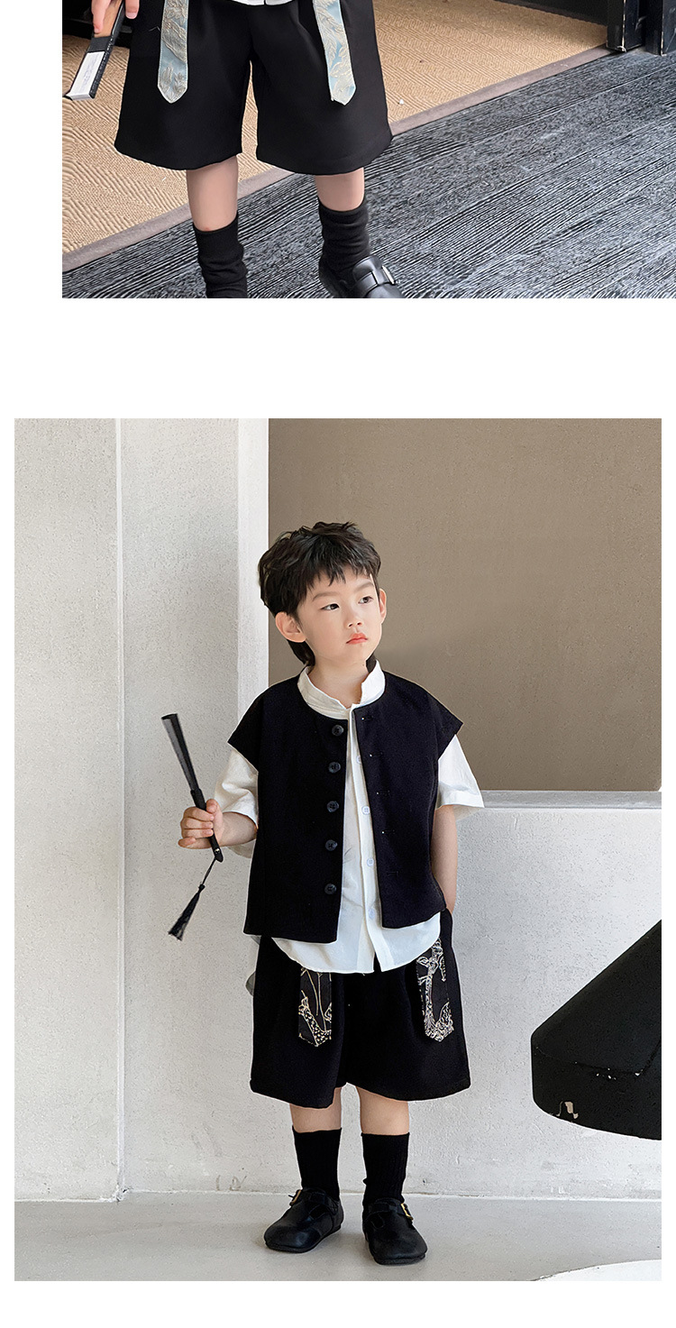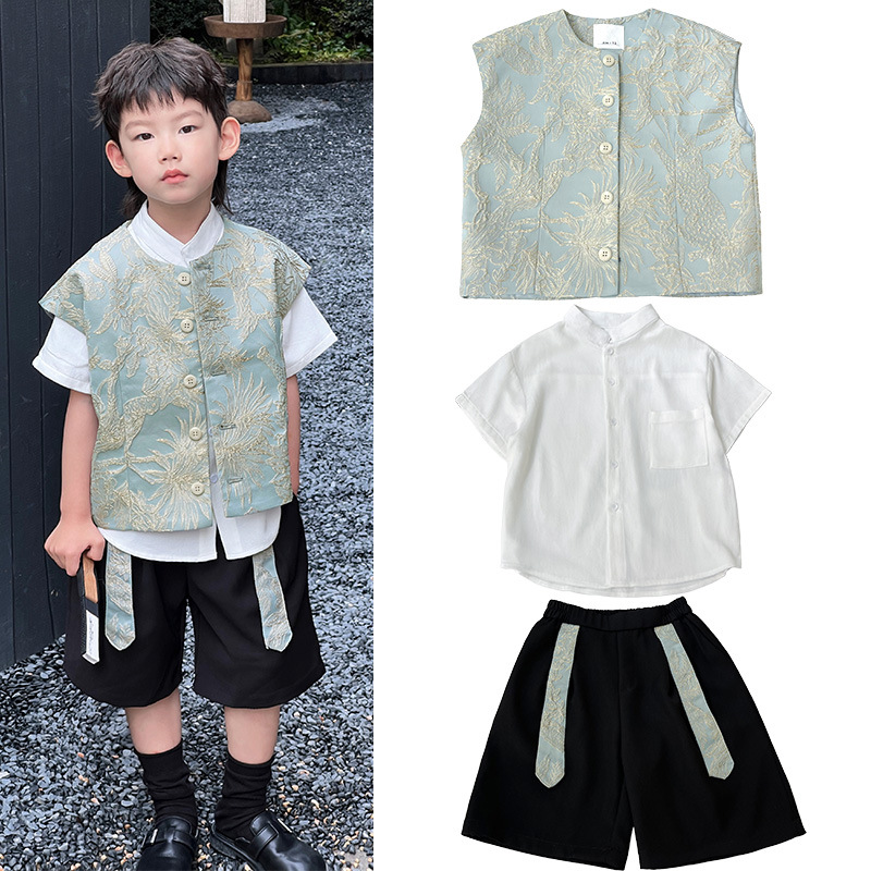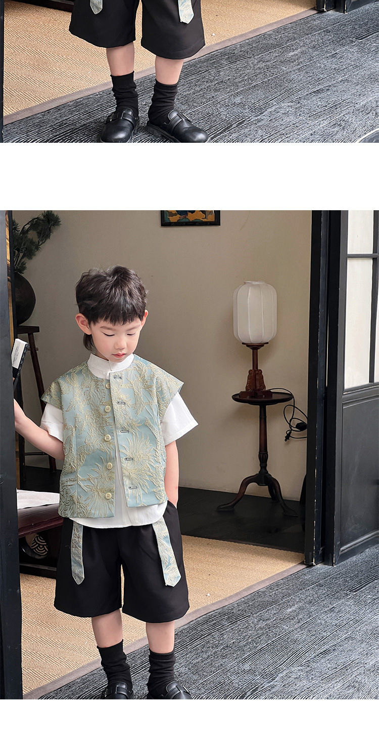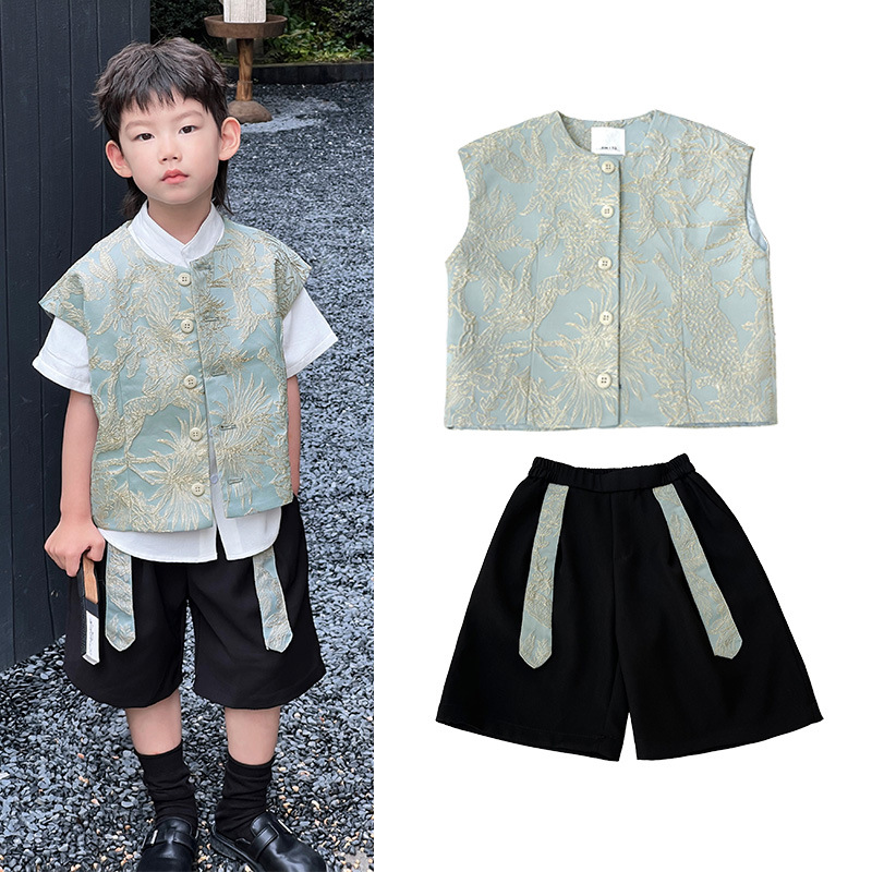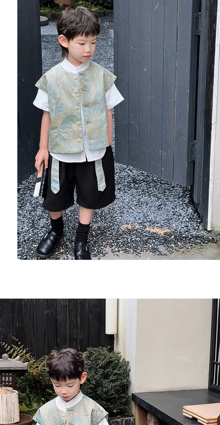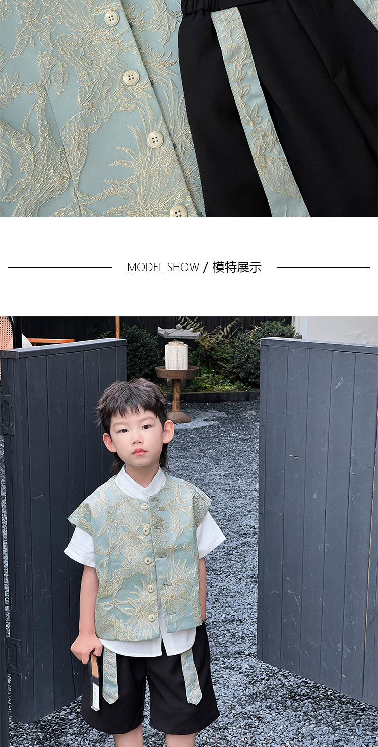 어린이 새로운 중국식 조각 조끼 2024 여름 새로운 소년과 소녀 국가 패션 자수 조끼 남성 보물 카디건 웨이스트 코트