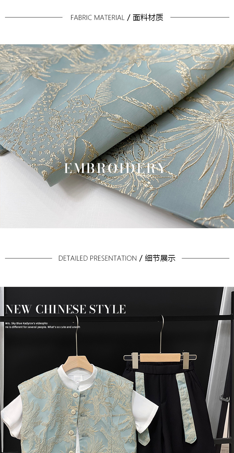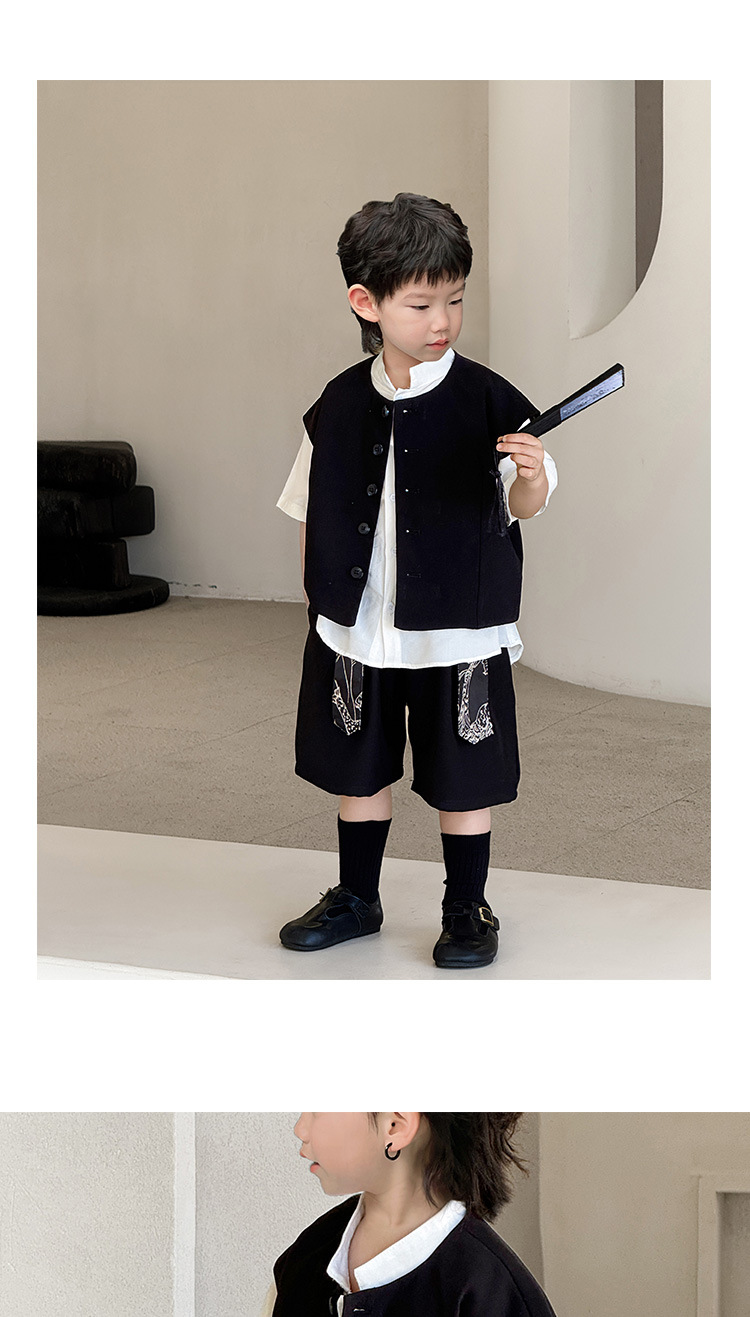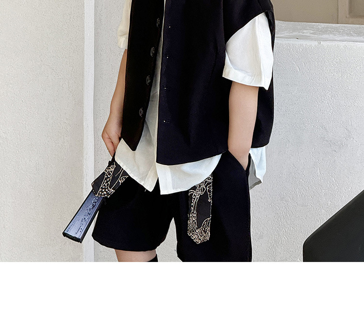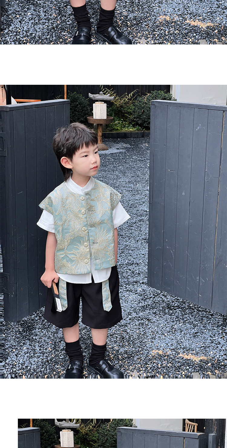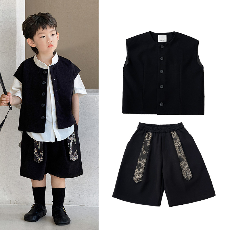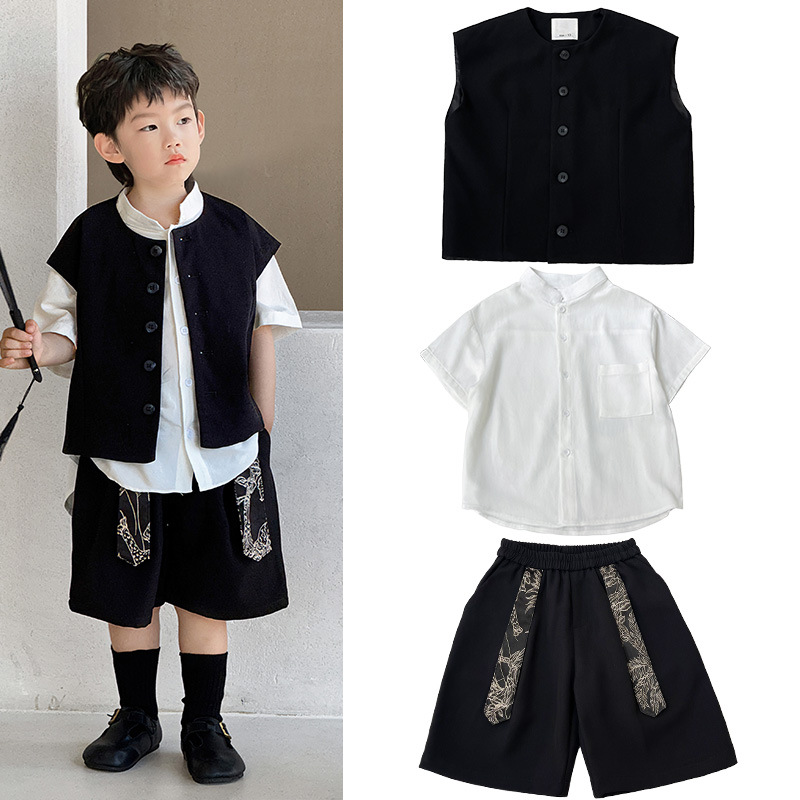 어린이 새로운 중국식 조각 조끼 2024 여름 새로운 소년과 소녀 국가 패션 자수 조끼 남성 보물 카디건 웨이스트 코트