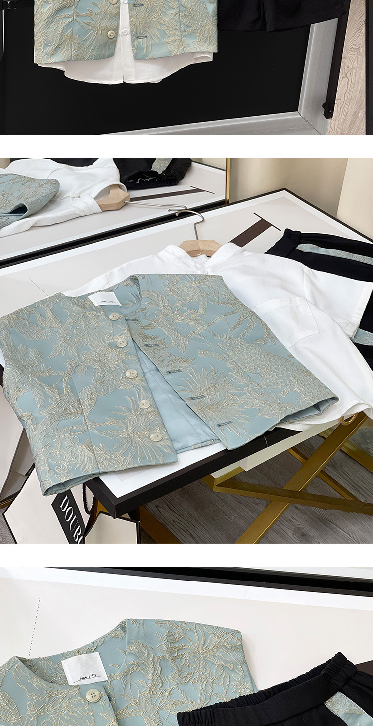 • 블루 조끼 중산 화이트 짧은 라인 블루 리본 반바지