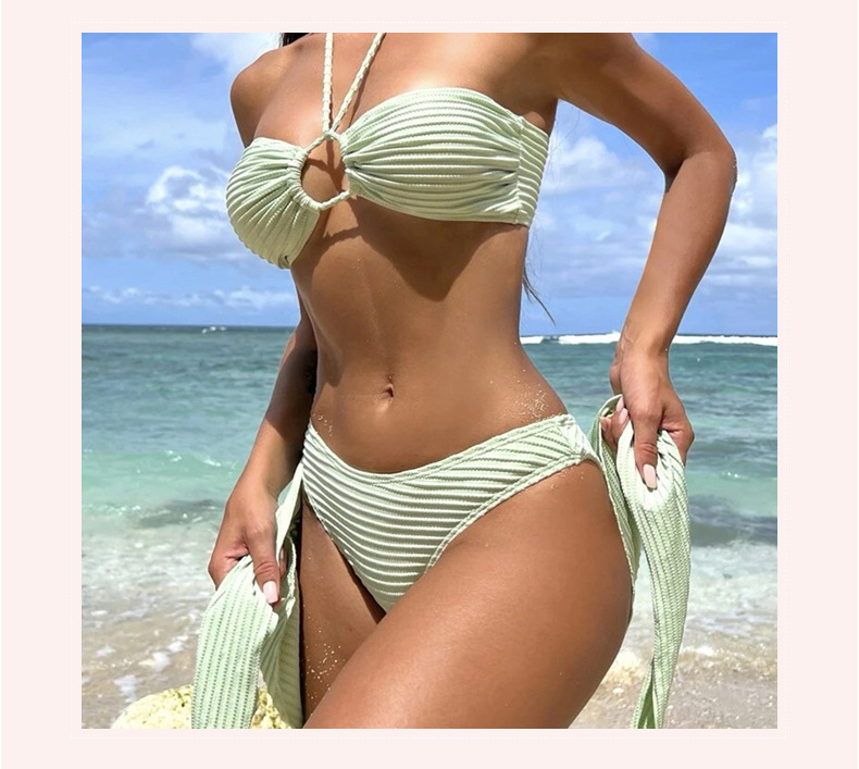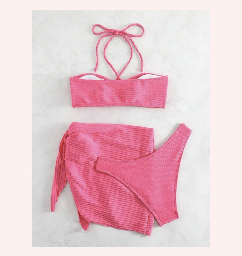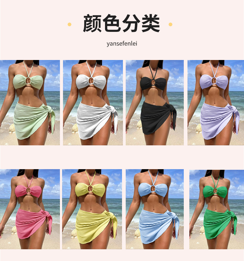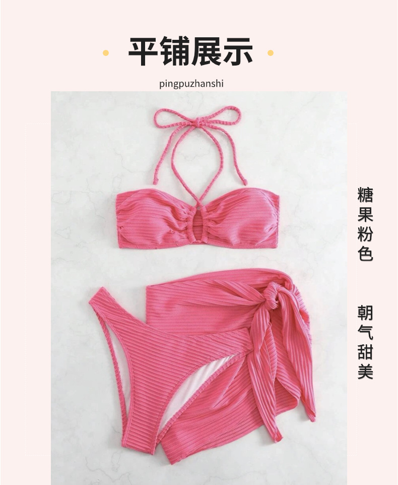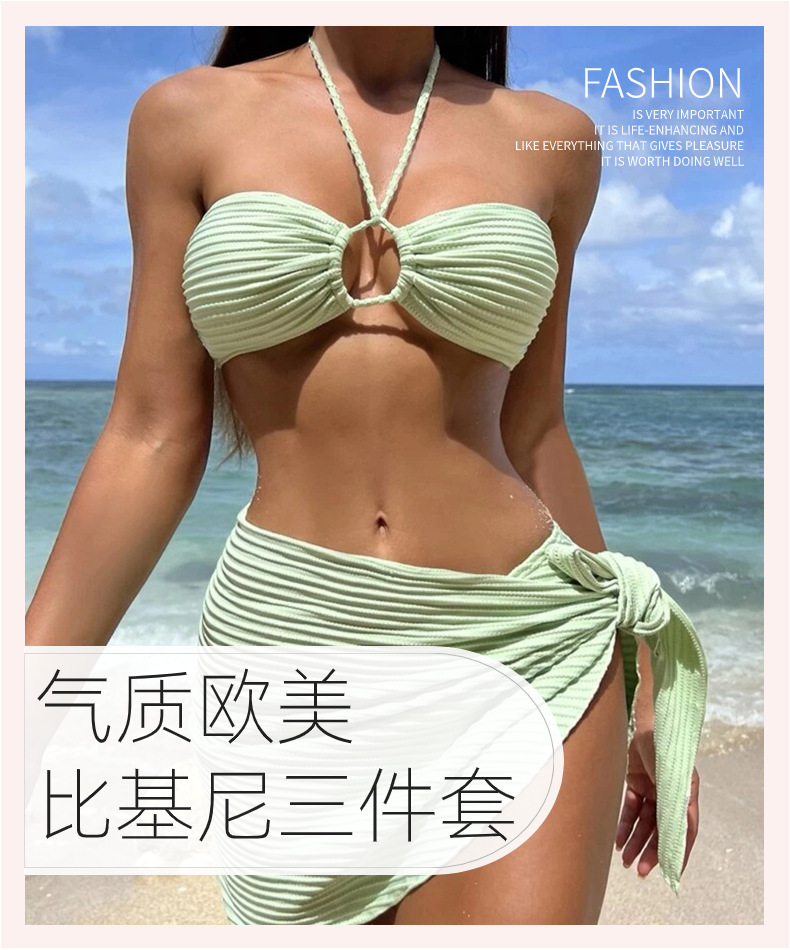 유럽과 미국의 새로운 섹시한 비키니 3 피스 거즈 스커트 수영복 비키니 목 단색 수영복 폭발 아마존스토어 가기