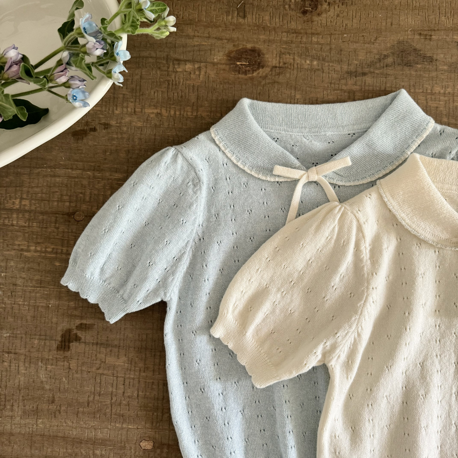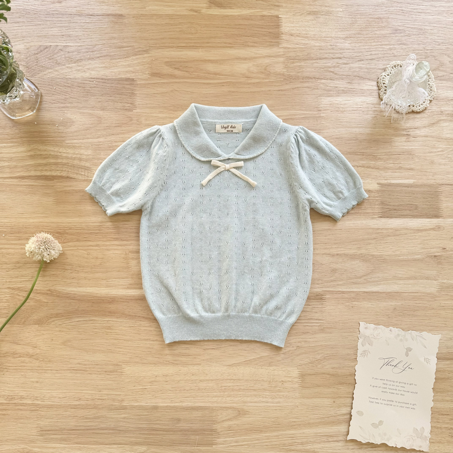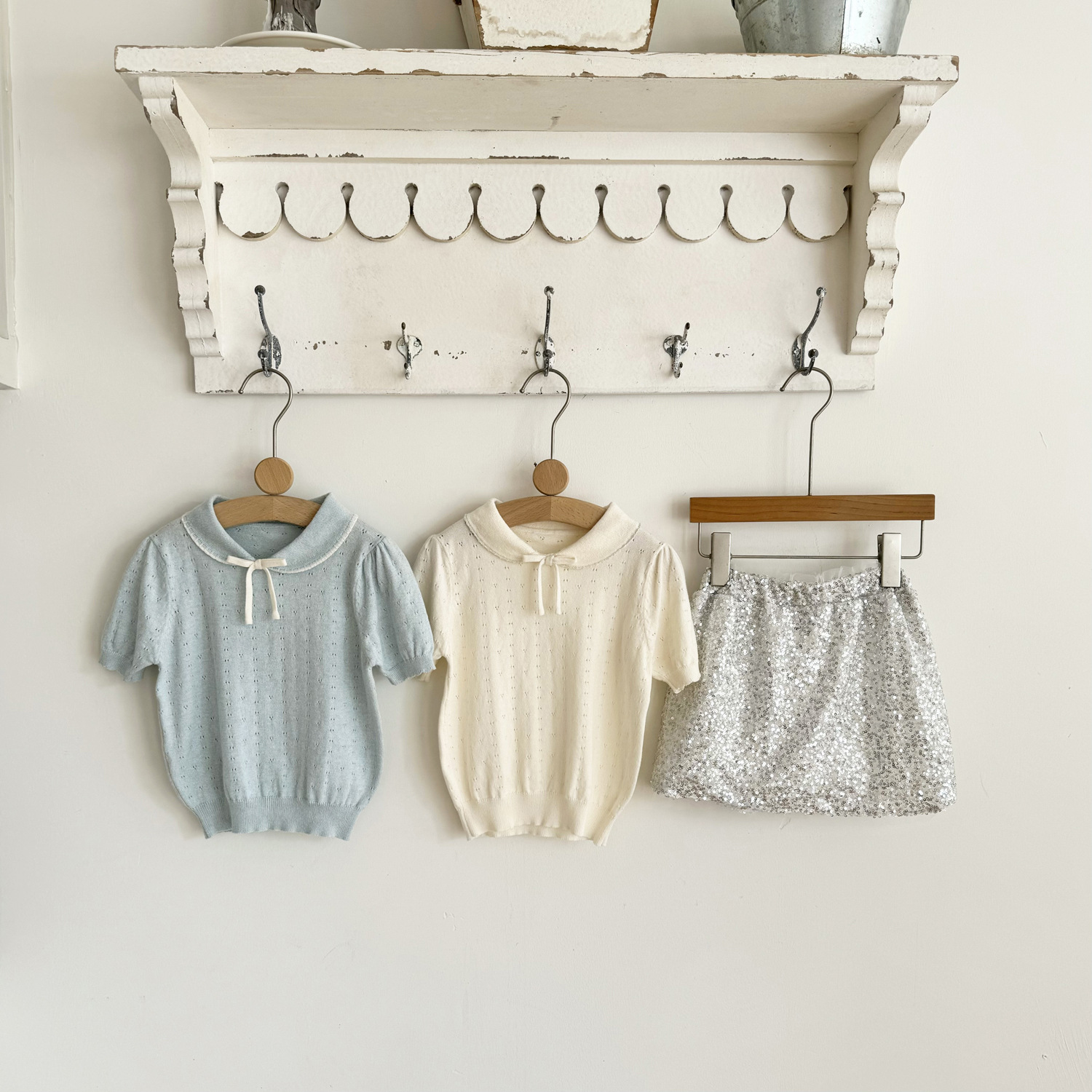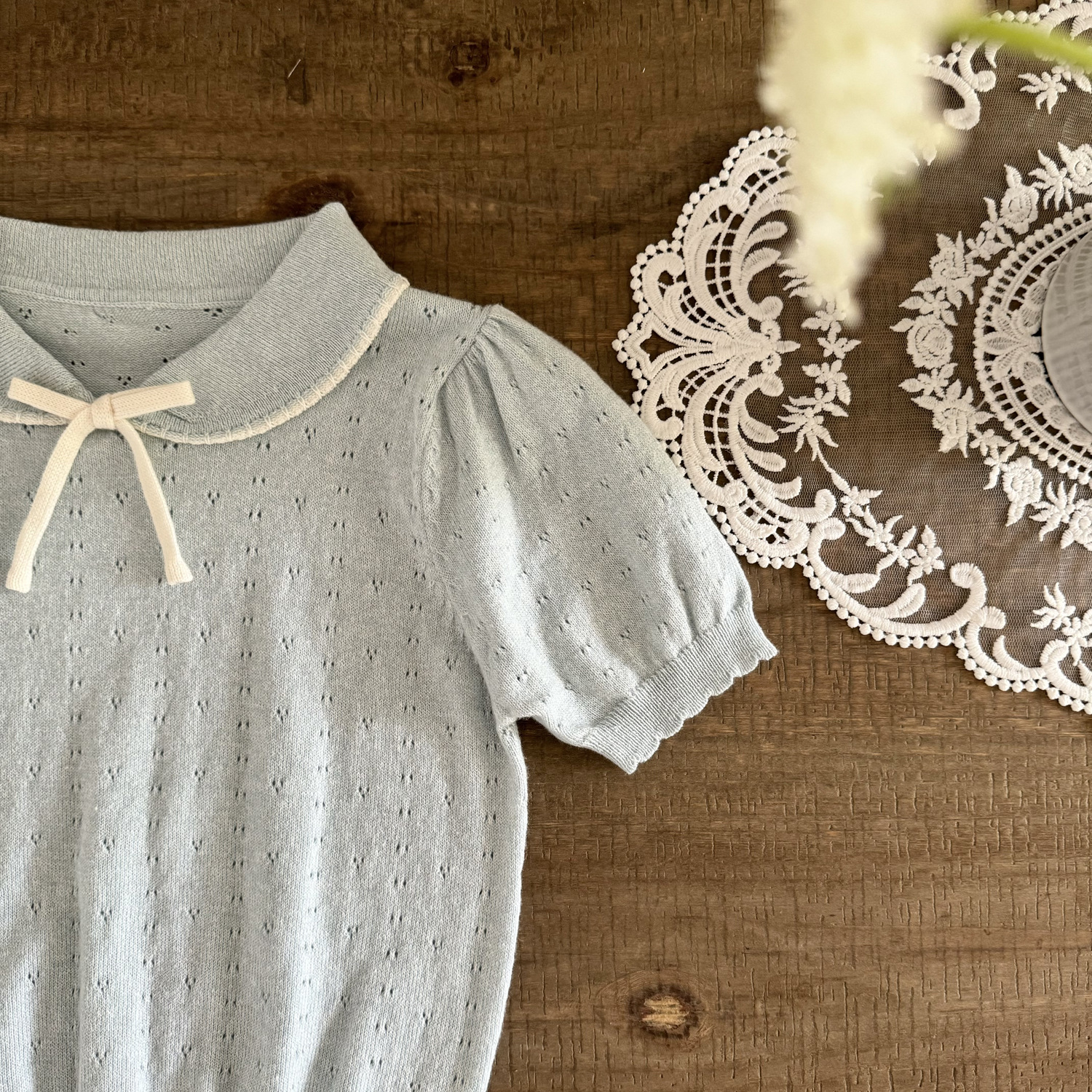 일본 아동복 소녀 반팔 스웨터, 랩 귀여운 활 반팔 티셔츠 Ins 여성용 반팔 탑