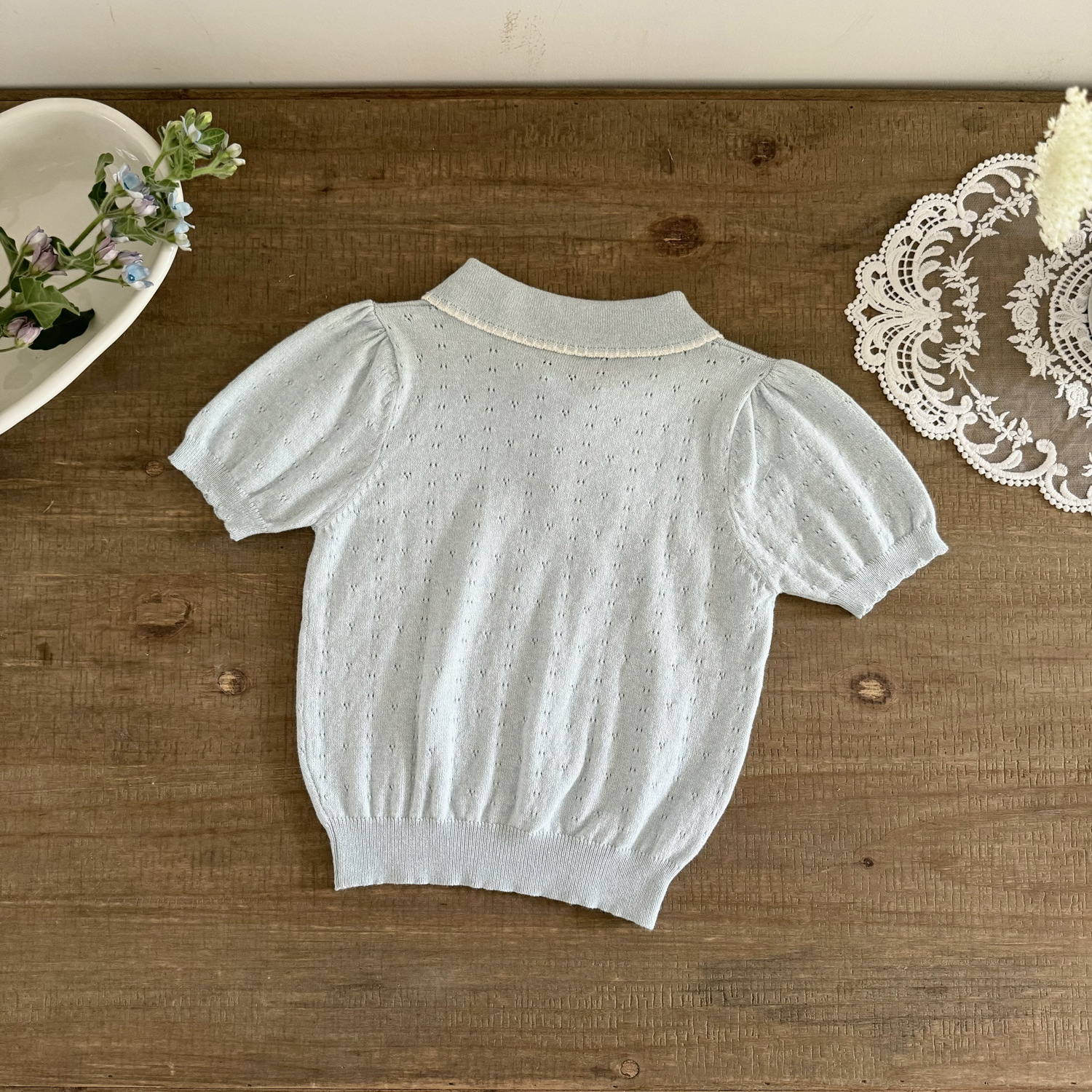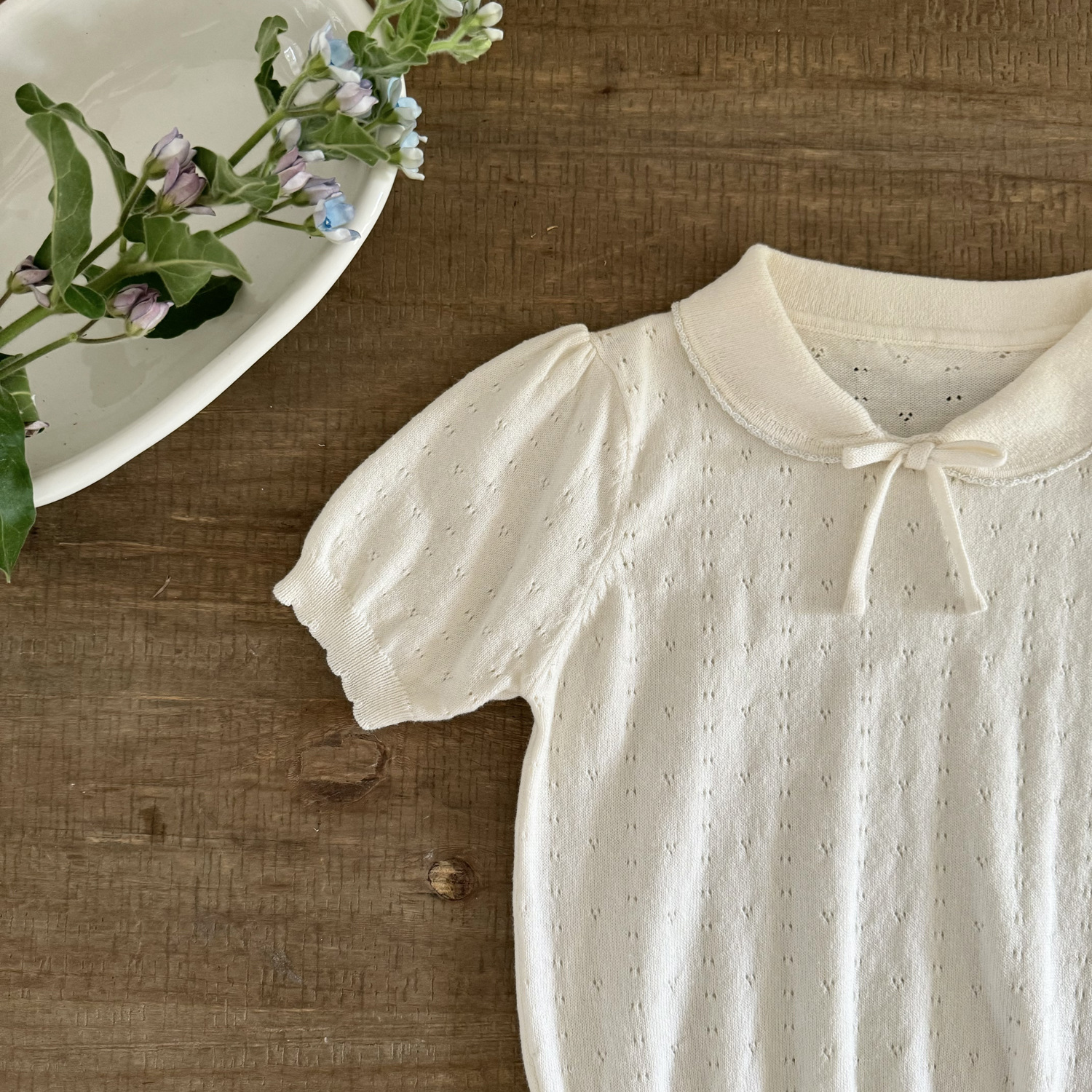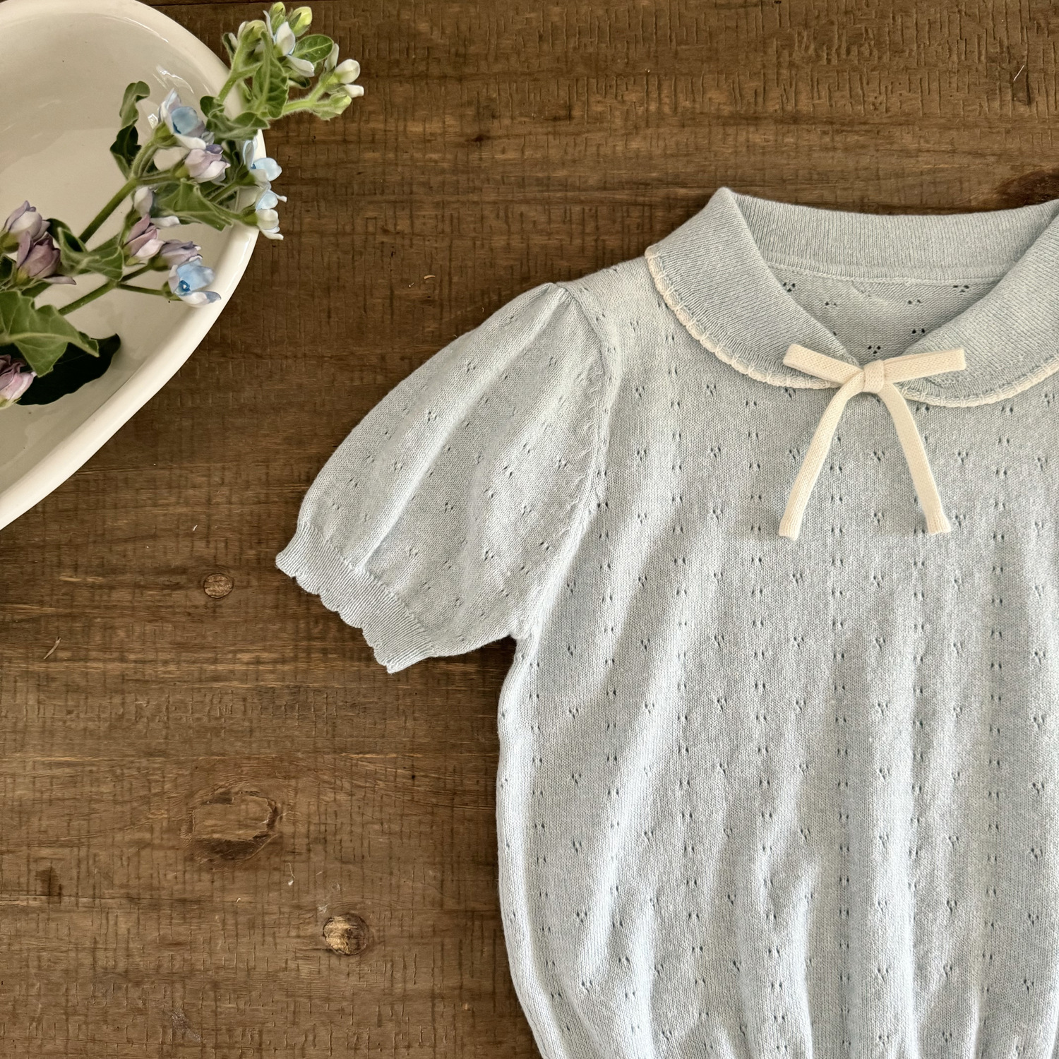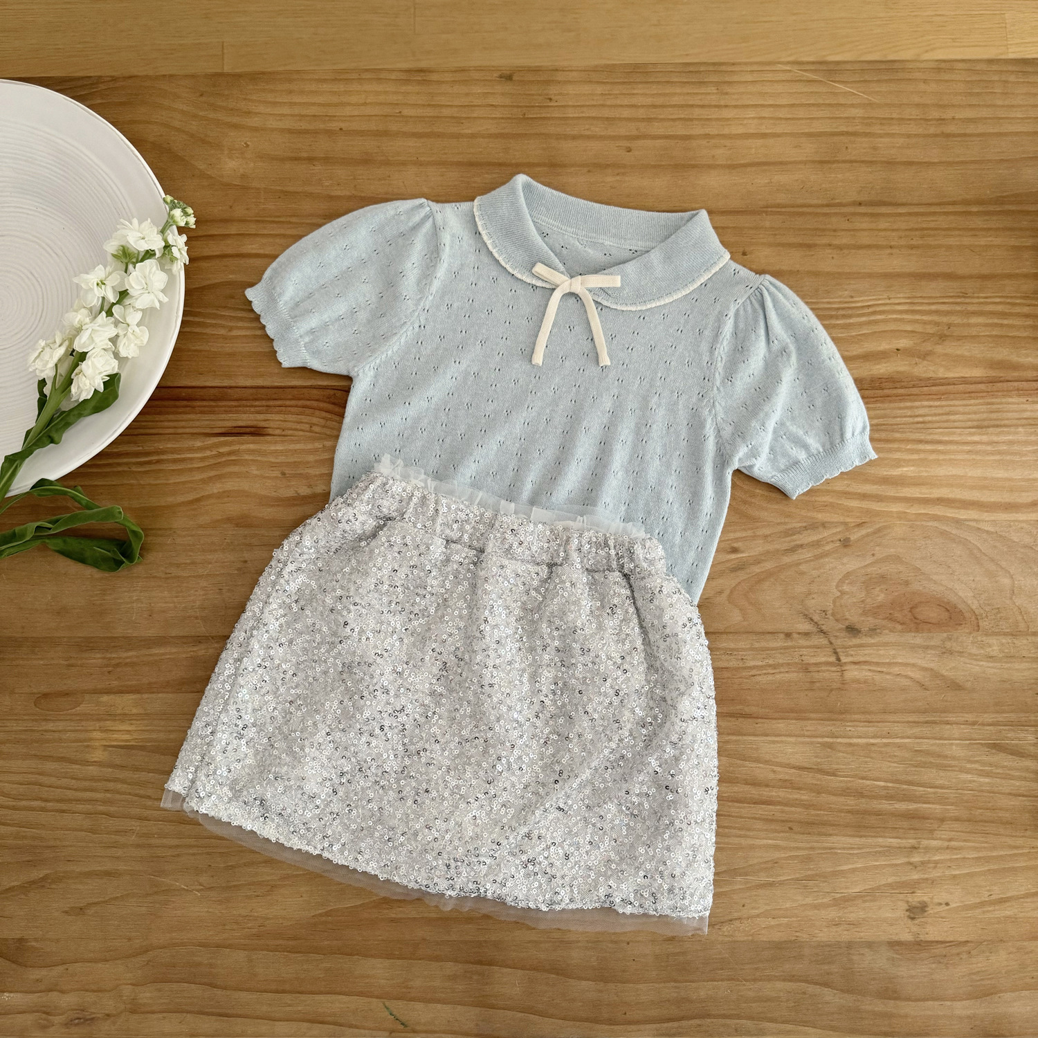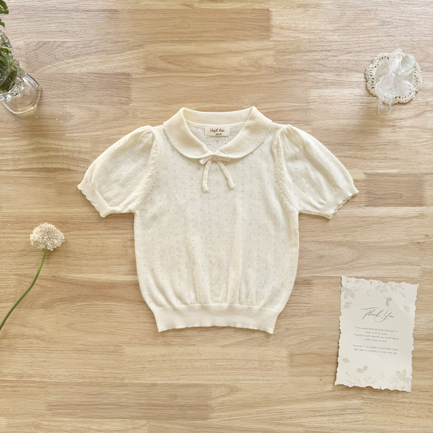 일본 아동복 소녀 반팔 스웨터, 랩 귀여운 활 반팔 티셔츠 Ins 여성용 반팔 탑