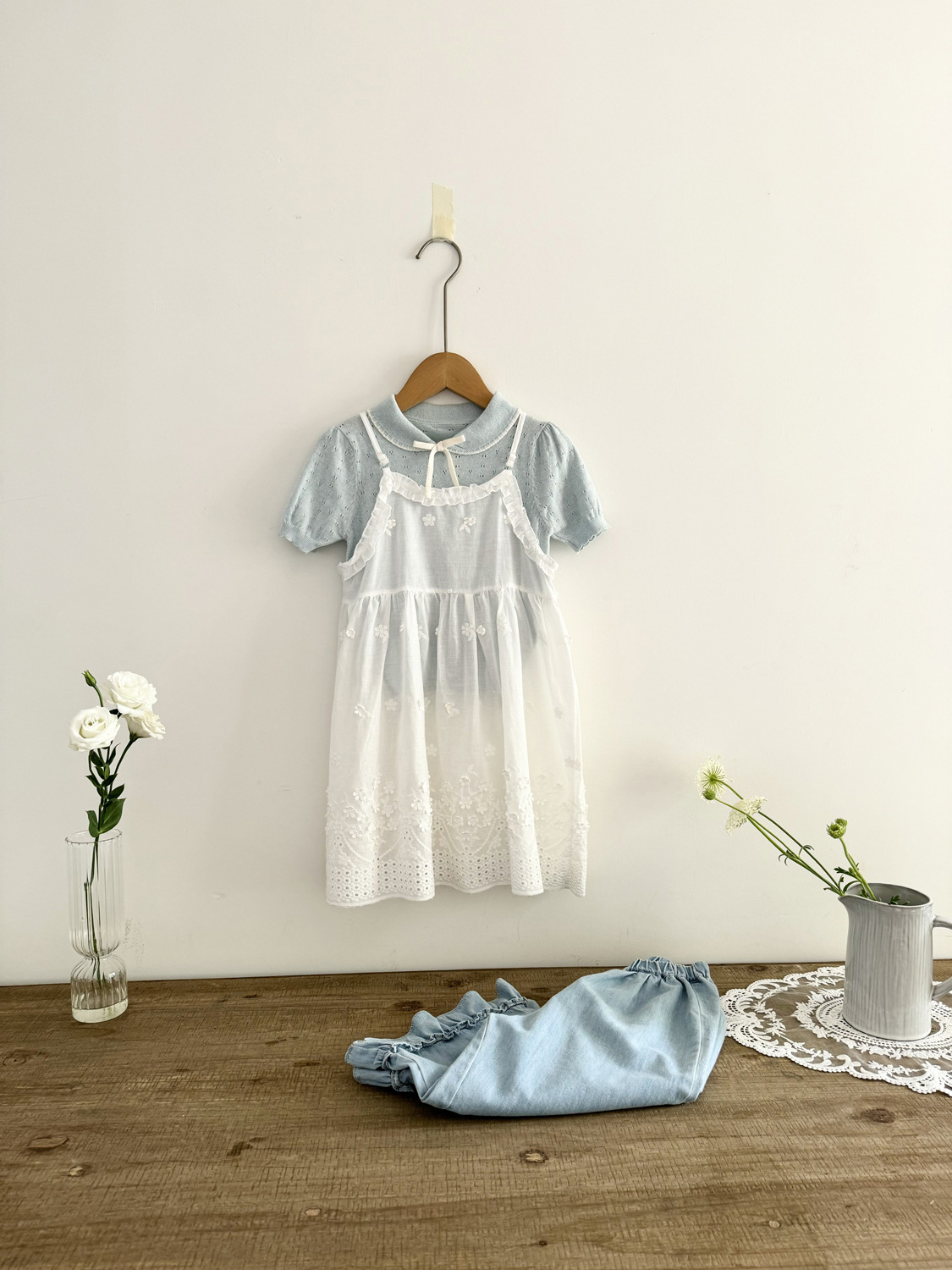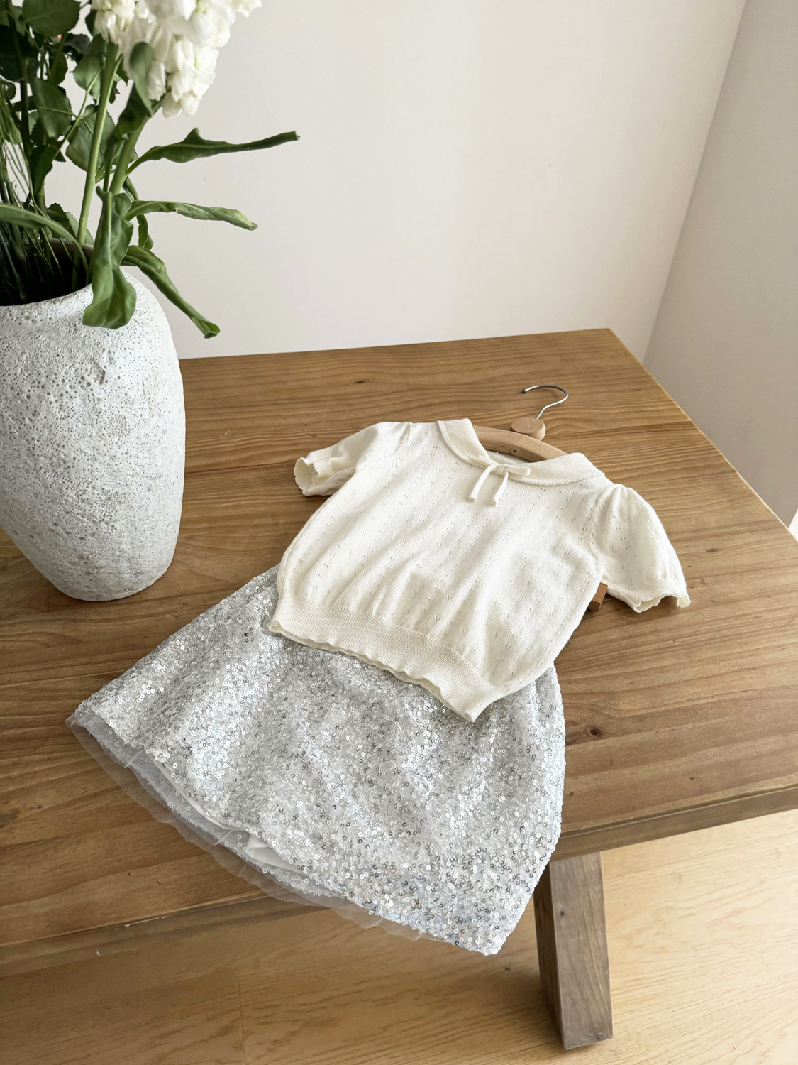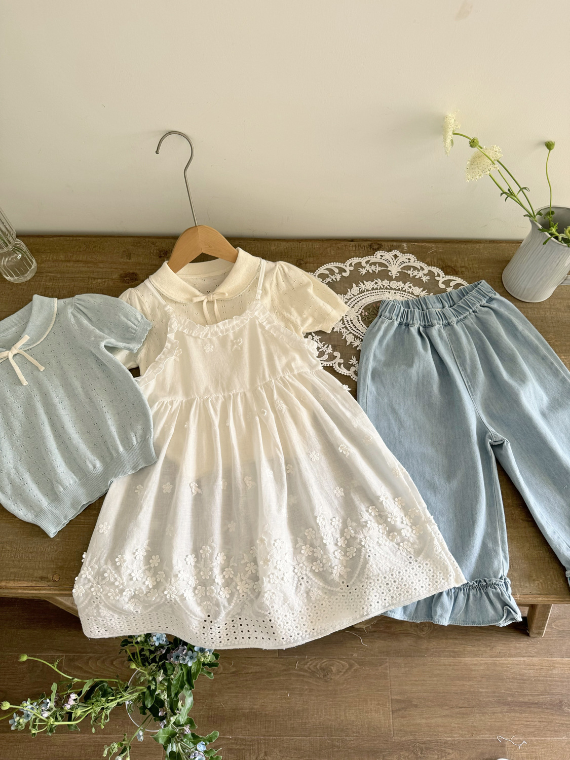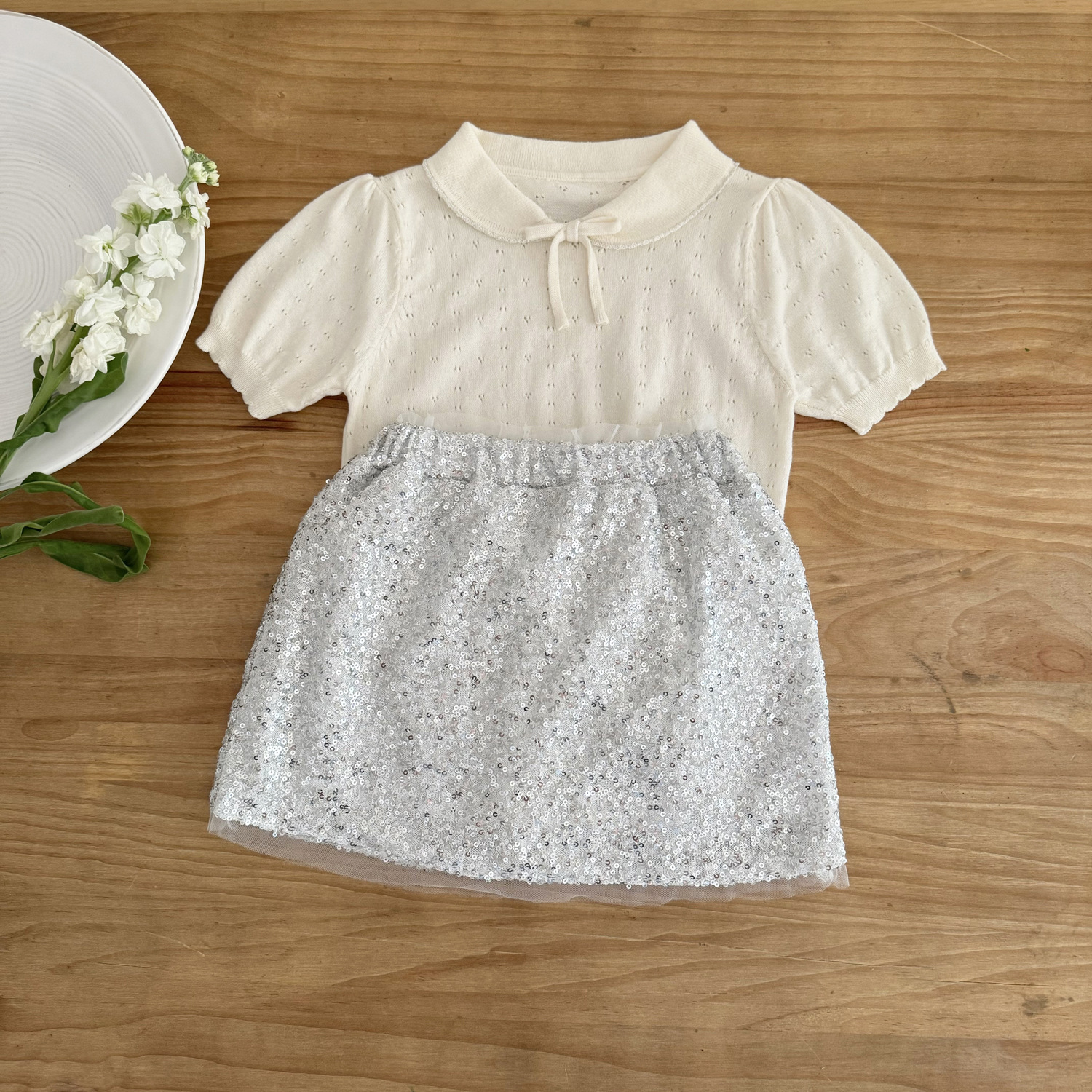 일본 아동복 소녀 반팔 스웨터, 랩 귀여운 활 반팔 티셔츠 Ins 여성용 반팔 탑