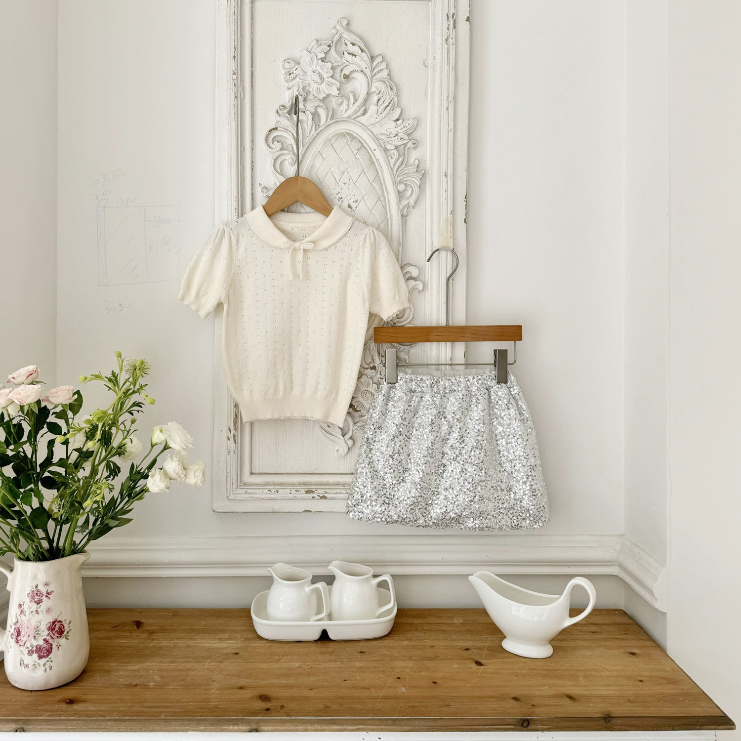일본 아동복 소녀 반팔 스웨터, 랩 귀여운 활 반팔 티셔츠 Ins 여성용 반팔 탑스토어 가기