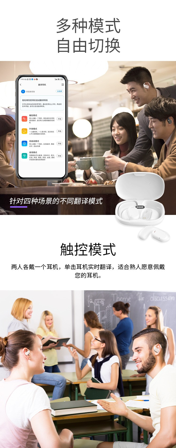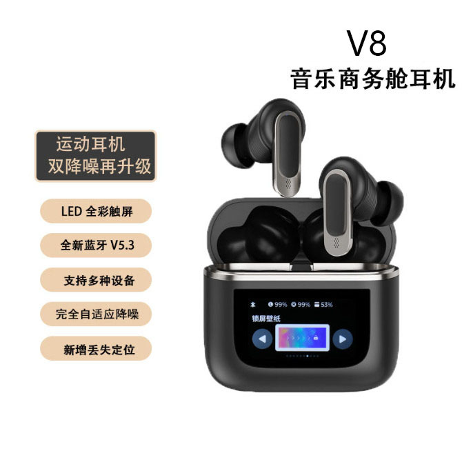 새로운 v8 블루투스 헤드셋 번역 헤드셋 지원 140개 이상의 언어 번역 디지털 디스플레이 터치 풀 컬러 스크린 ANC 소음 감소스토어 가기