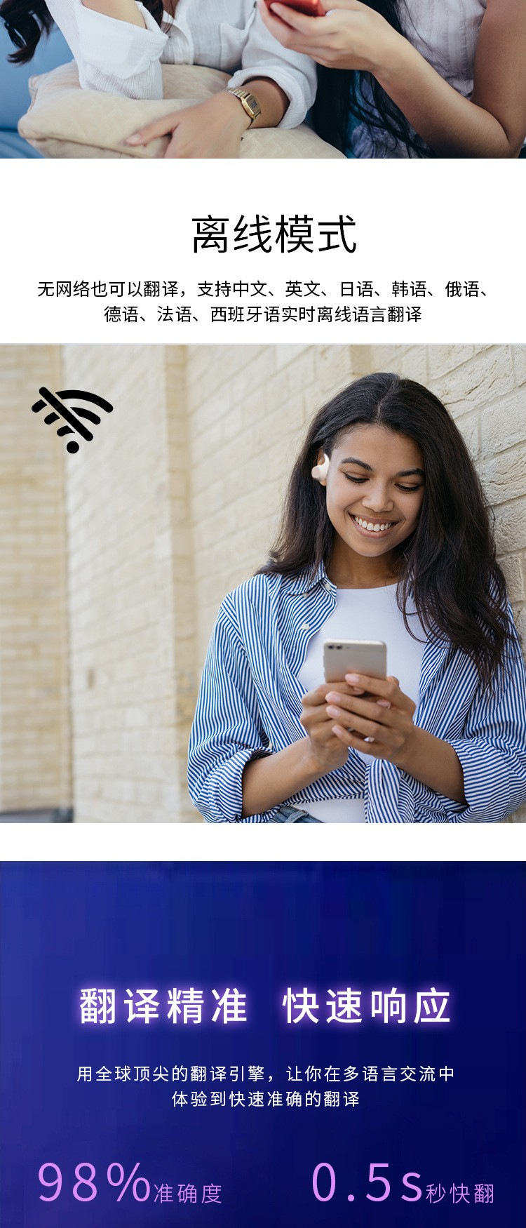 새로운 v8 블루투스 헤드셋 번역 헤드셋 지원 140개 이상의 언어 번역 디지털 디스플레이 터치 풀 컬러 스크린 ANC 소음 감소