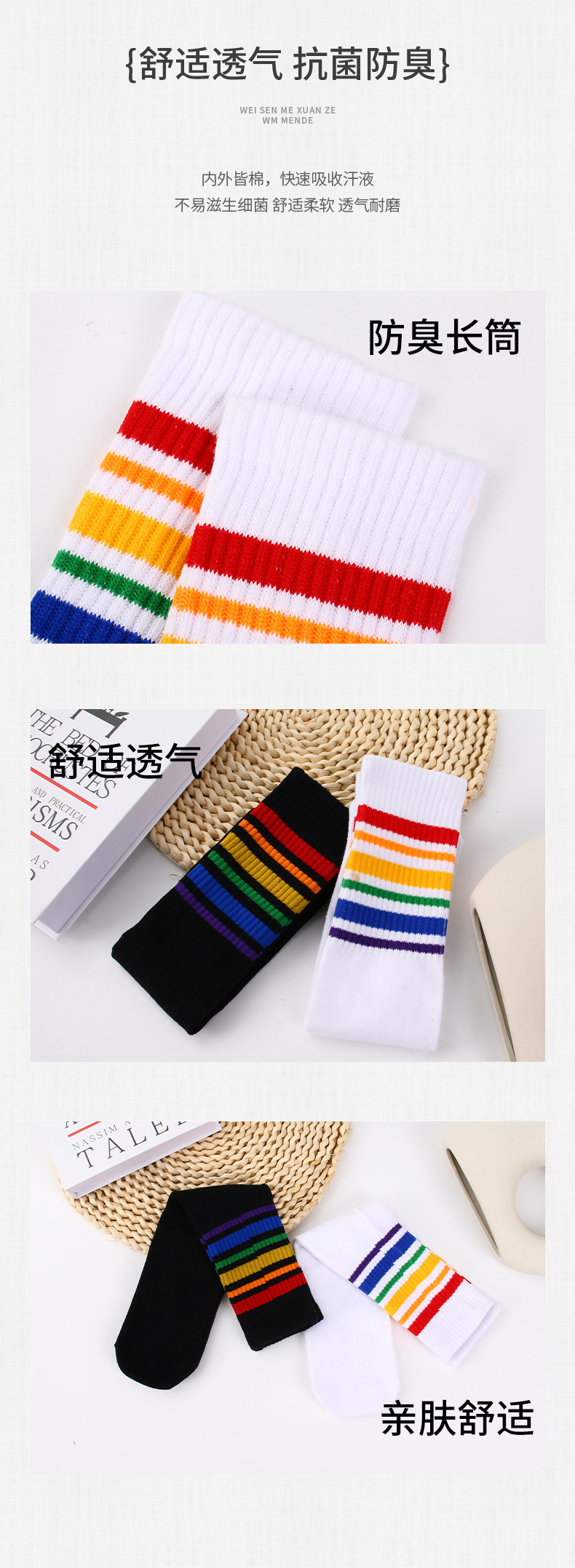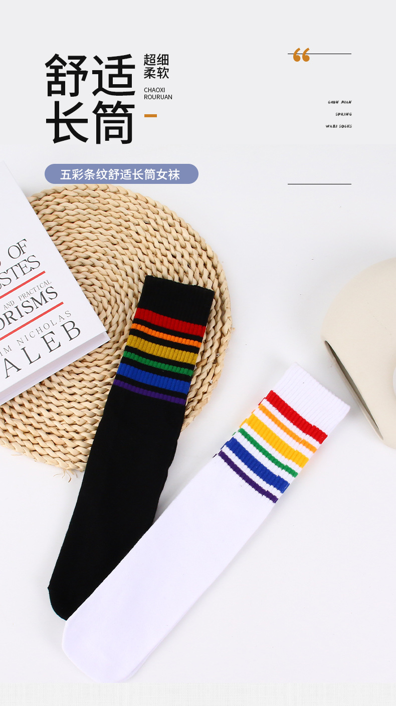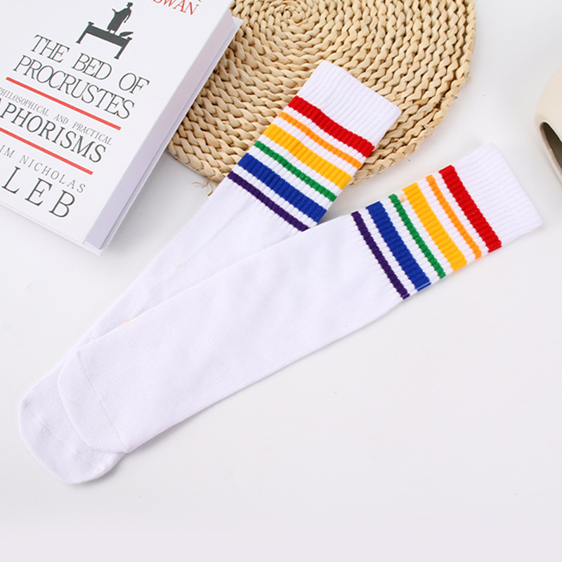 2024 대학스타일 어린이 한국식 학생 양말 레인보우 스트라이프 야구 양말 소년 소녀 양말 학교 유니폼 양말 순면 양말스토어 가기
