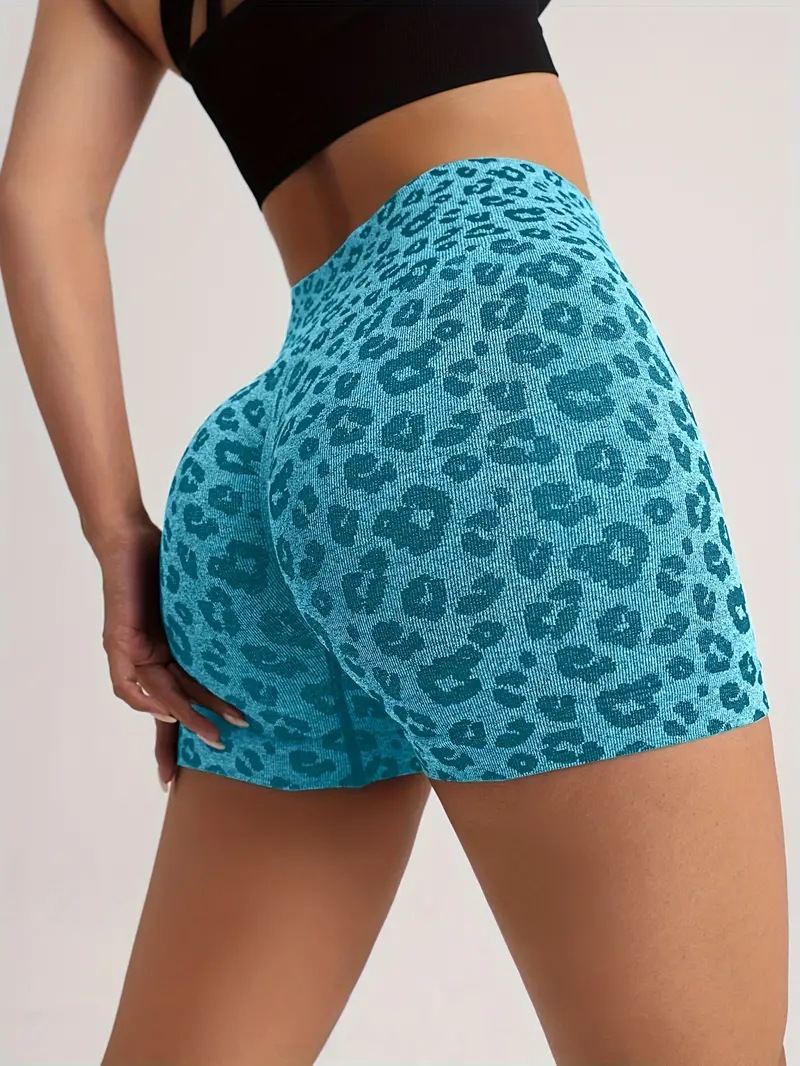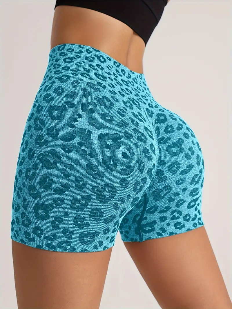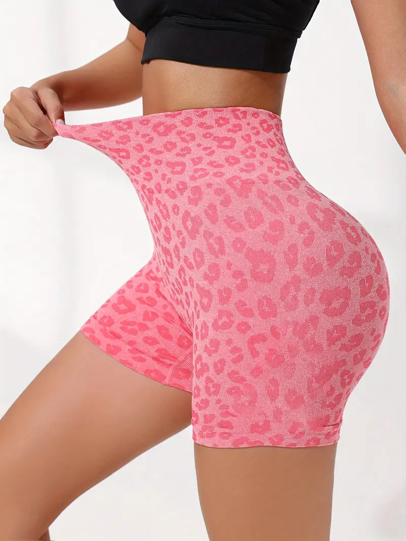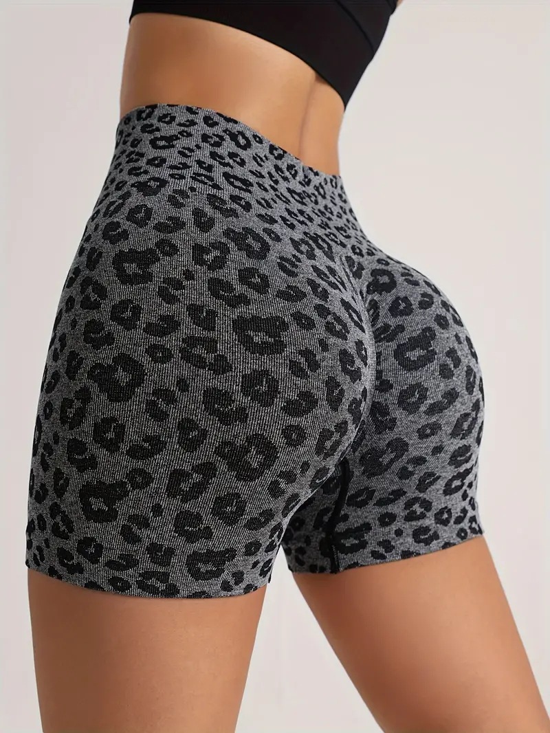 유럽과 미국의 패션 새로운 섹시한 표범 인쇄 엉덩이 리프팅 및 배꼽 수축 요가 바지 빠른 건조 러닝 스포츠 반바지 도매