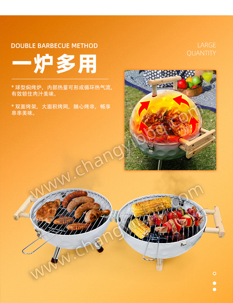 야외 양면 바베큐 오븐 휴대용 라운드 구형 가정용 고기 끈 바베큐 도구 캠핑 휴대용 탄소 그릴 오븐