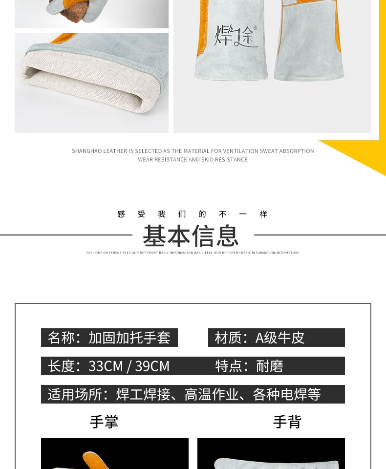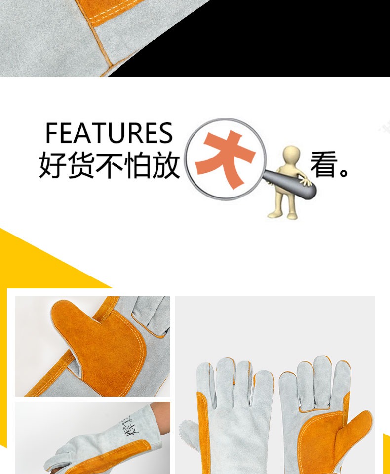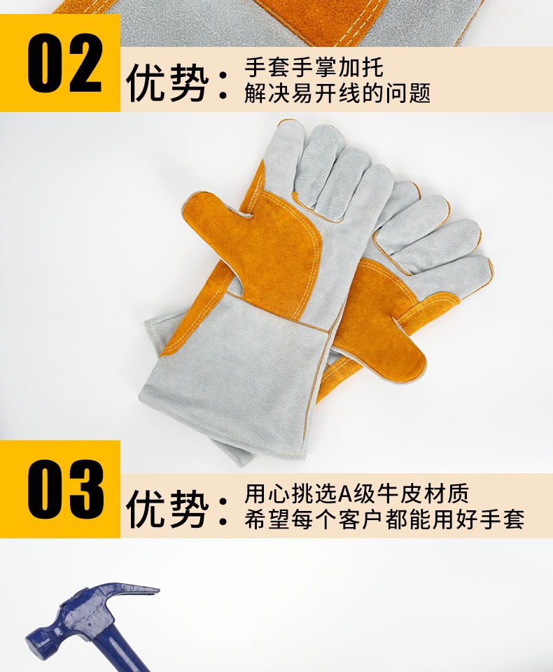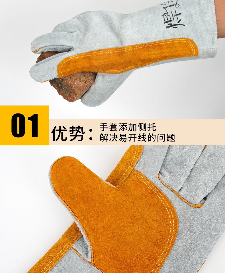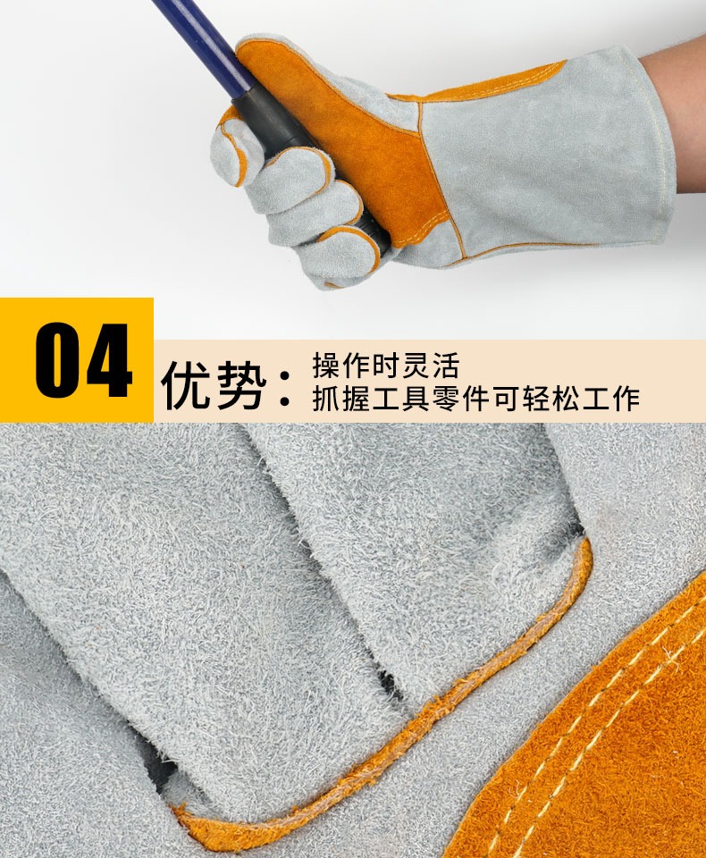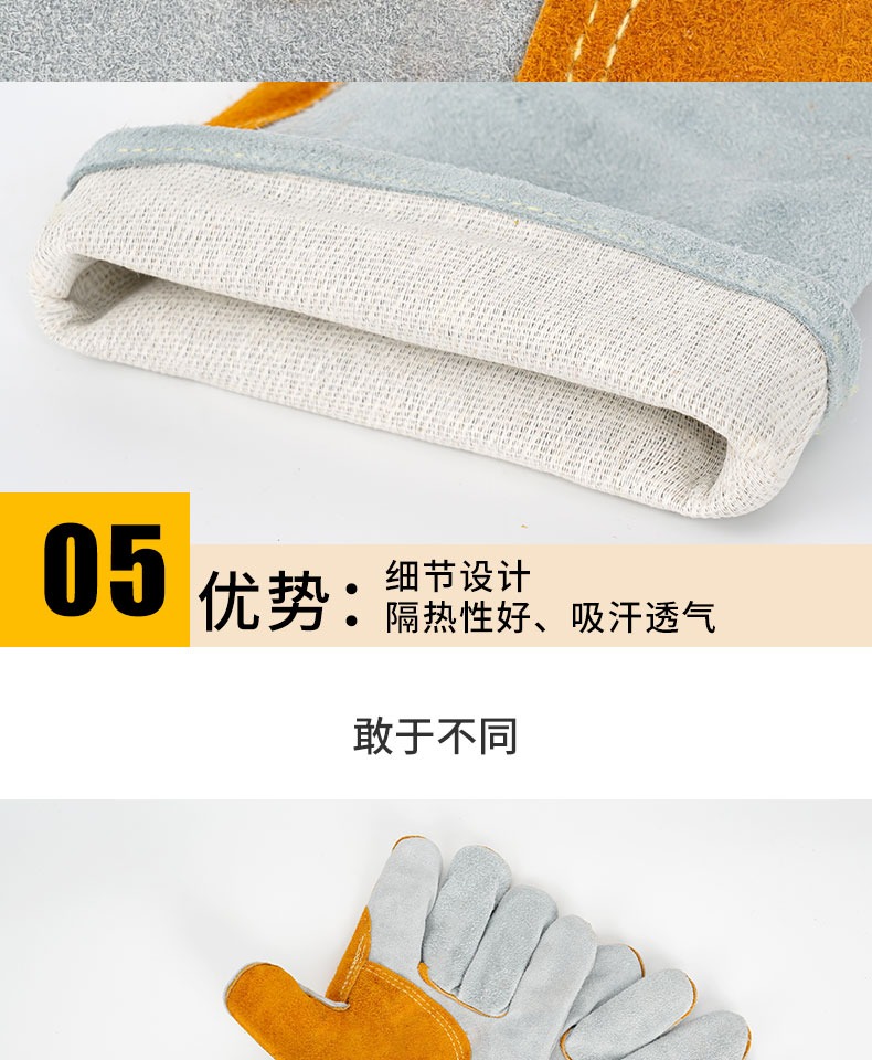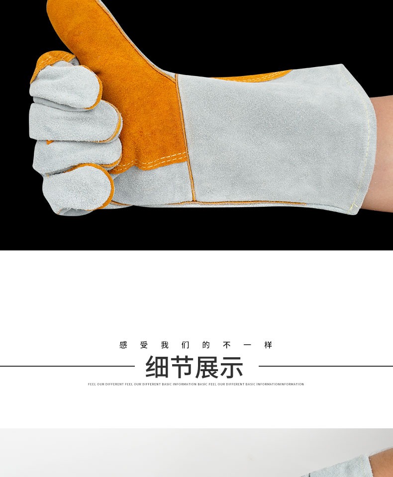 용접 가죽 고온 방지 용접 장갑, 화상 방지 부드러운 가죽 내마모성 용접공 용접 작업 노동 보호 장갑스토어 가기
