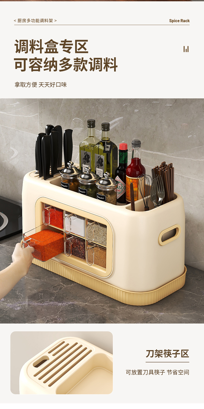 다기능 조미료 상자 저장 랙 주방 보관 조미료 상자 통합 다중 구획 조미료 탱크 저장 상자 주방 용품스토어 가기