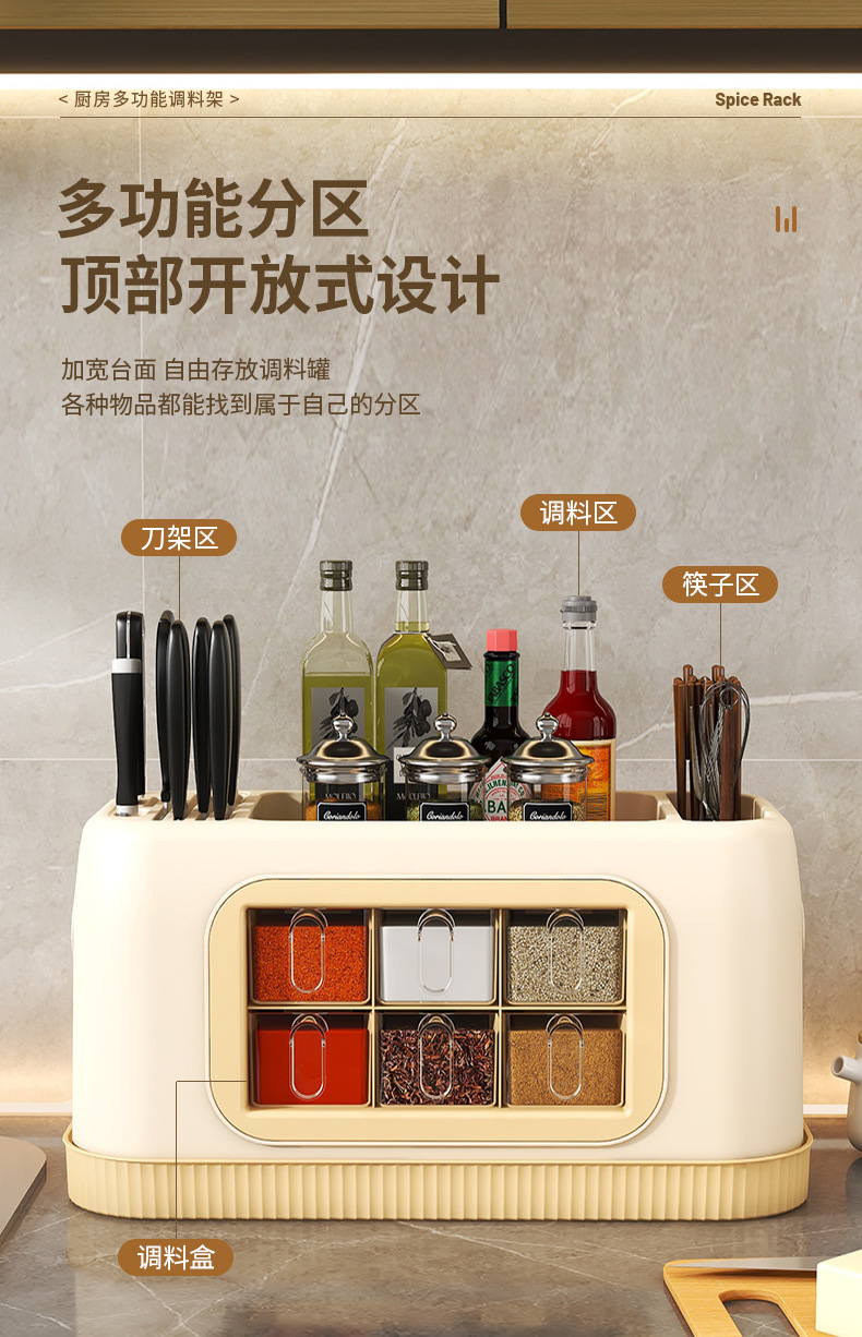 다기능 조미료 상자 저장 랙 주방 보관 조미료 상자 통합 다중 구획 조미료 탱크 저장 상자 주방 용품
