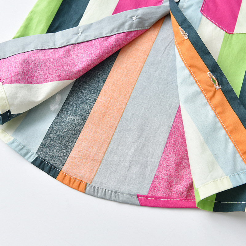 대외 무역 아동복 무지개 줄무늬 반팔 셔츠 새로운 아동면 옷깃 패션 카디건 한국 코트 아기스토어 가기