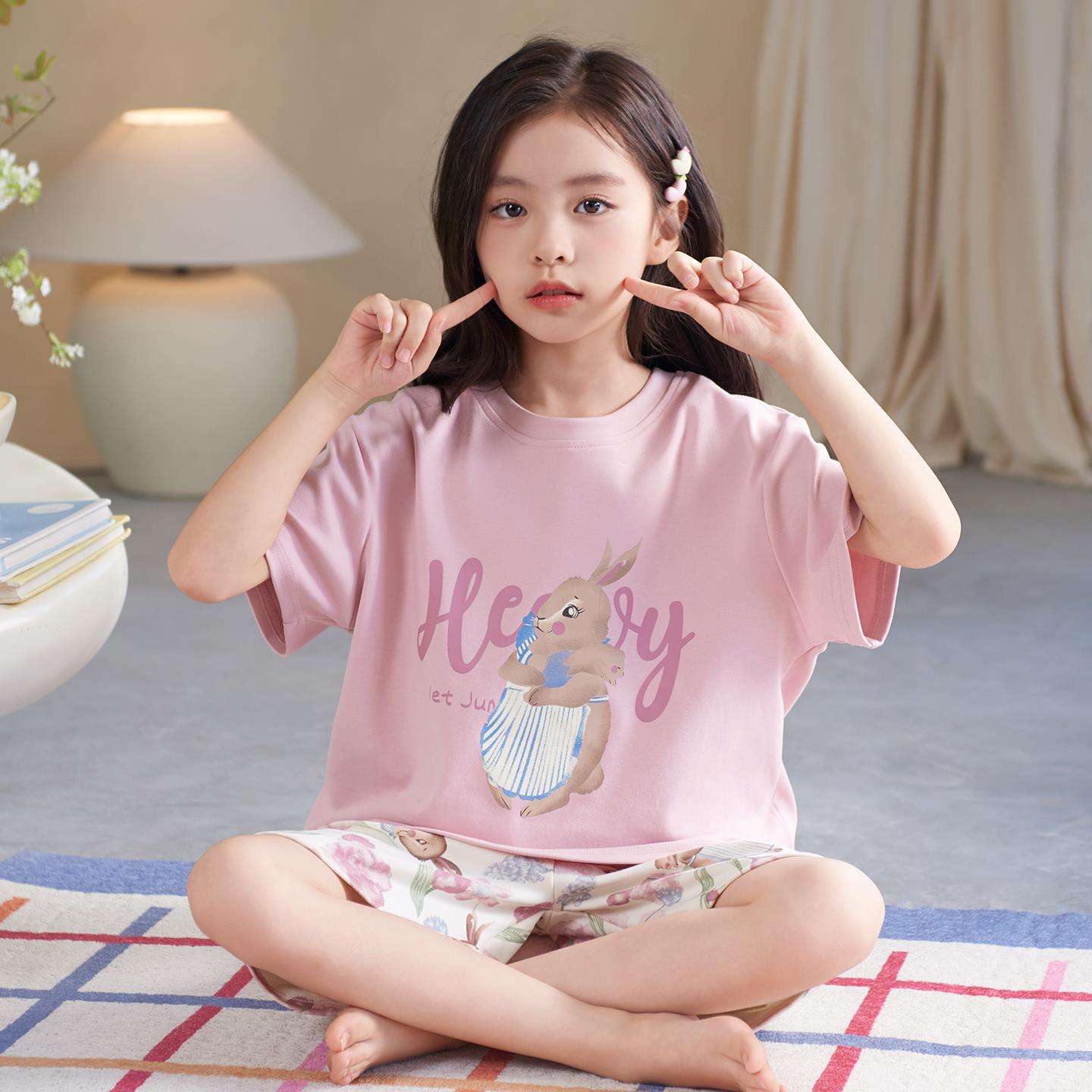 2025 어린이 잠옷 소녀 순면 봄과 가을 긴 소매 잠옷 간단한 줄무늬 여성 중 큰 어린이 플러스 사이즈 세트 순면
