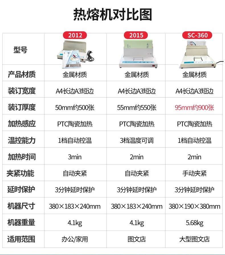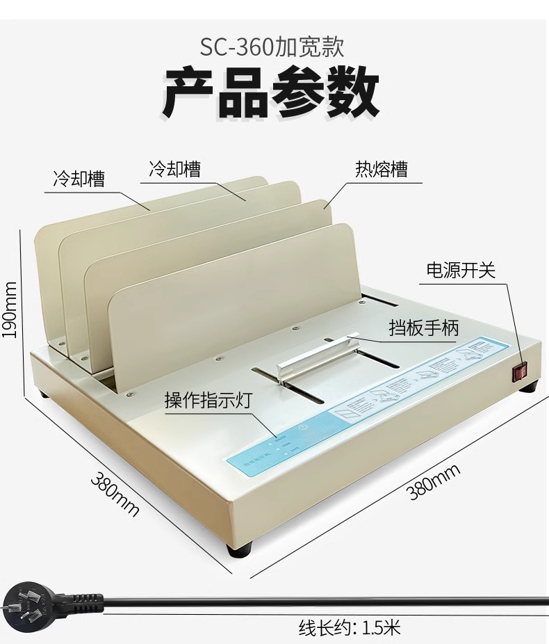 • [미국 버전] 확장된 SC-360 핫멜트 바인딩 기계 1대