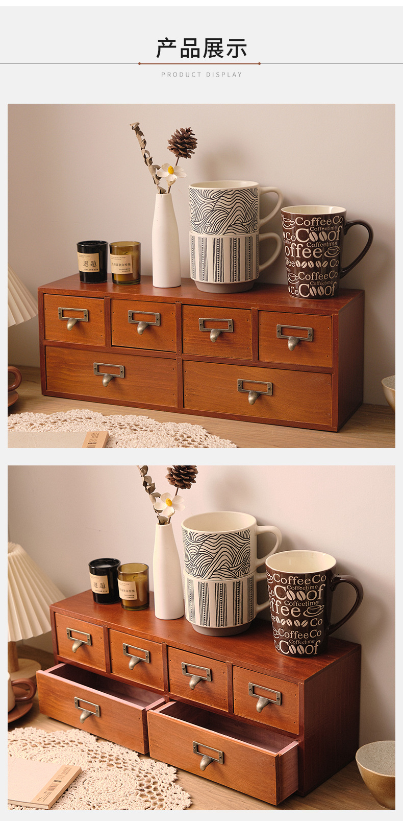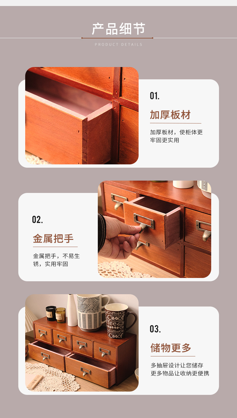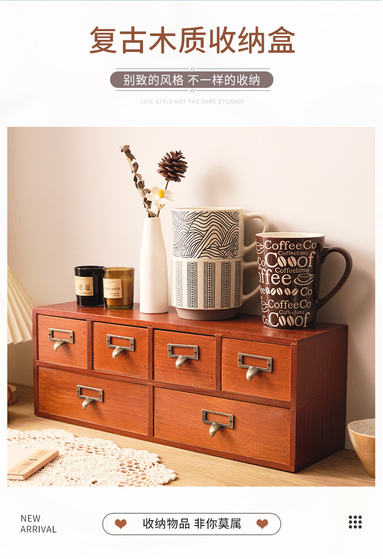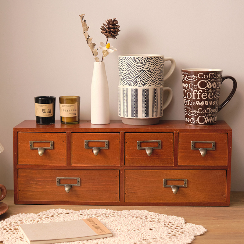 나무 탁상용 수납장 서랍형 잡화 및 문구 정리함 레트로 심플 책상 사무실 수납장