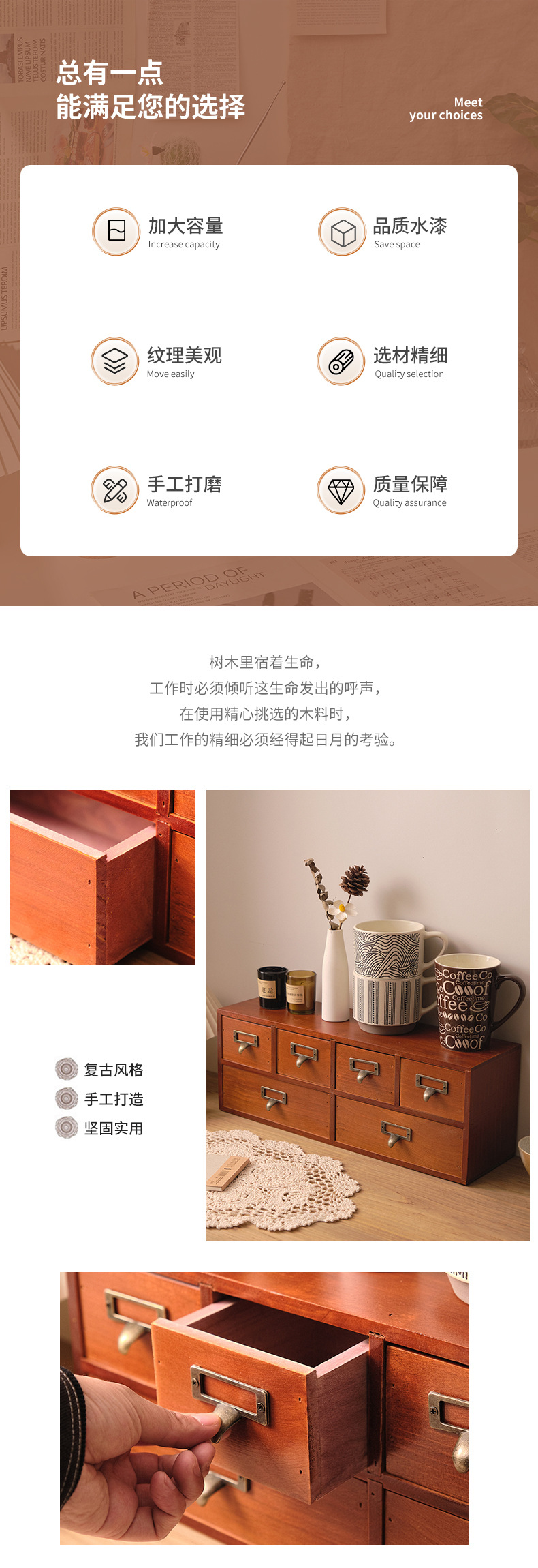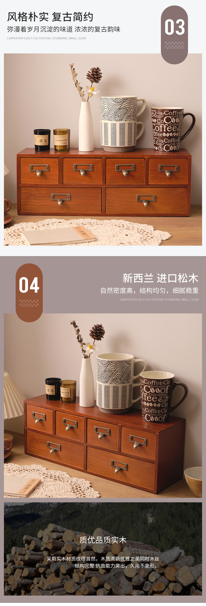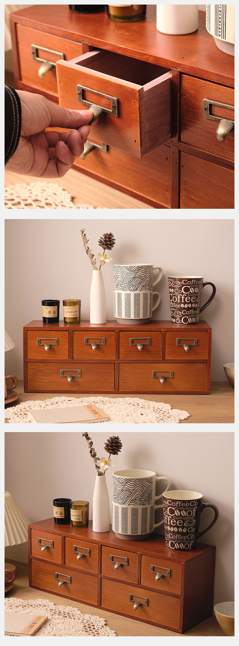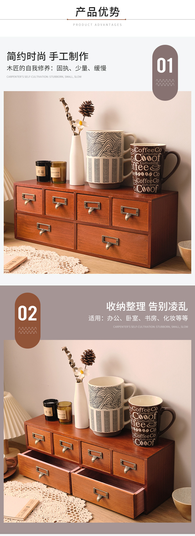 나무 탁상용 수납장 서랍형 잡화 및 문구 정리함 레트로 심플 책상 사무실 수납장
