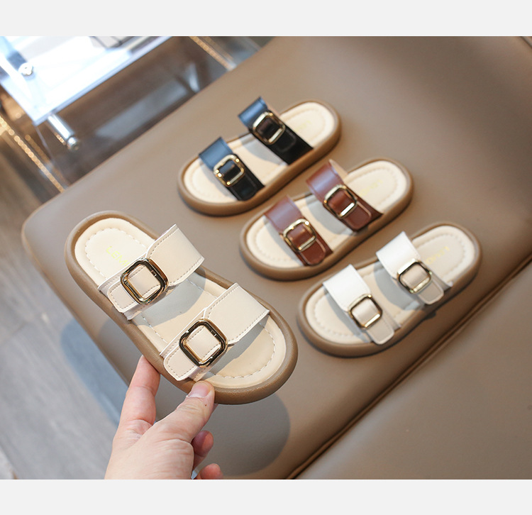 어린이 슬리퍼 여아 신발 2026년 여름 신상 스타일리쉬한 라운드 토 버튼식 슬립온 아우터웨어용 유아용 샌들