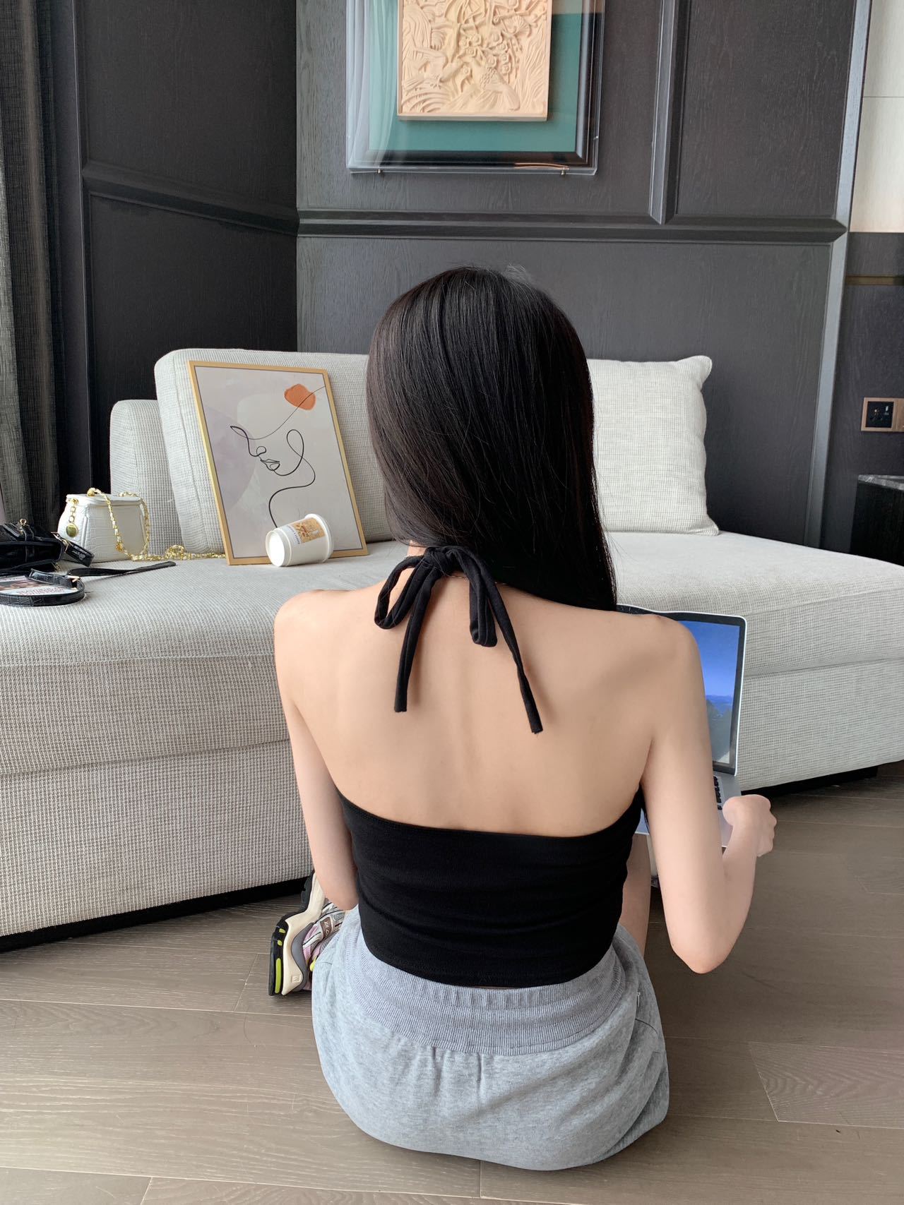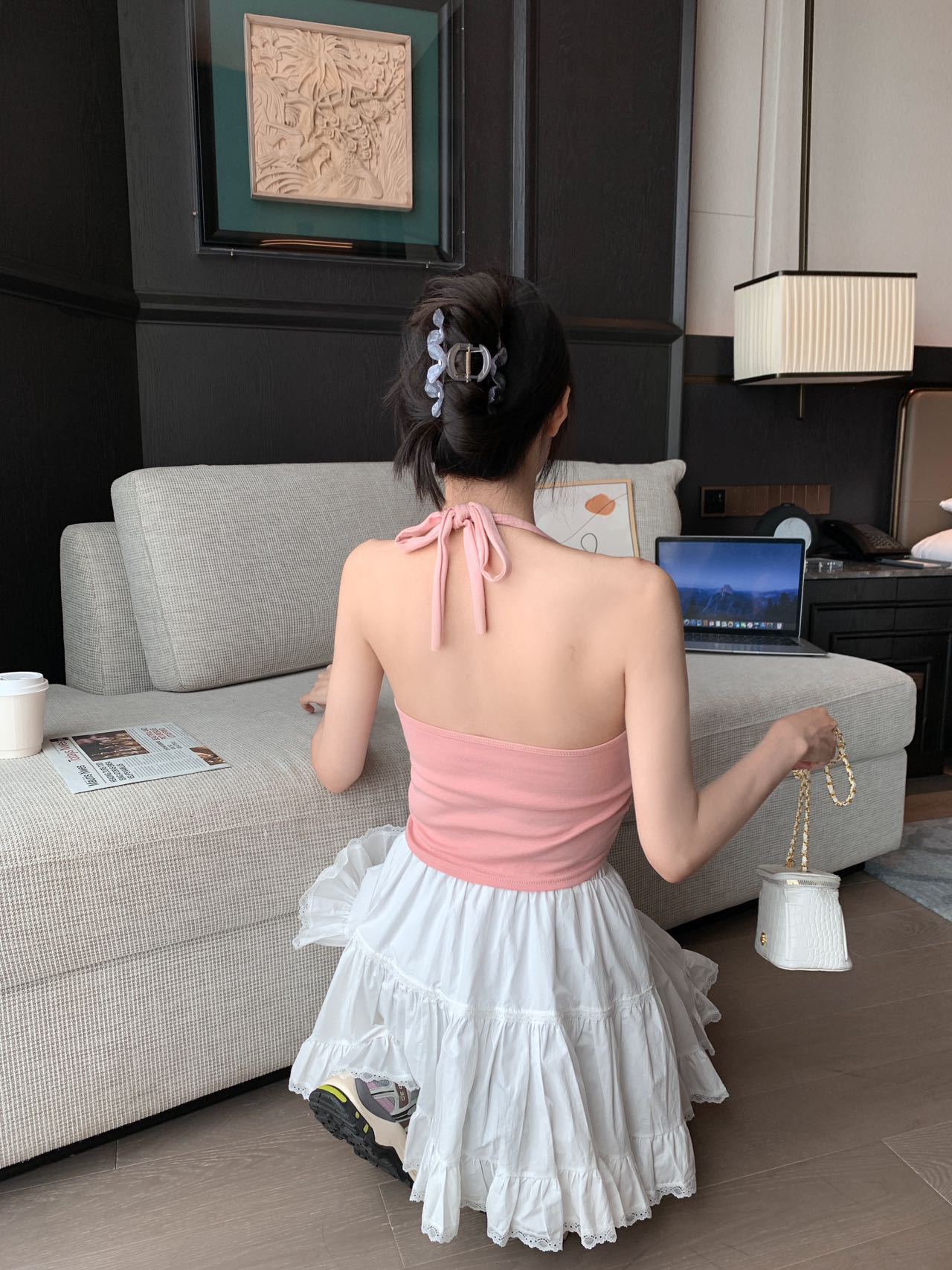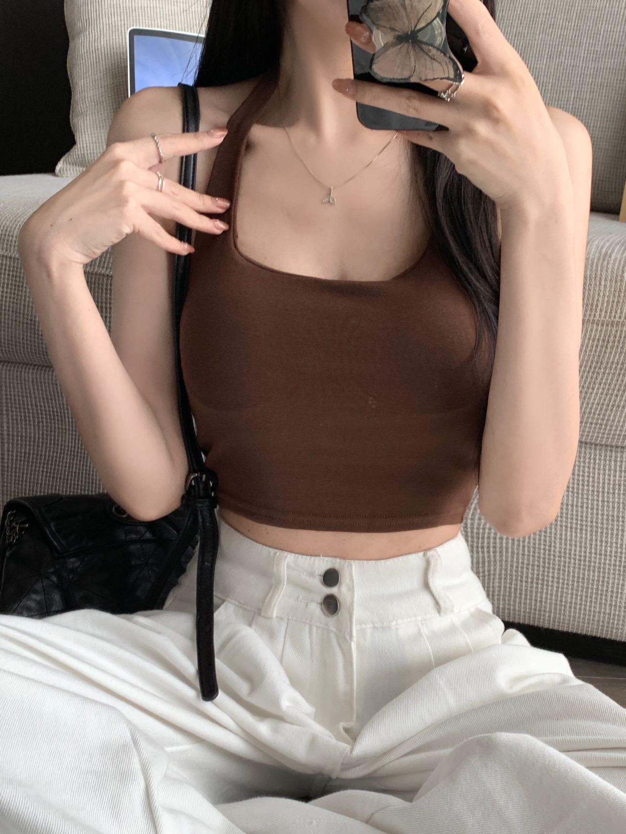 A070 # 레이온 홀터넥 넥 스트랩 캐미솔 여성 고정 컵 인기 핫 소녀 뷰티 백 슬리밍 탑 여름