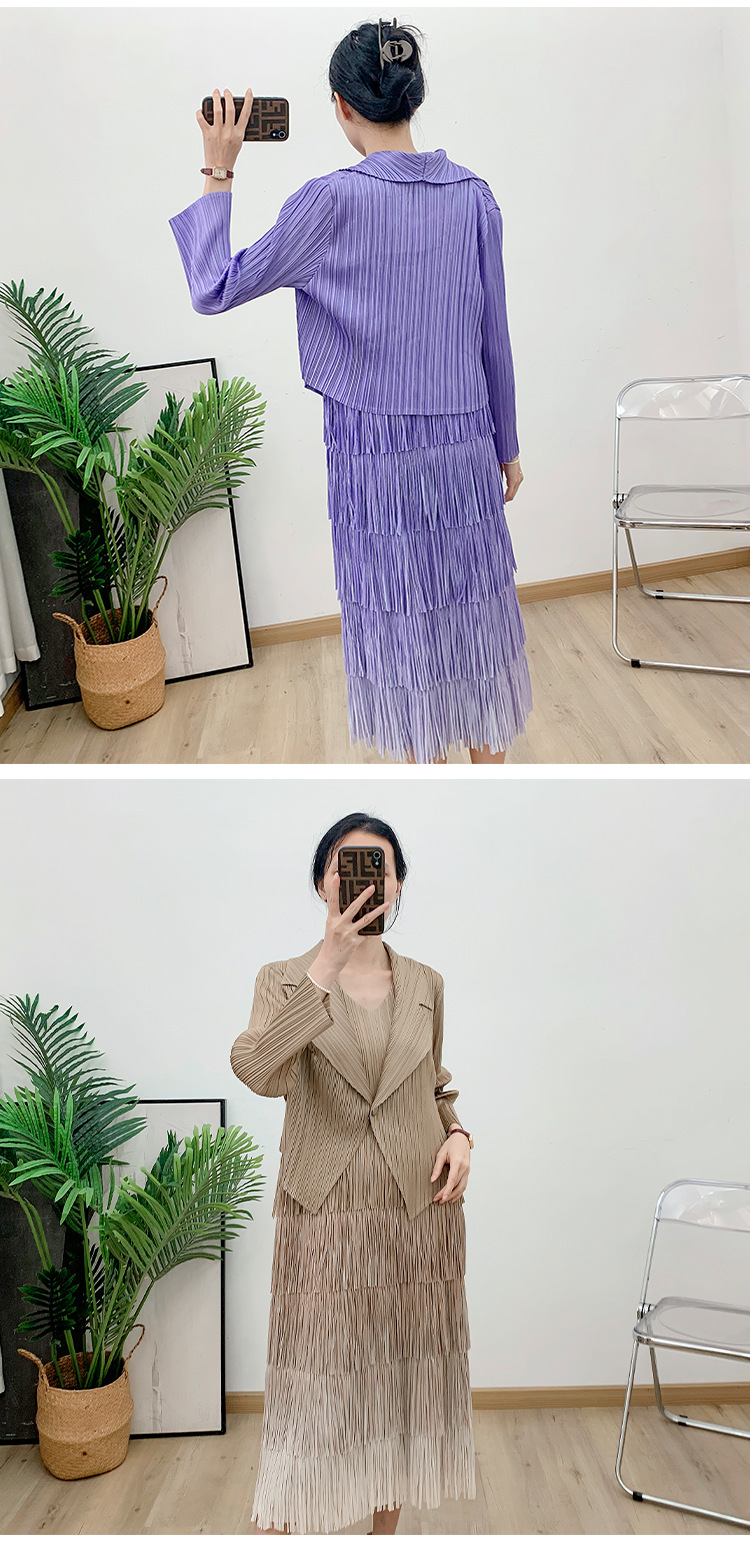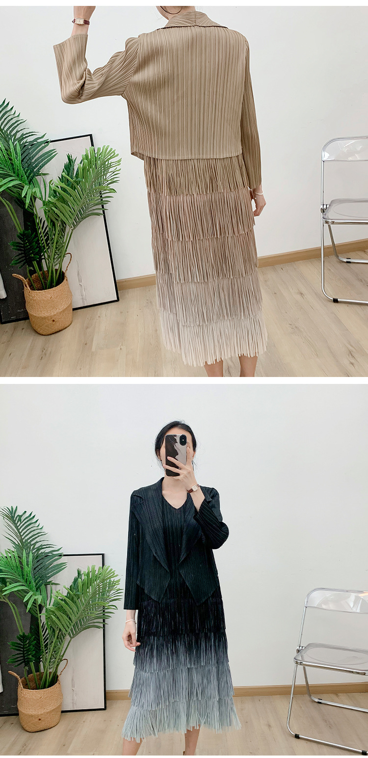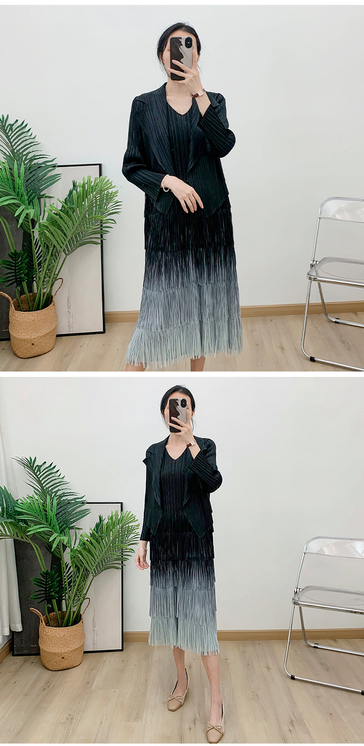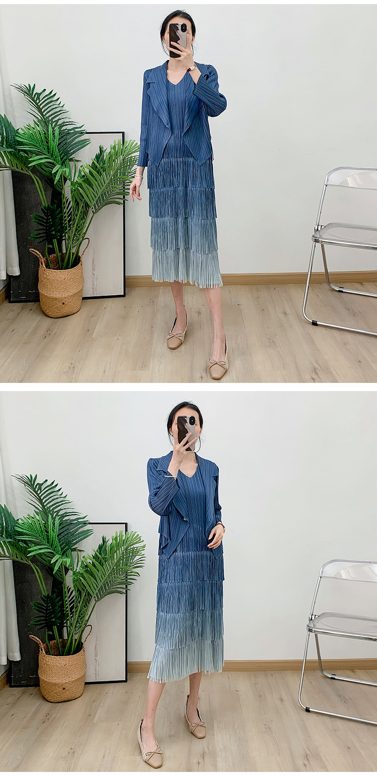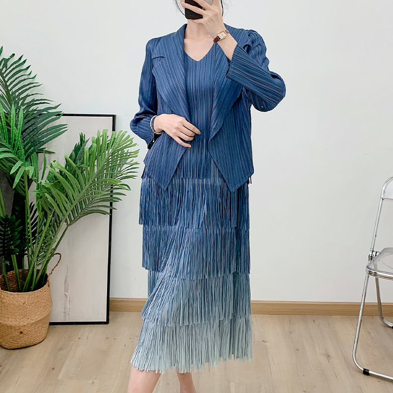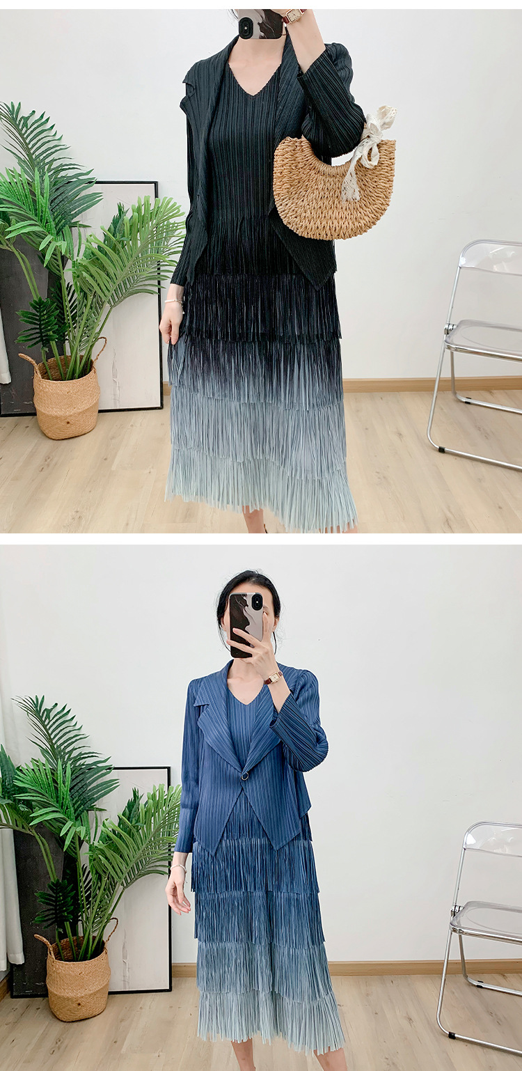 봄과 여름 세트 그라디언트 술 2024 새로운 휴가 스커트 세트 재킷 투피스 서양식 여성 주름