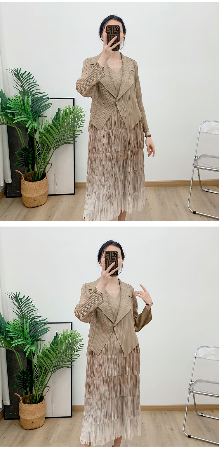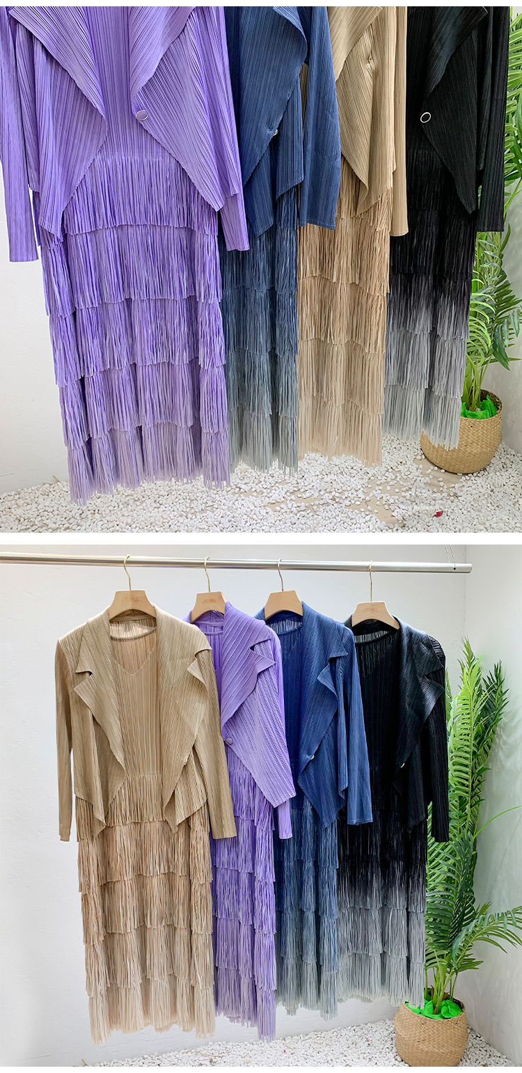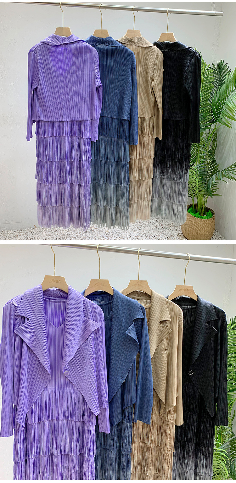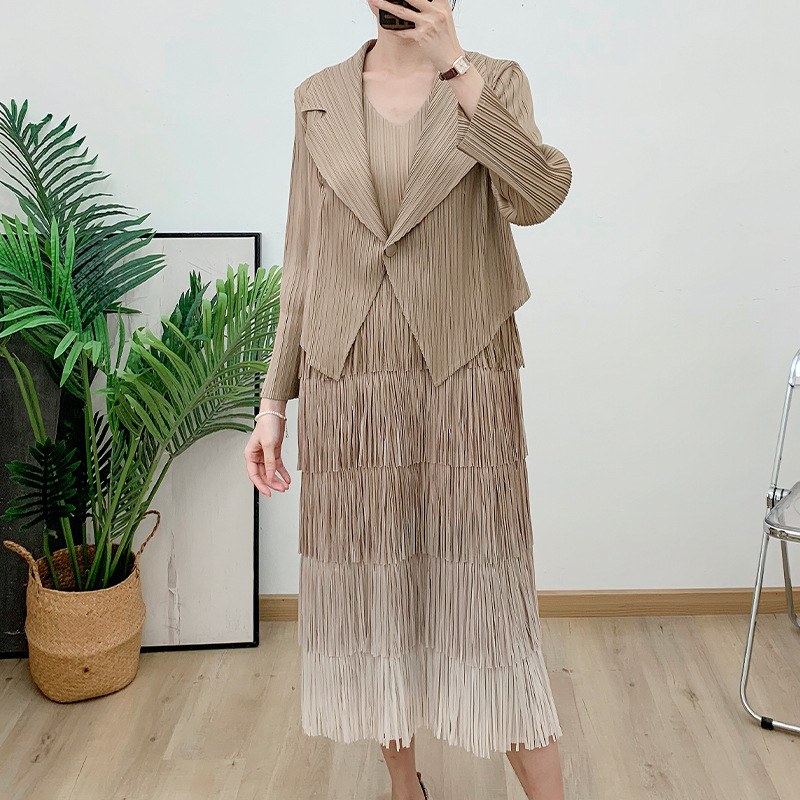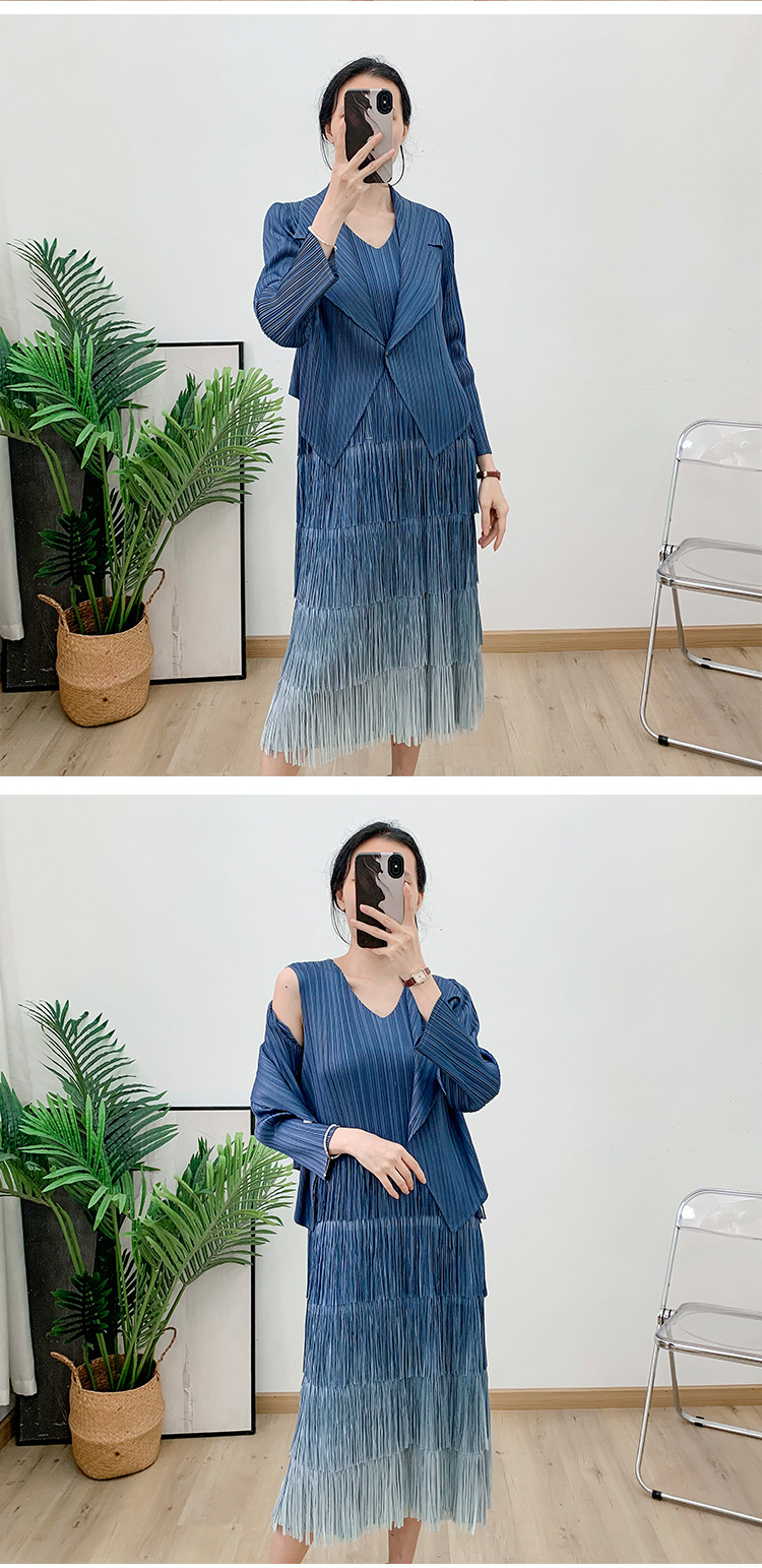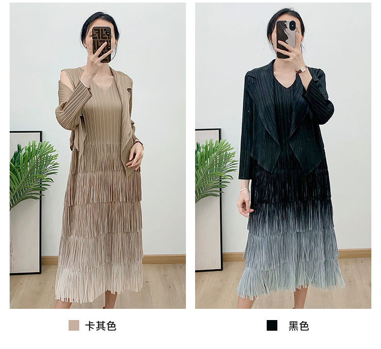 봄과 여름 세트 그라디언트 술 2024 새로운 휴가 스커트 세트 재킷 투피스 서양식 여성 주름