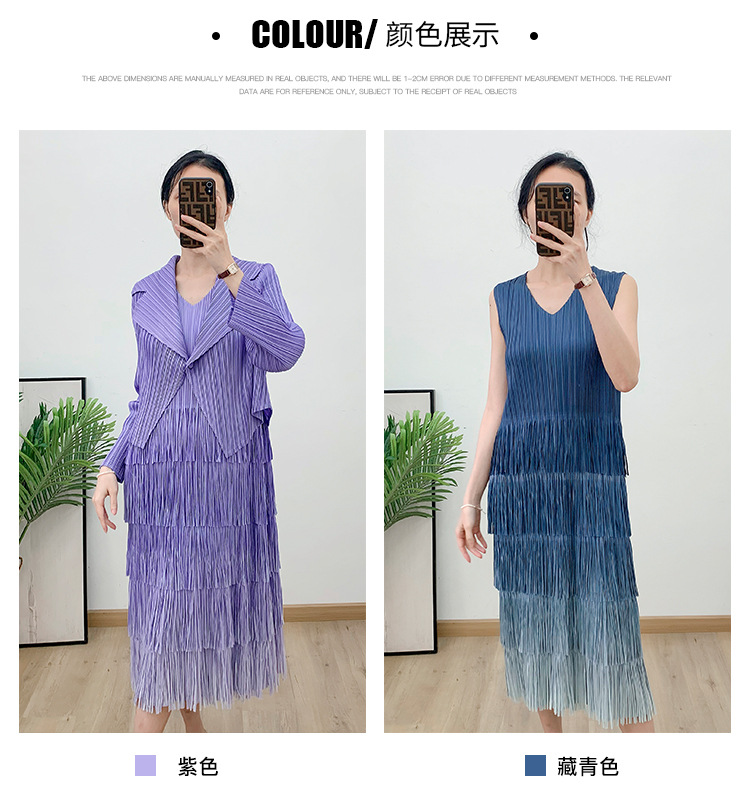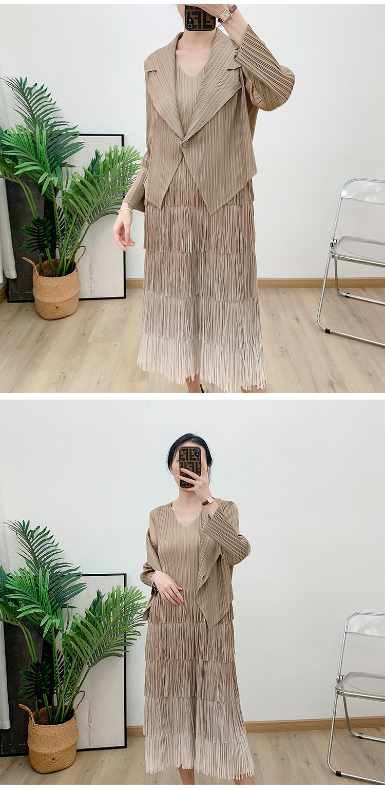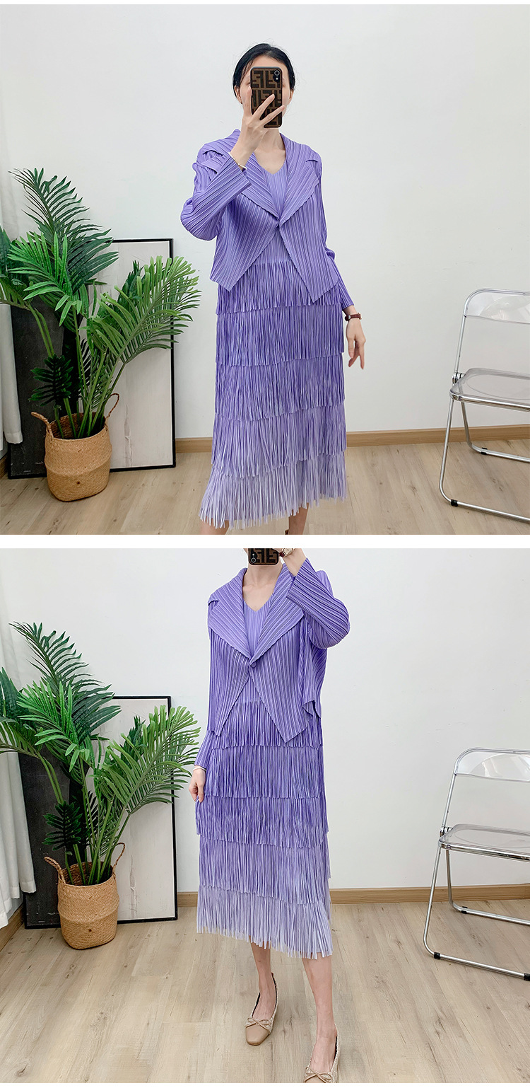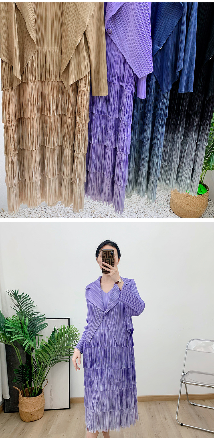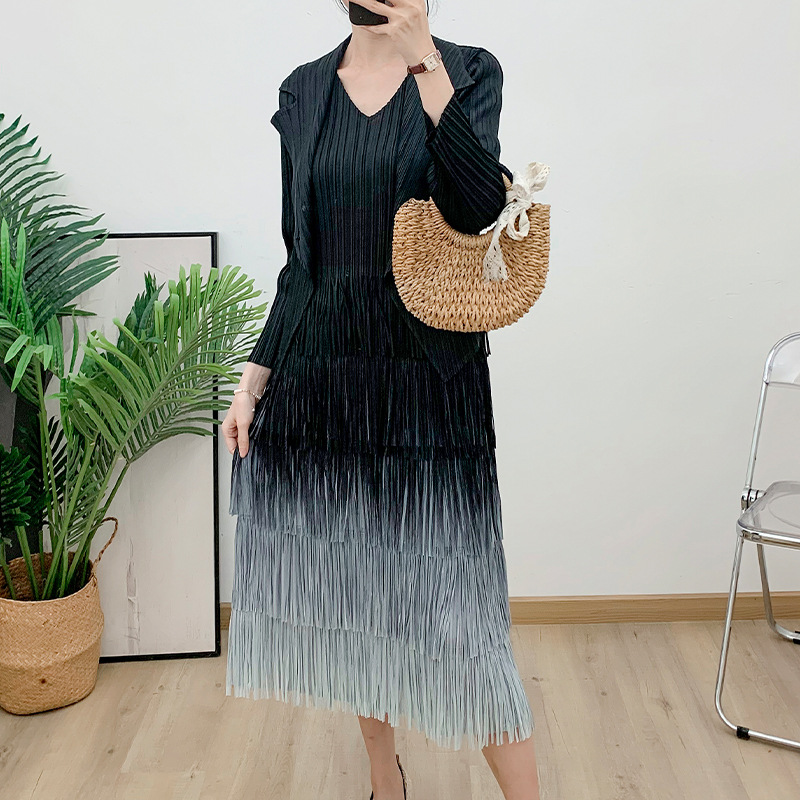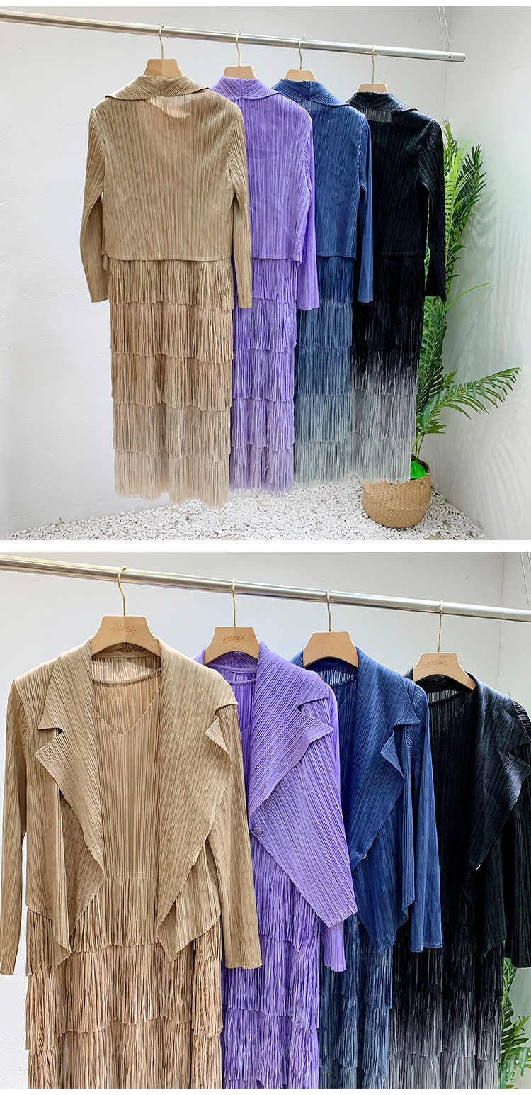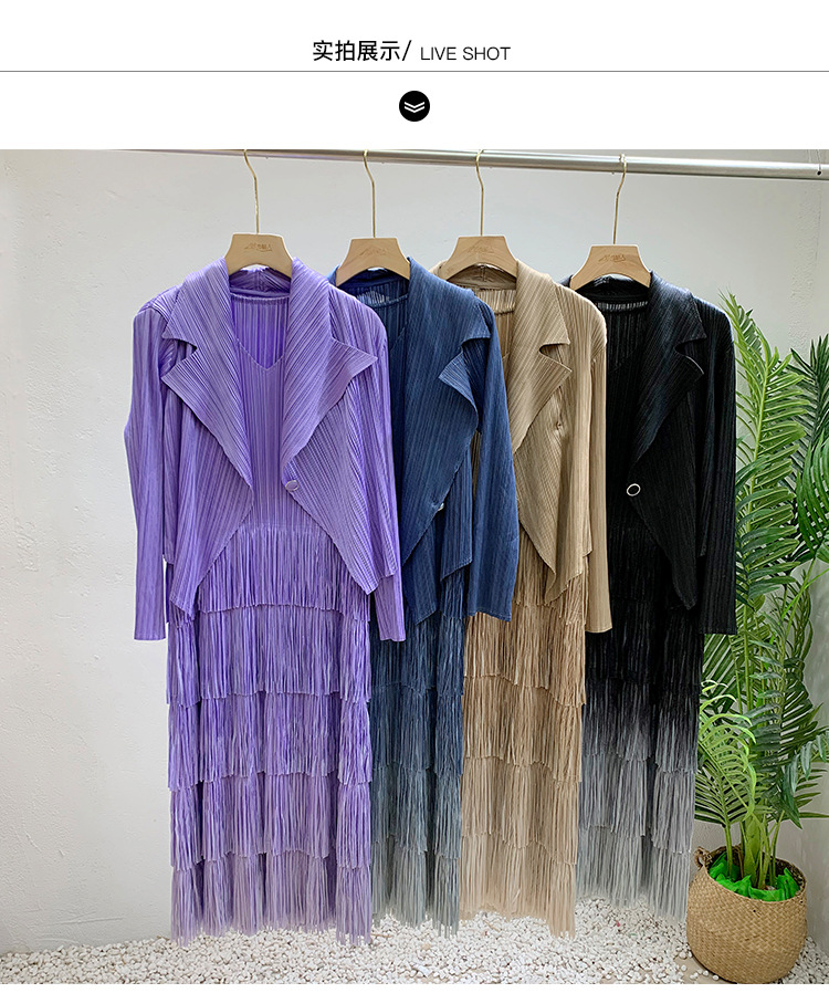 봄과 여름 세트 그라디언트 술 2024 새로운 휴가 스커트 세트 재킷 투피스 서양식 여성 주름