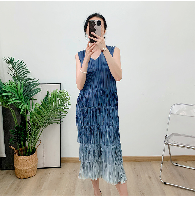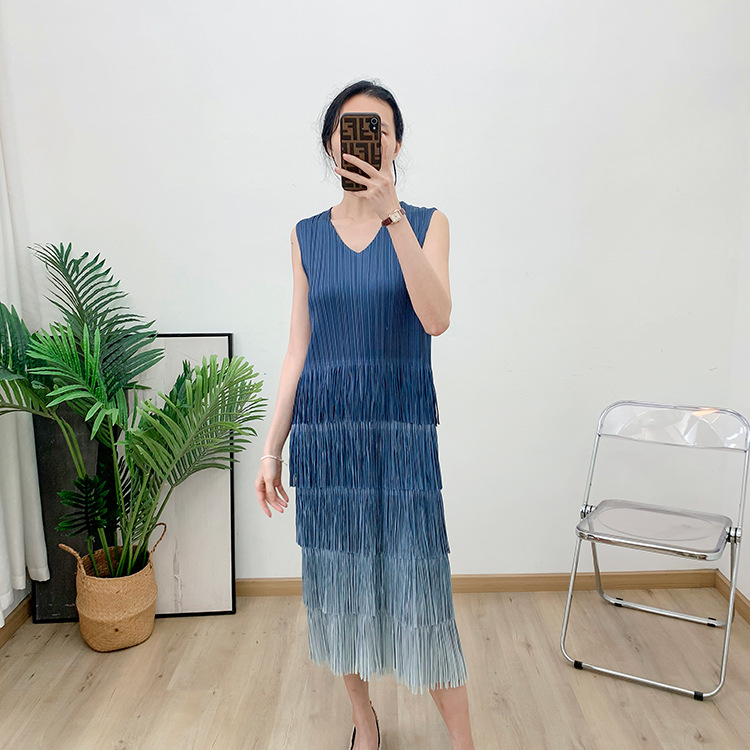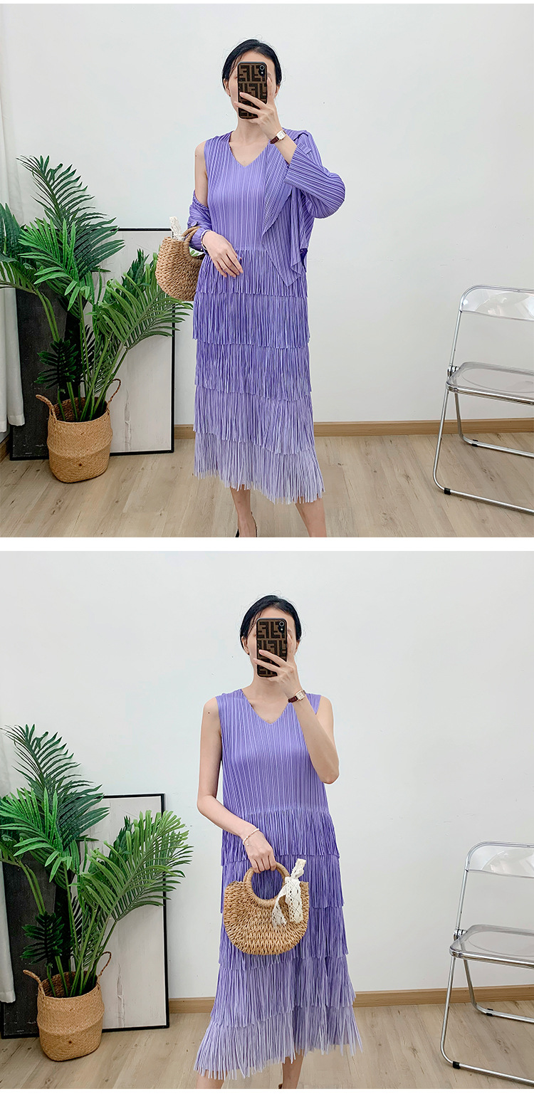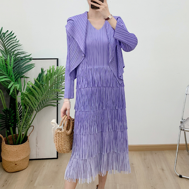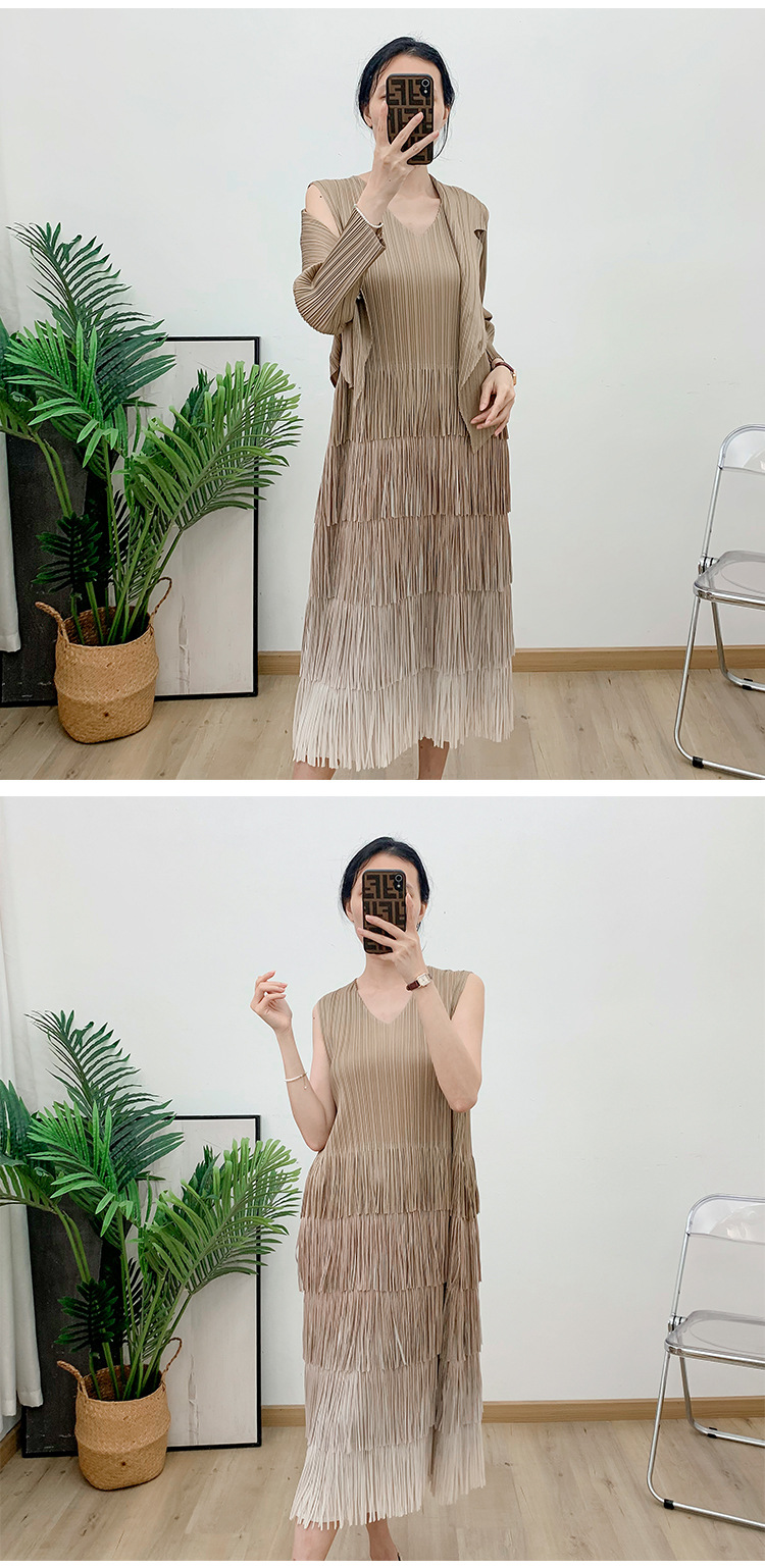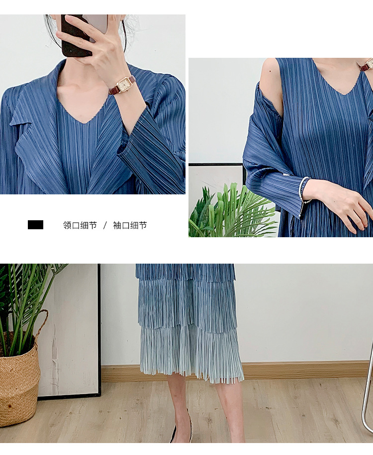 봄과 여름 세트 그라디언트 술 2024 새로운 휴가 스커트 세트 재킷 투피스 서양식 여성 주름스토어 가기