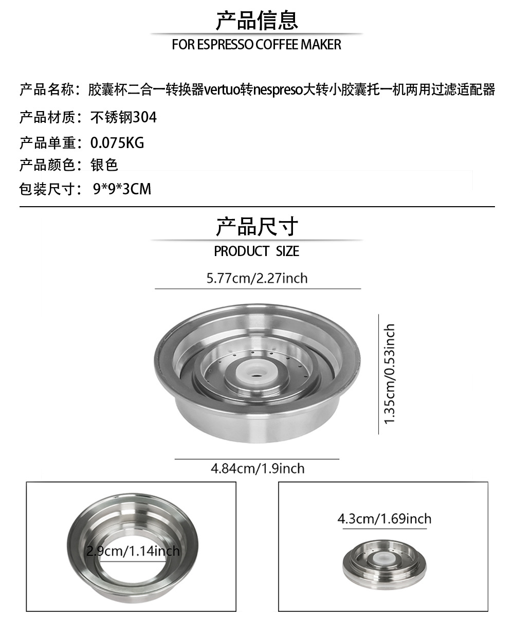 캡슐 컵 2 대 1 변환기 vertuo에서 nespreso 큰 작은 캡슐 홀더 1 기계 이중 목적 어댑터