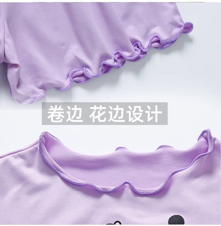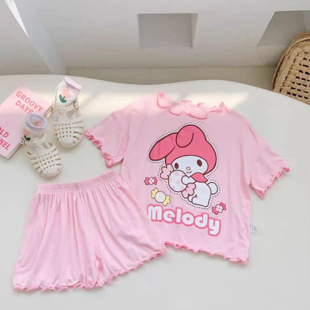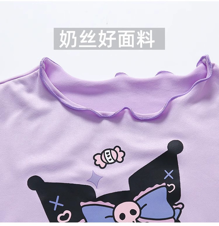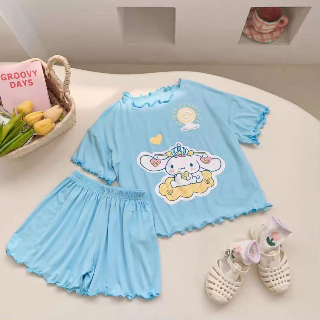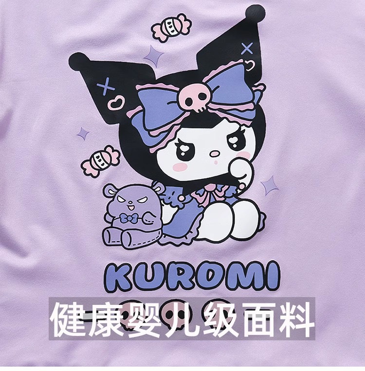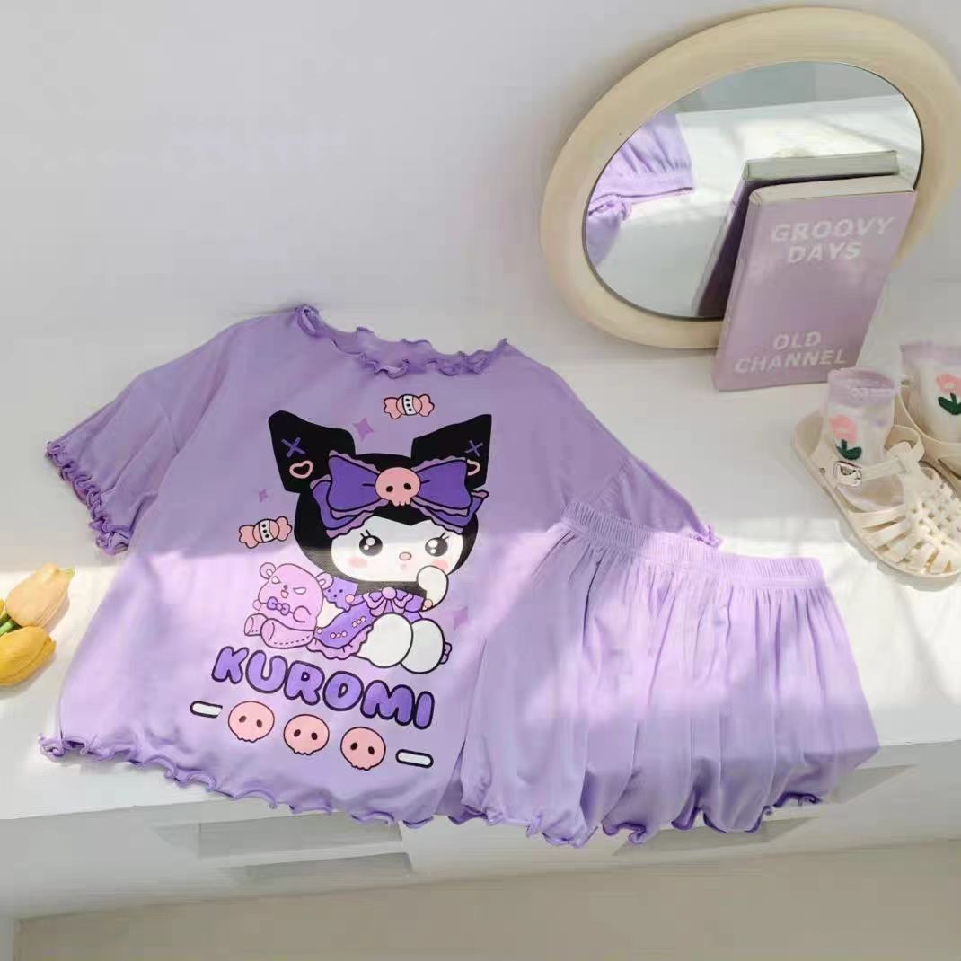 2024 잠옷 여름 새로운 반팔 반바지 소녀 Kuromi 작은 중간 어린 소녀 아기 가정 의류 세트
