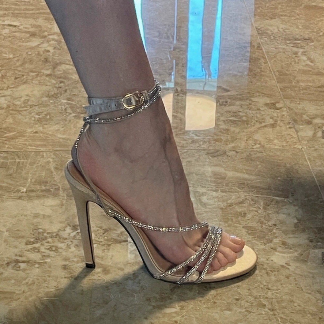 OMG !! 샌들 모조 다이아몬드와 빅 레이디 하이힐
