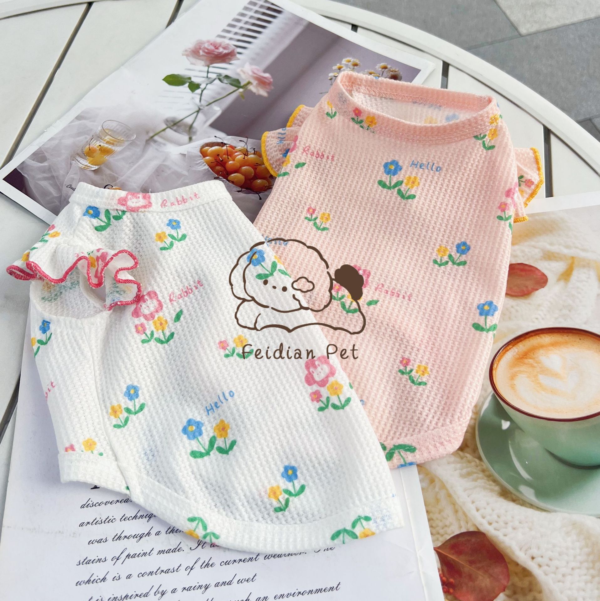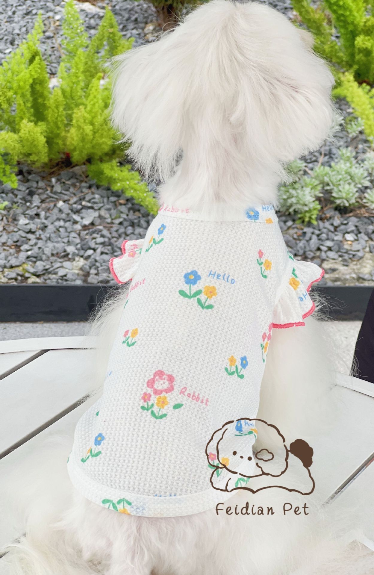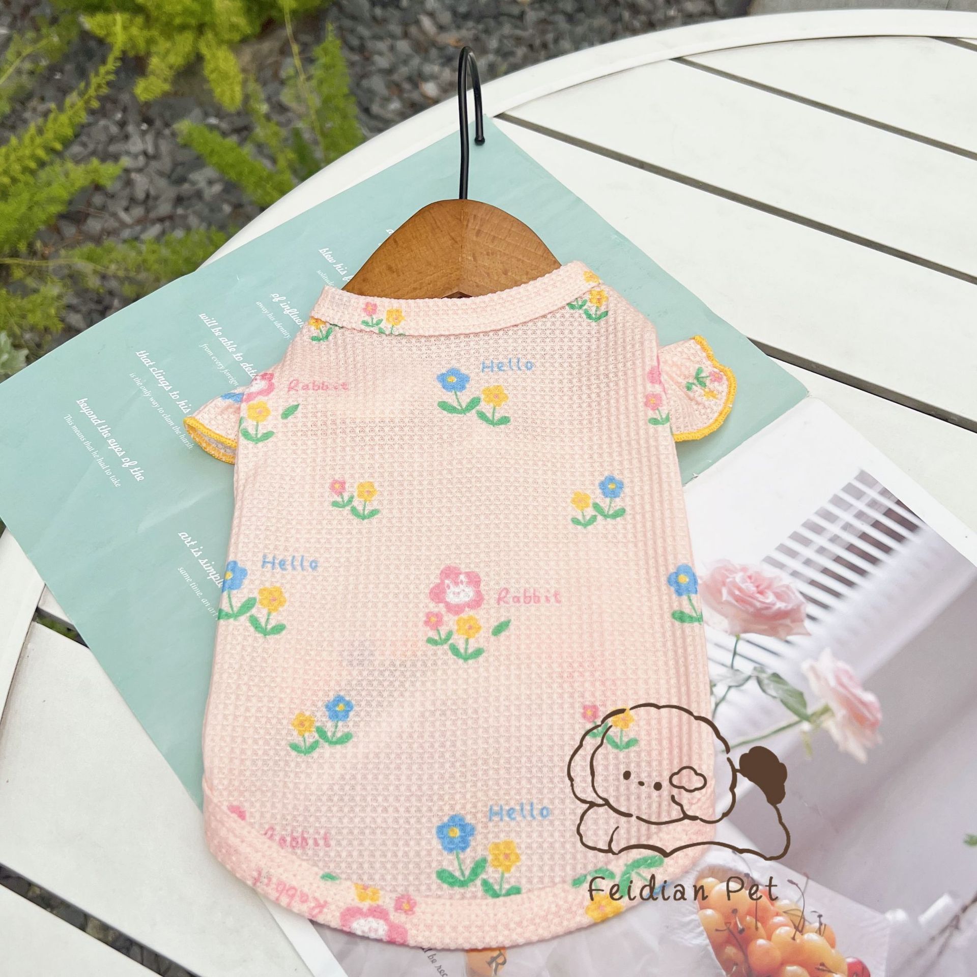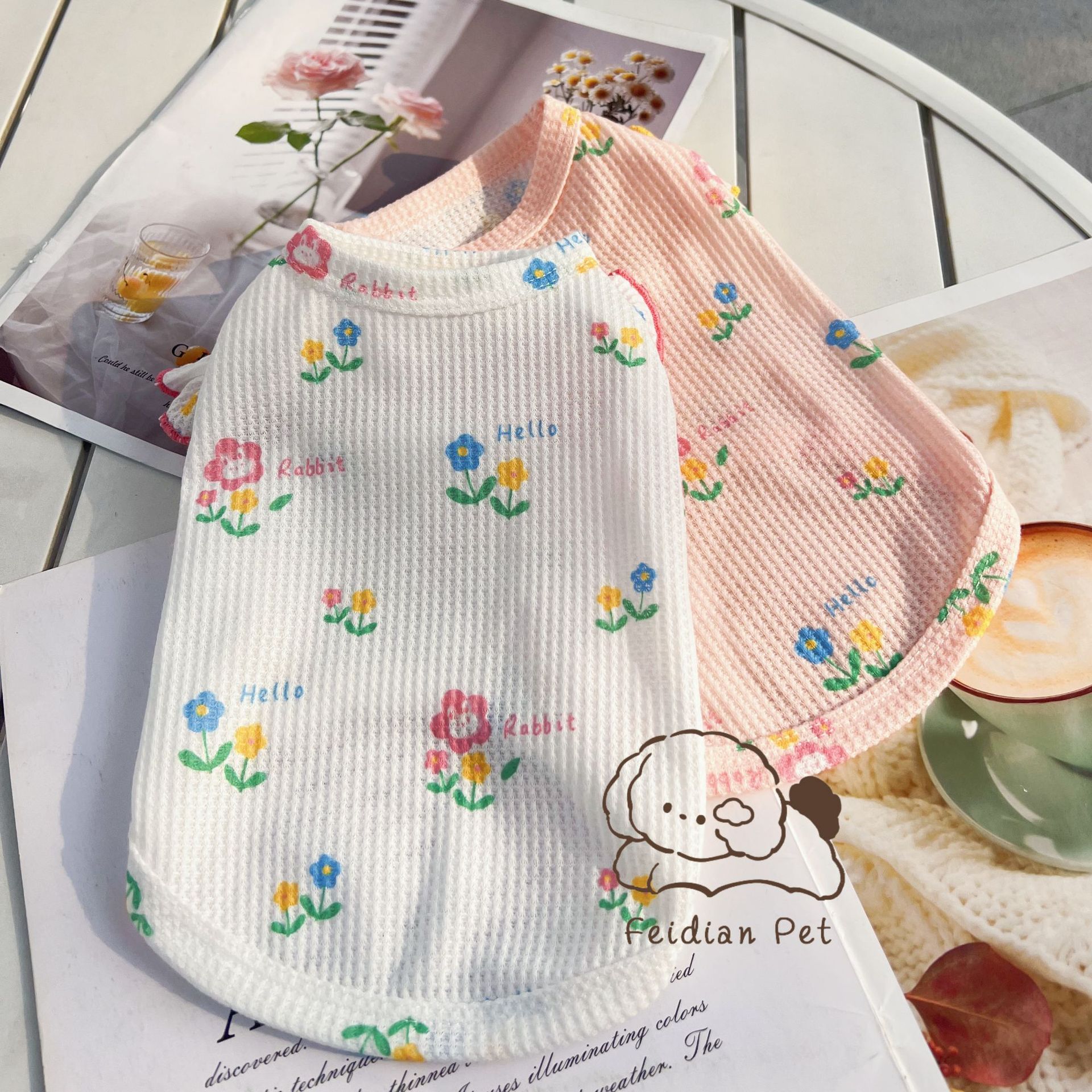 끓는 포인트 애완 동물 24 봄과 여름 원래 비행 소매 애완 동물 와플 인쇄베이스 셔츠 고양이 개 간단한 올 매치 옷