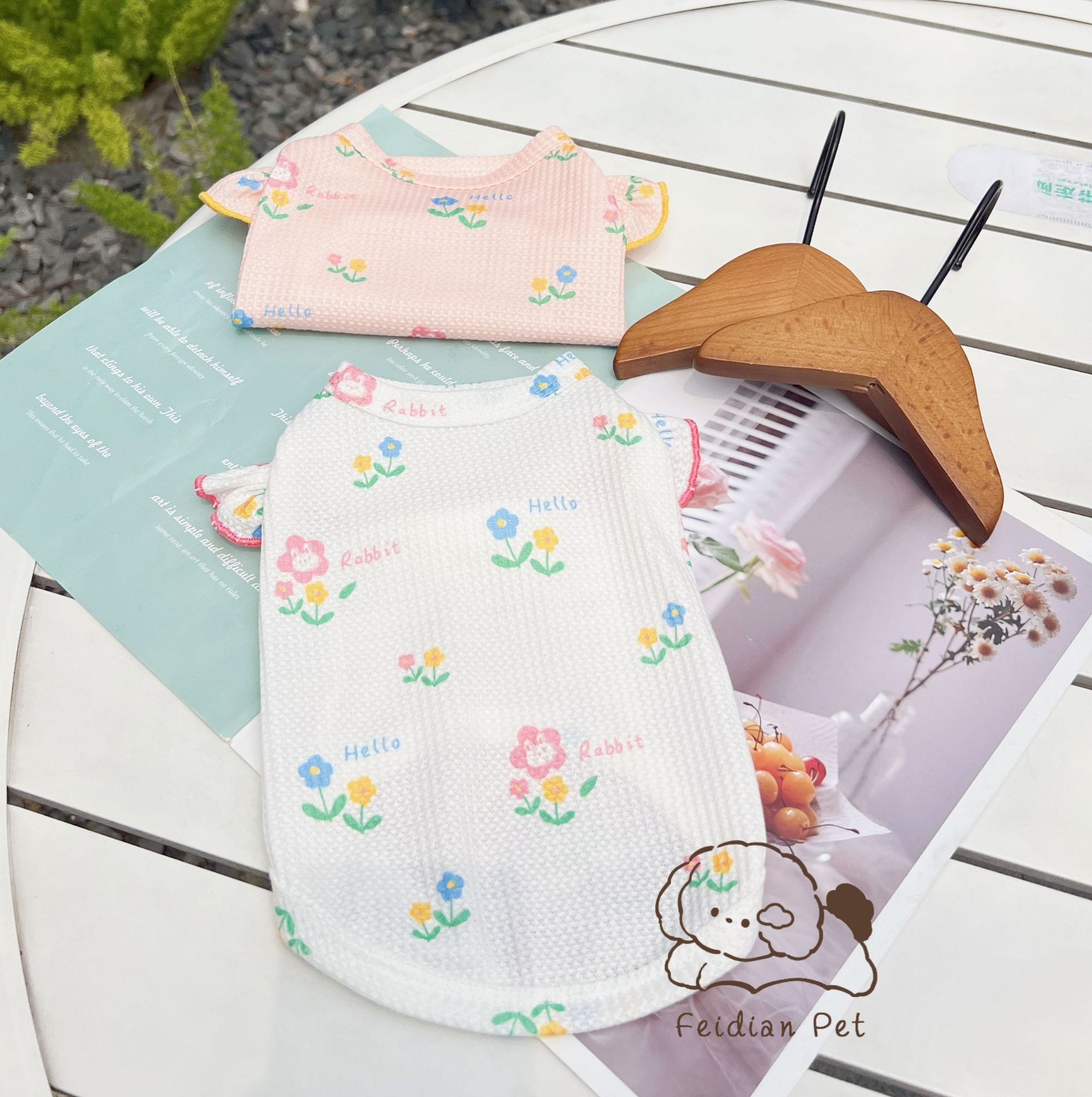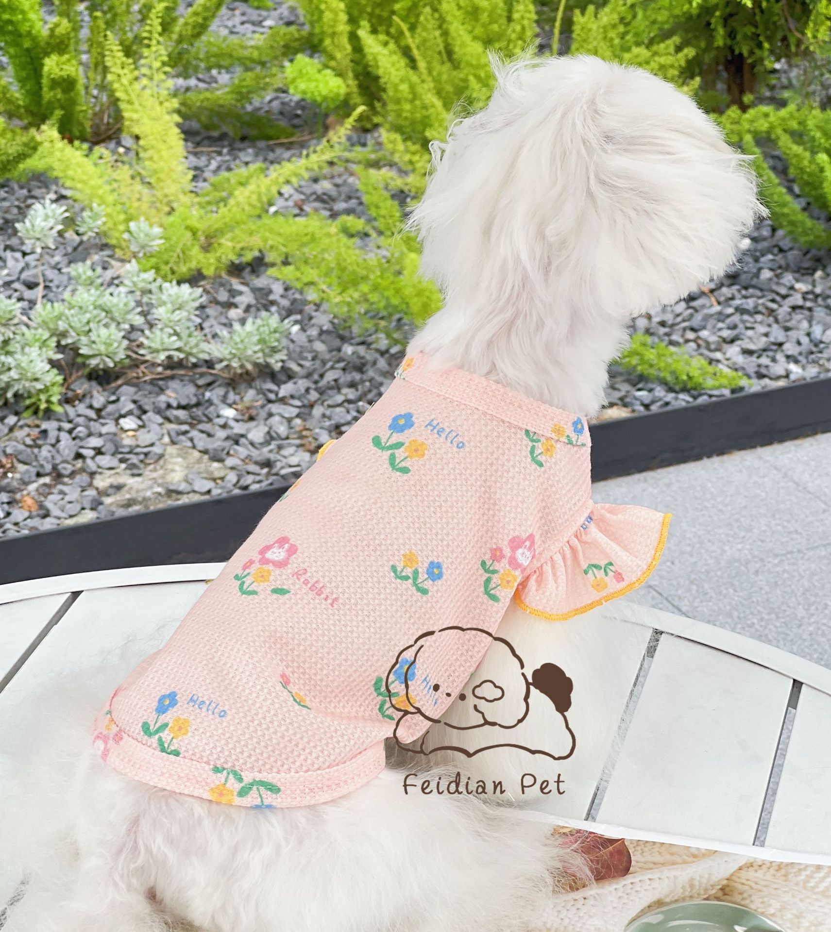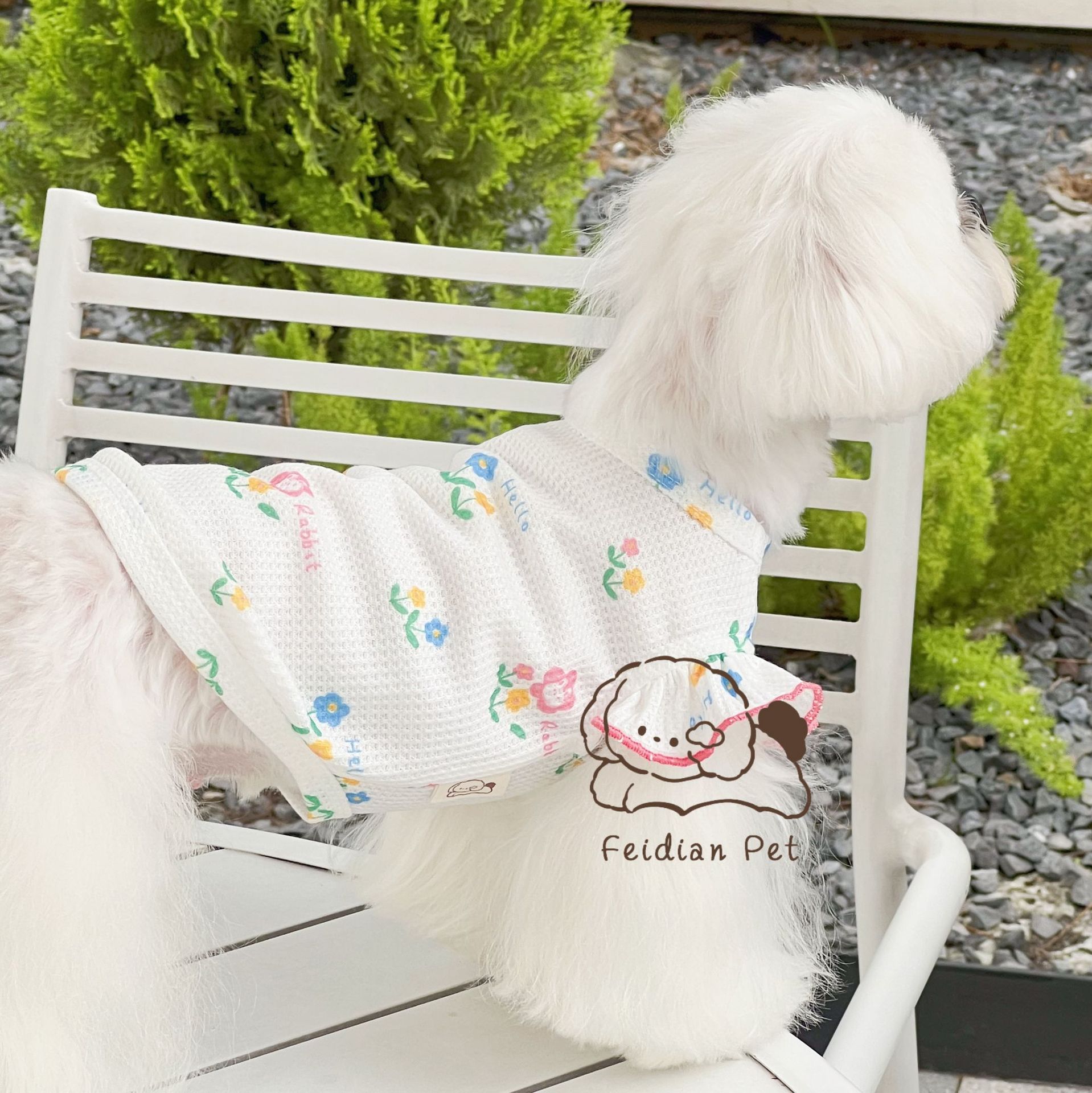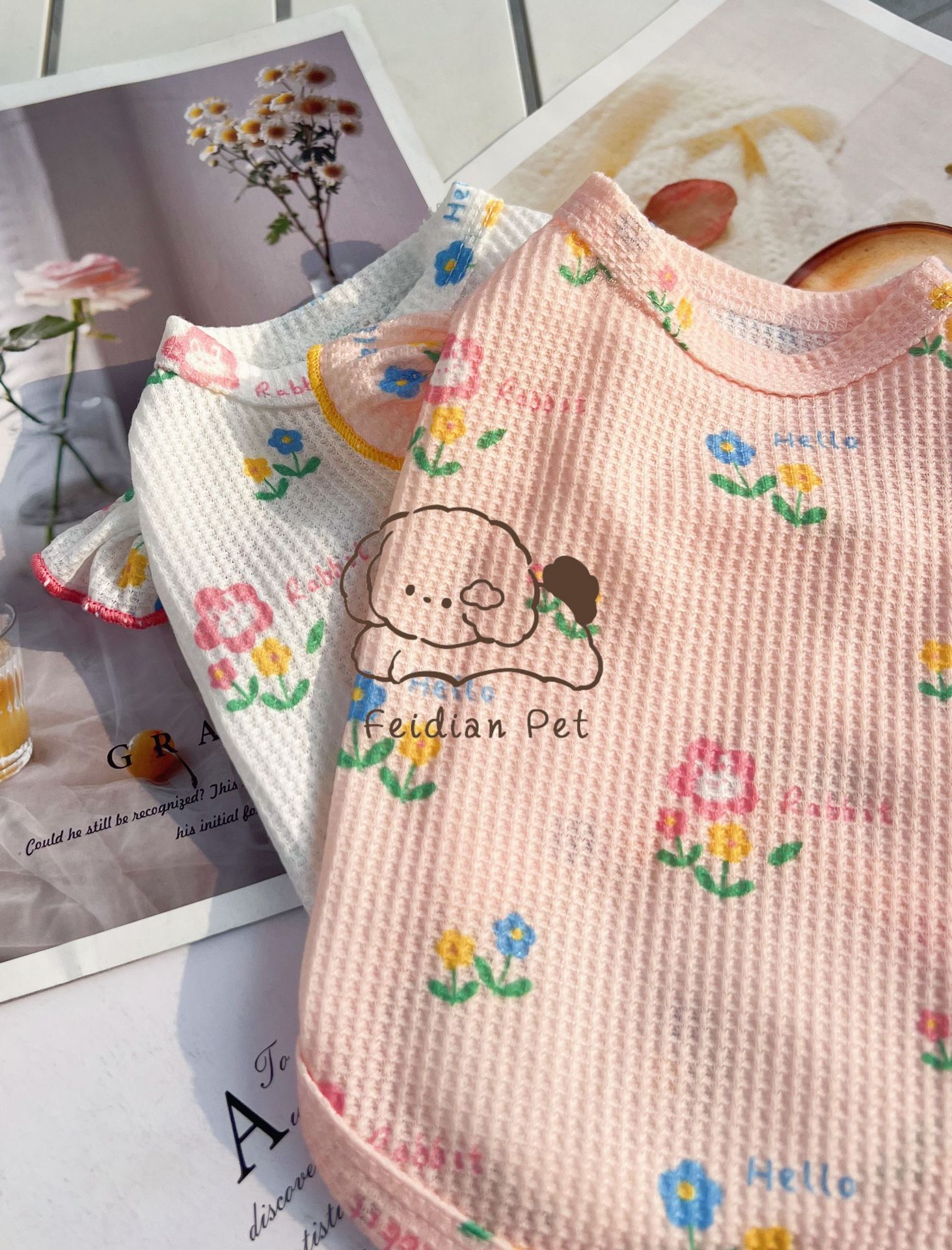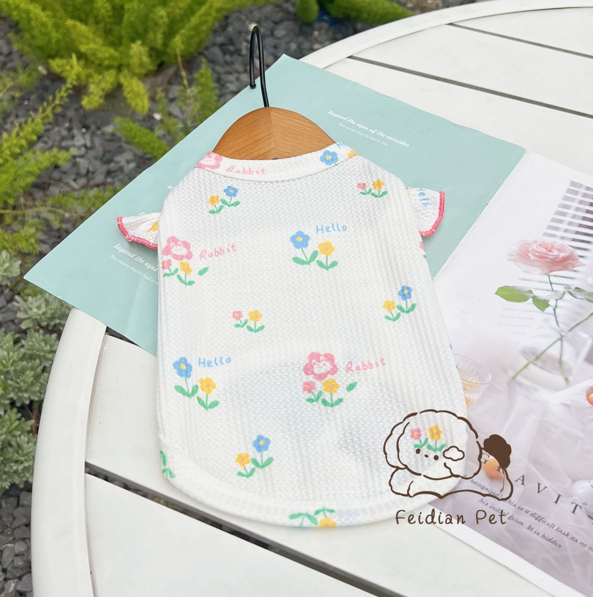 끓는 포인트 애완 동물 24 봄과 여름 원래 비행 소매 애완 동물 와플 인쇄베이스 셔츠 고양이 개 간단한 올 매치 옷