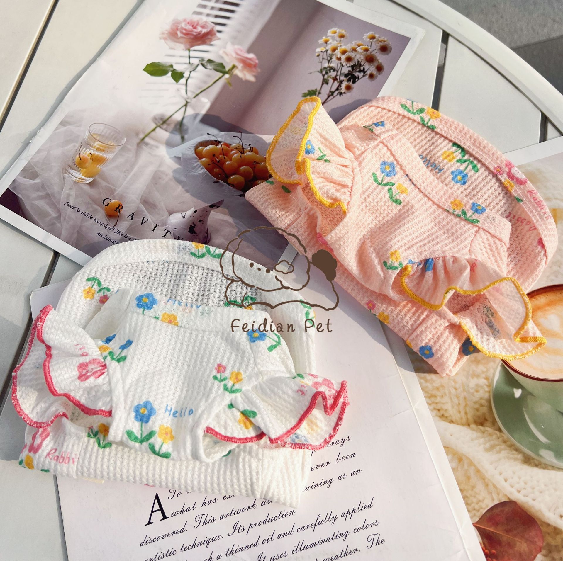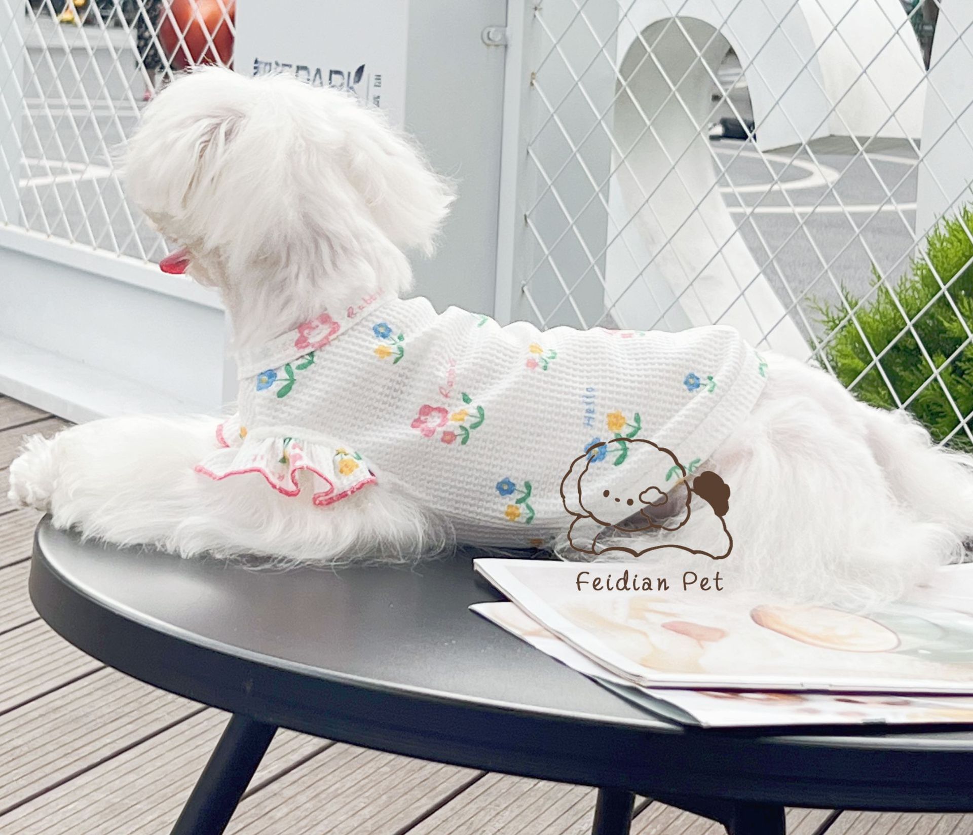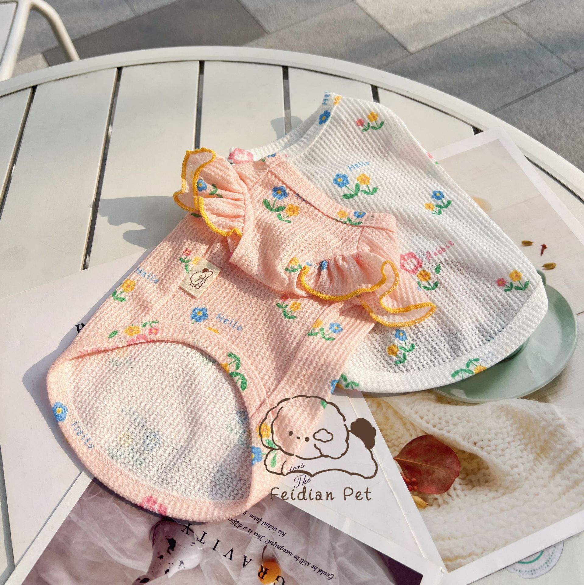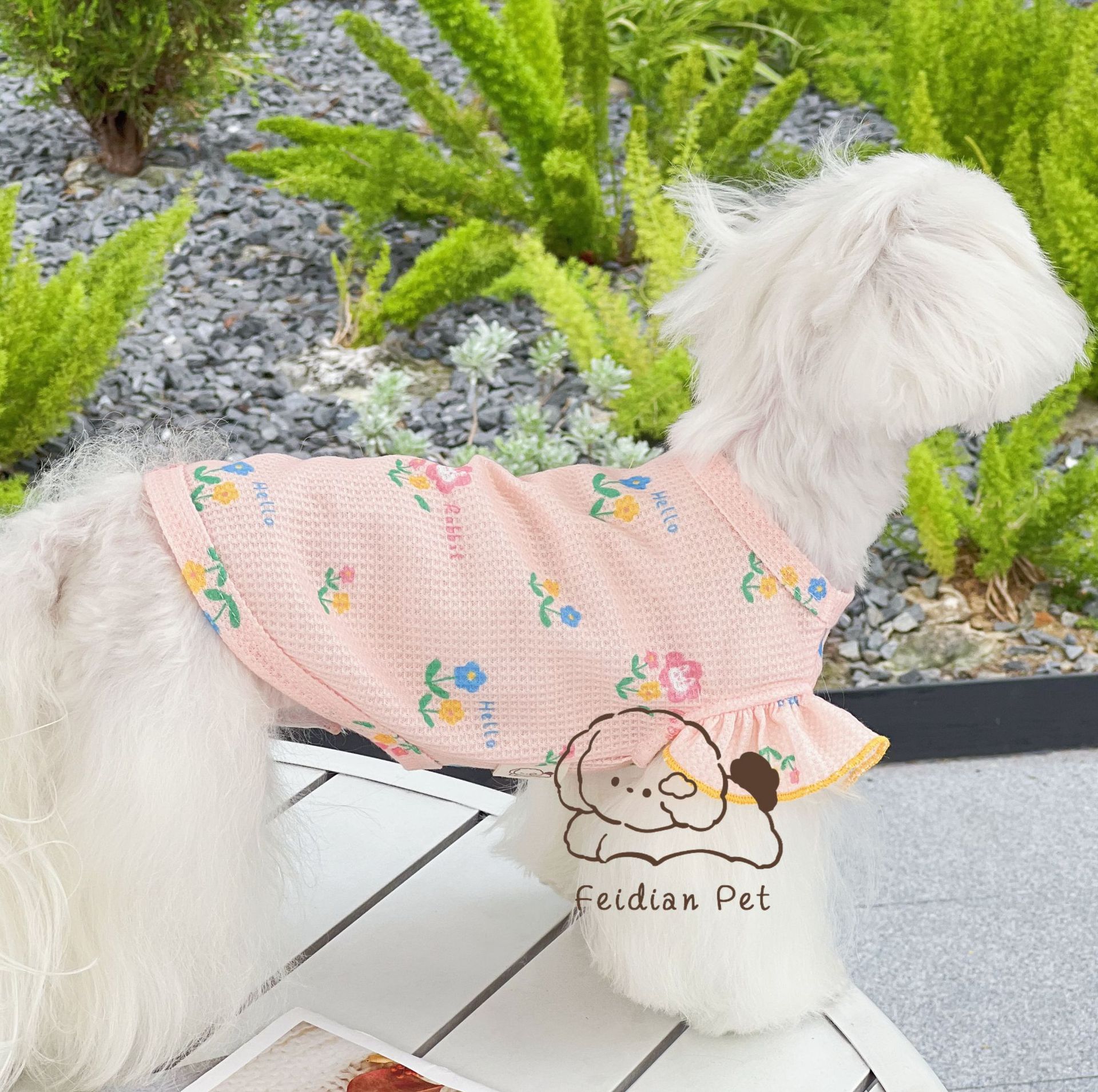 끓는 포인트 애완 동물 24 봄과 여름 원래 비행 소매 애완 동물 와플 인쇄베이스 셔츠 고양이 개 간단한 올 매치 옷