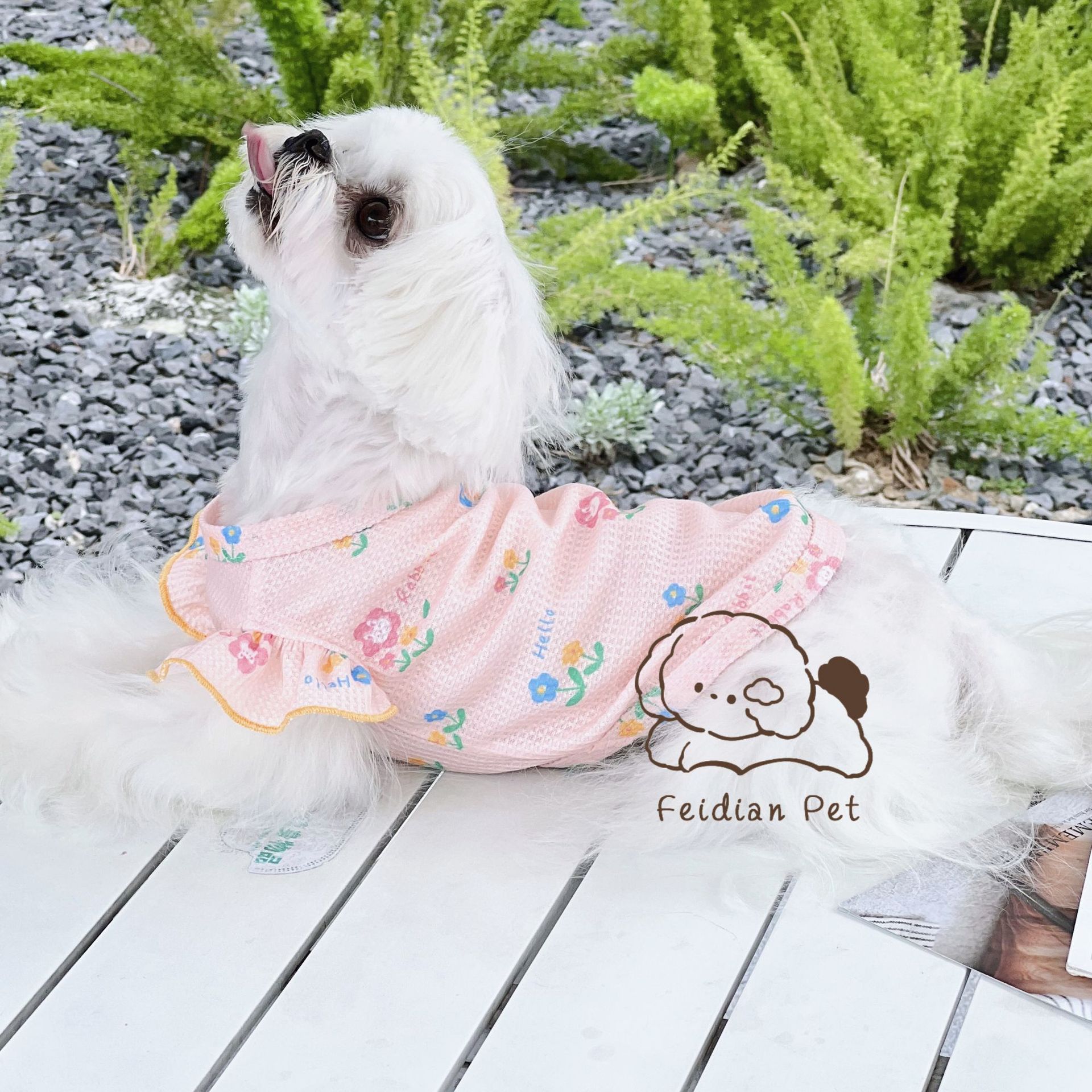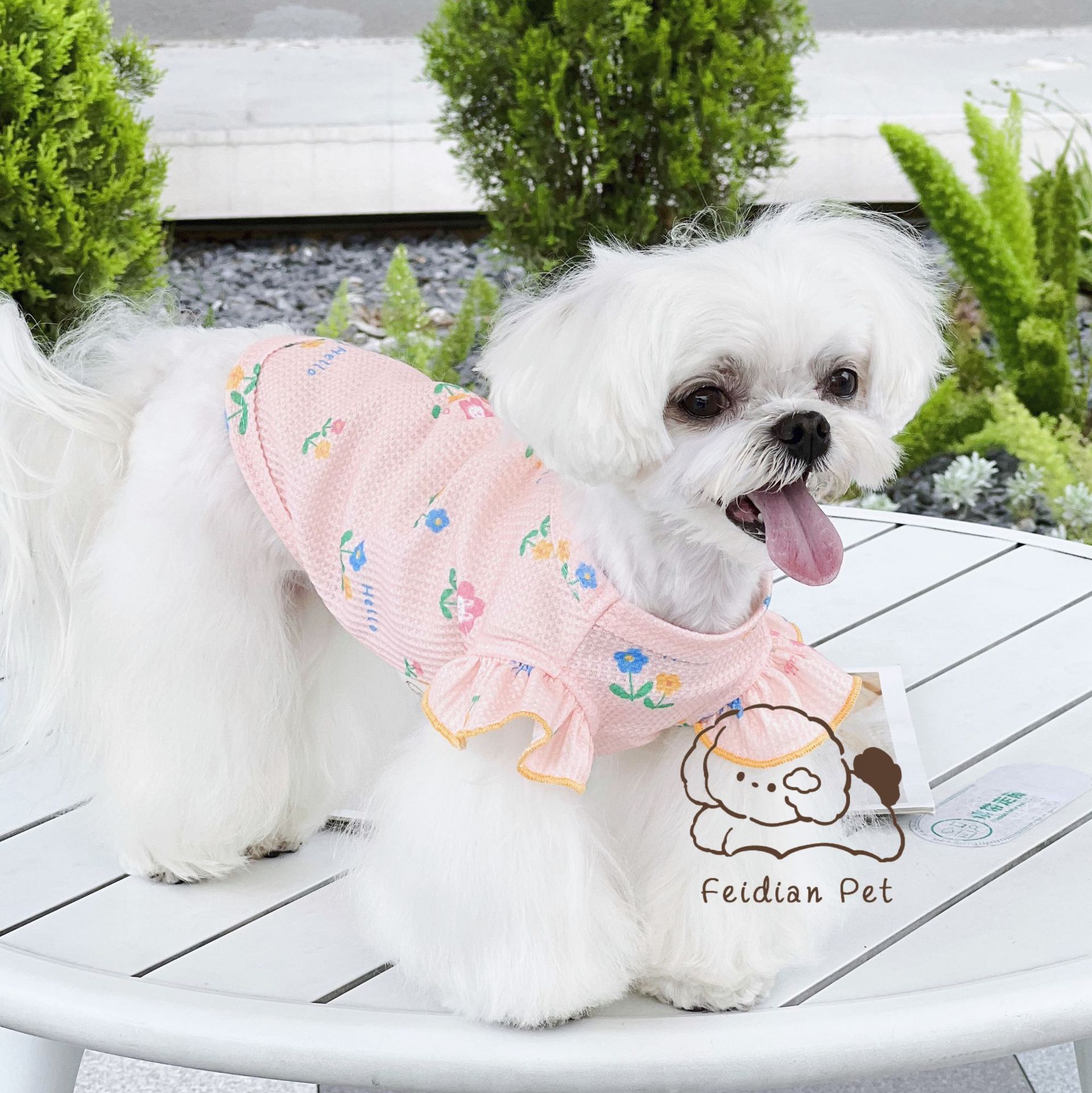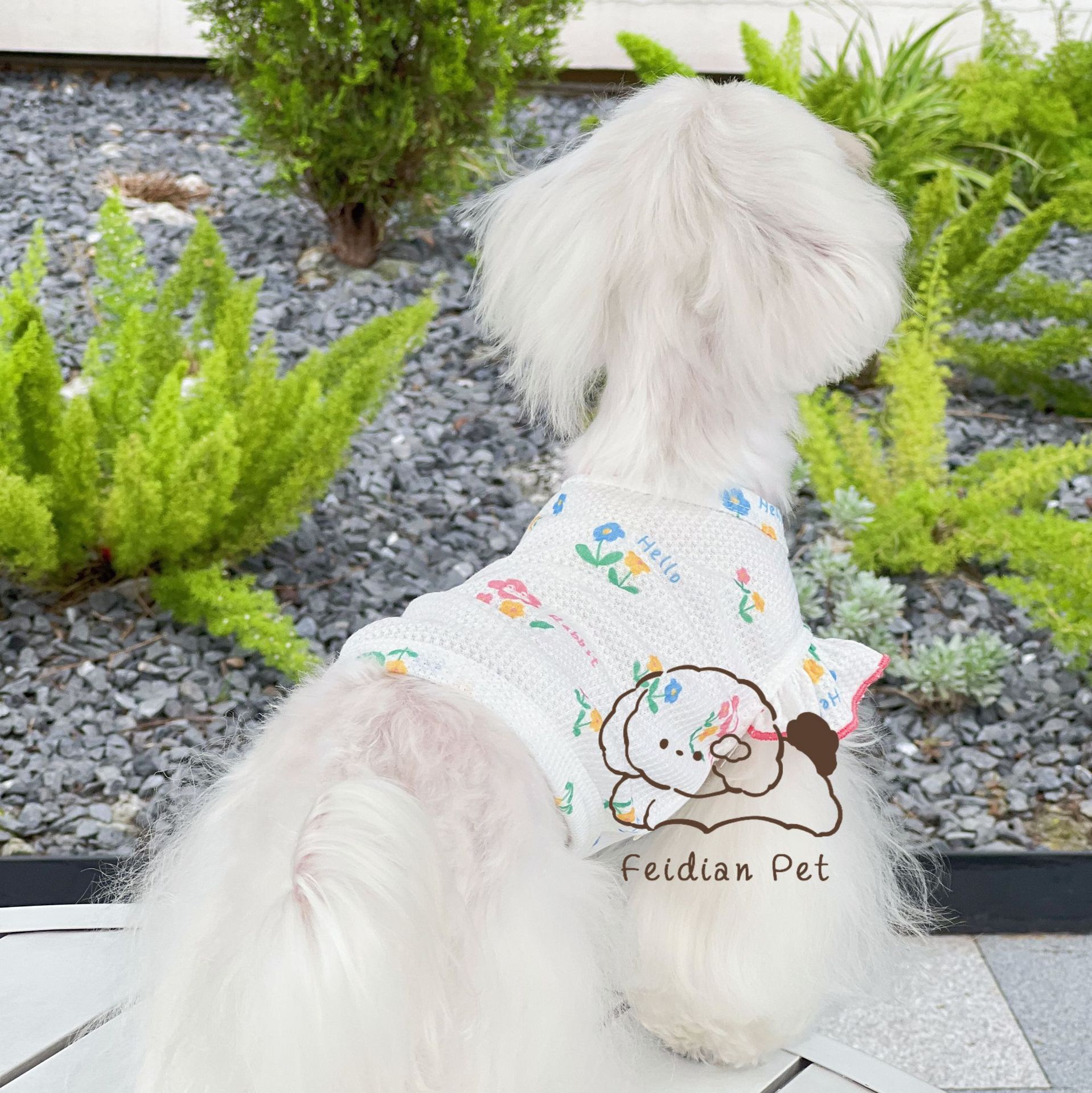 끓는 포인트 애완 동물 24 봄과 여름 원래 비행 소매 애완 동물 와플 인쇄베이스 셔츠 고양이 개 간단한 올 매치 옷스토어 가기
